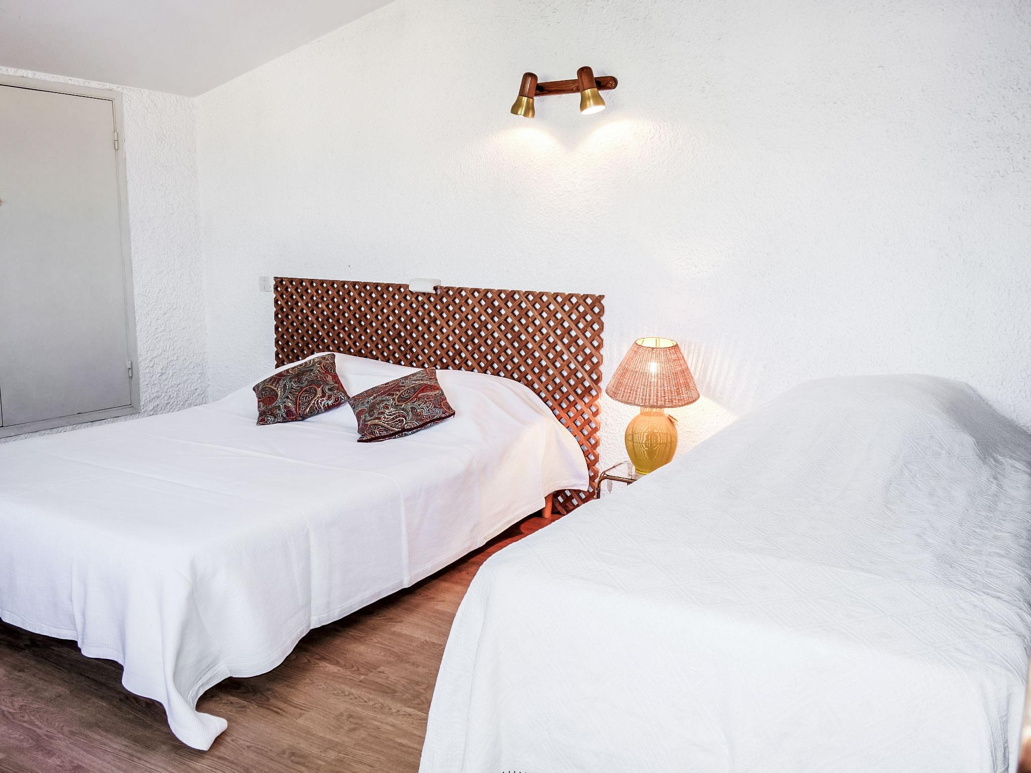 2-room apartment 50 m2 on 2 levels on 3rd floor. Spacious: living/dining room with 1 double sofabed (130 cm, length 190 cm), TV. Exit to the terrace. Kitchen (2 hot plates, oven, dishwasher, microwave, freezer) with hatch. Shower/WC. Upper floor: open gallery with 1 bed (90 cm, length 190 cm), 1 french bed (140 cm, length 190 cm). Electric heating. Terrace 10 m2, roofed, west facing position. Terrace furniture. Very beautiful view of the sea. Facilities: washing machine. Parking space n 13 (roofed), height 200 cm, width 220 cm. Please note: TV only FR. Smoke alarm, no lift. Instead of an enclosed bedroom, some sleeping areas are located in an open-plan area (gallery, alcove, etc.).