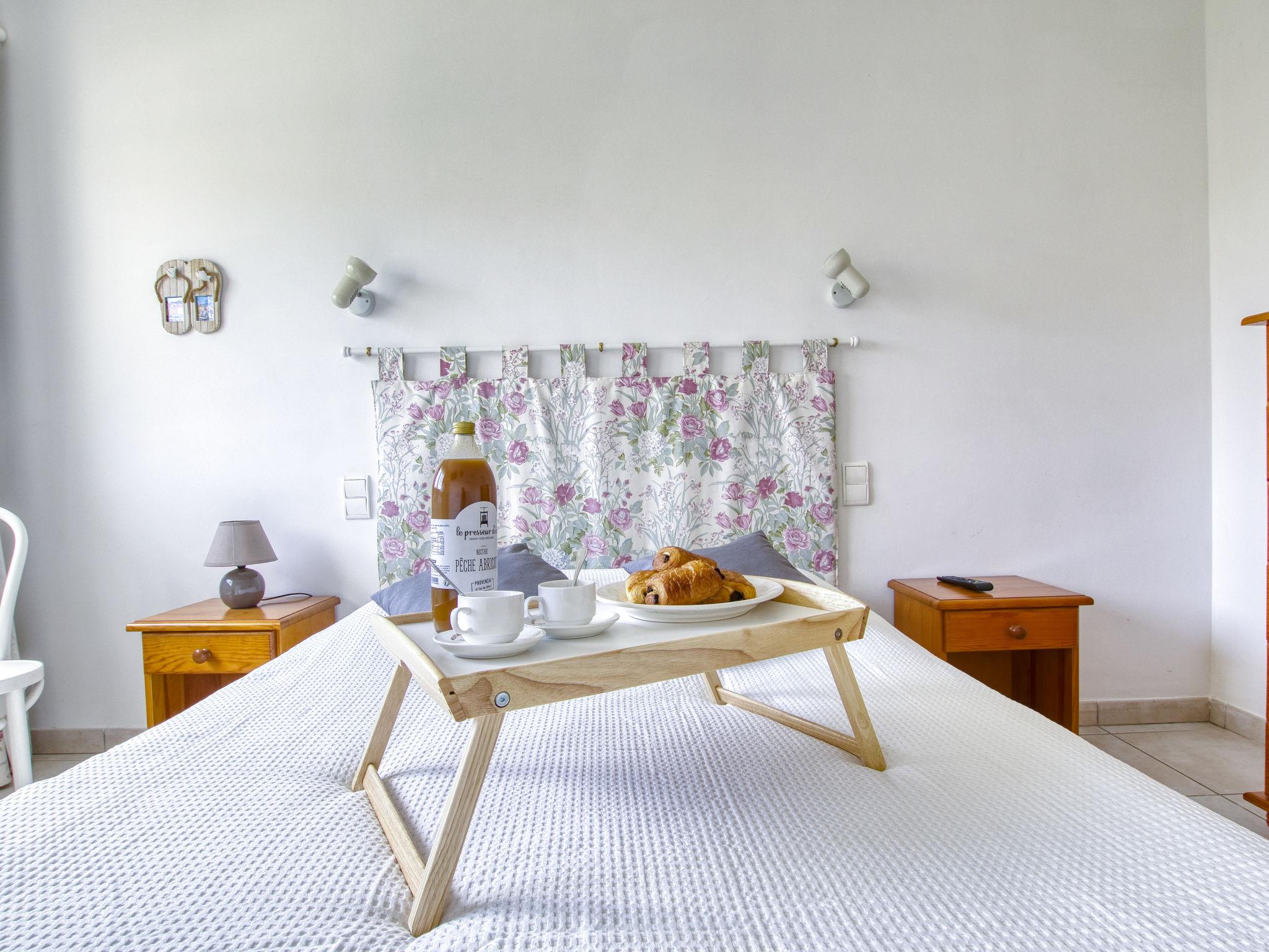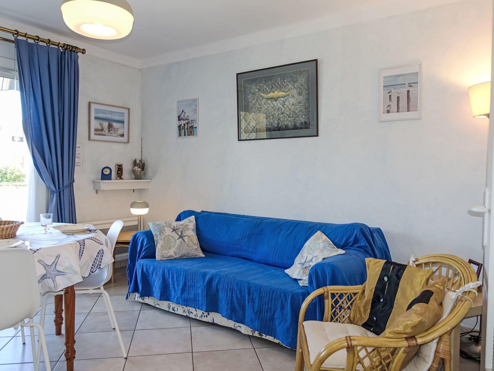3-room apartment 60 m2, on the upper ground floor. Bright, practical and comfortable furnishings: living/dining room with TV (flat screen), DVD and fan. Exit to the balcony. 1 room with 1 french bed (160 cm, length 200 cm), TV (flat screen), fan. 1 room with 2 beds (80 cm, length 190 cm), fan. Kitchen (4 hot plates, oven, dishwasher, microwave, freezer, electric coffee machine, Capsules for coffee machine (Nespresso) extra). Shower, sep. WC. Electric heating. Balcony 4 m2, south-west facing position. Terrace furniture. Facilities: washing machine, iron, baby cot for up to 2 year olds. Internet (WiFi, free). Please note: TV only FR. Smoke alarm. Please note: the balcony overlooks the parking of the residence. Please note sheets and towels are not provided.