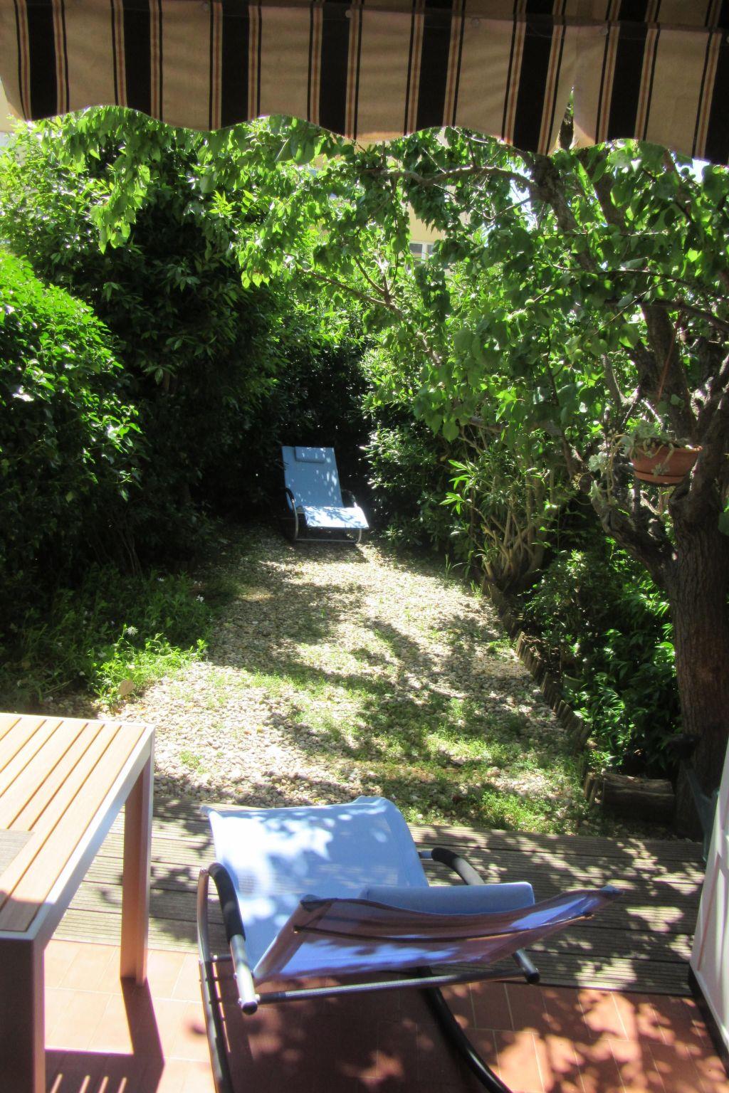 Private garden, fenced and completely overgrown on all sides, comfortable chairs and 2 sun loungers