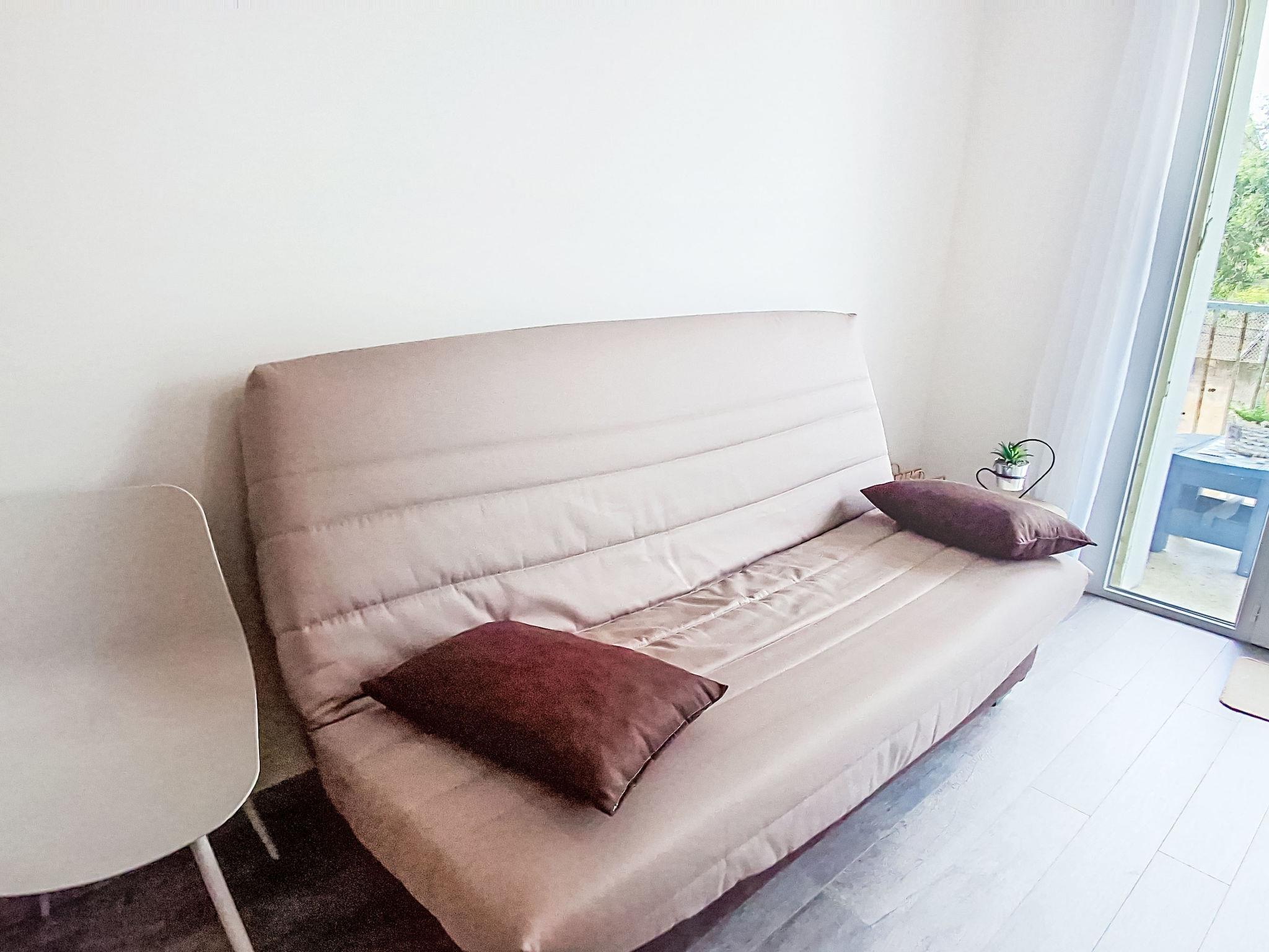 1-room apartment 36 m2 on 2nd floor. Bright, renovated in 2025, comfortable furnishings: living/dining room with 1 sofabed (135 cm, length 190 cm), 1 french bed (135 cm, length 190 cm), dining table and TV (flat screen). Exit to the terrace. Kitchenette (2 ceramic glass hob hotplates, toaster, microwave, freezer, electric coffee machine). Shower, sep. WC. Electric heating. Balcony 10 m2. Balcony furniture. Facilities: Internet (WiFi, free). Please note: non-smokers only. Maximum 1 small pet/ dog allowed. Smoke alarm, no lift. Offer by a private individual according to Art. 155, IV of CGI.