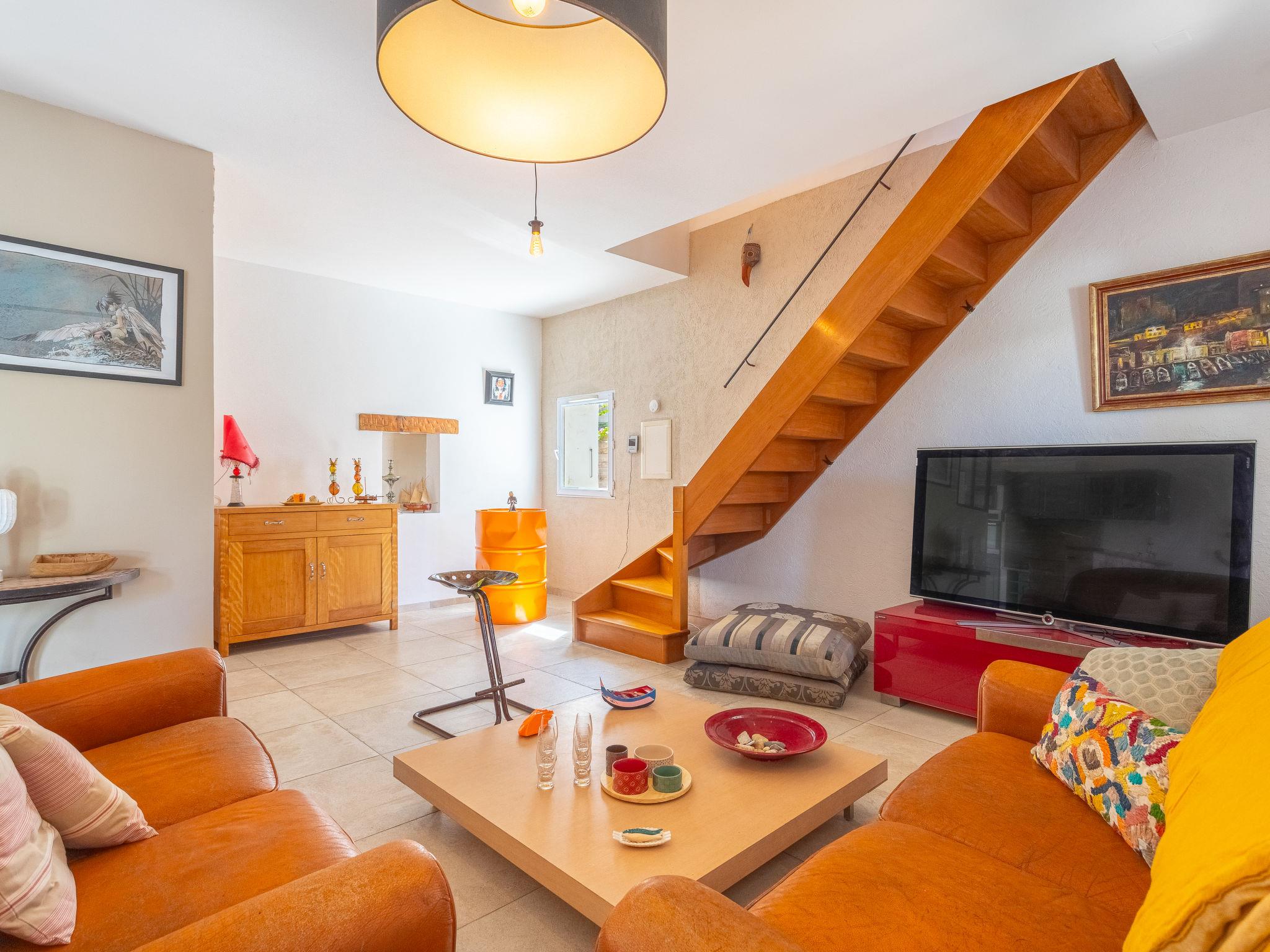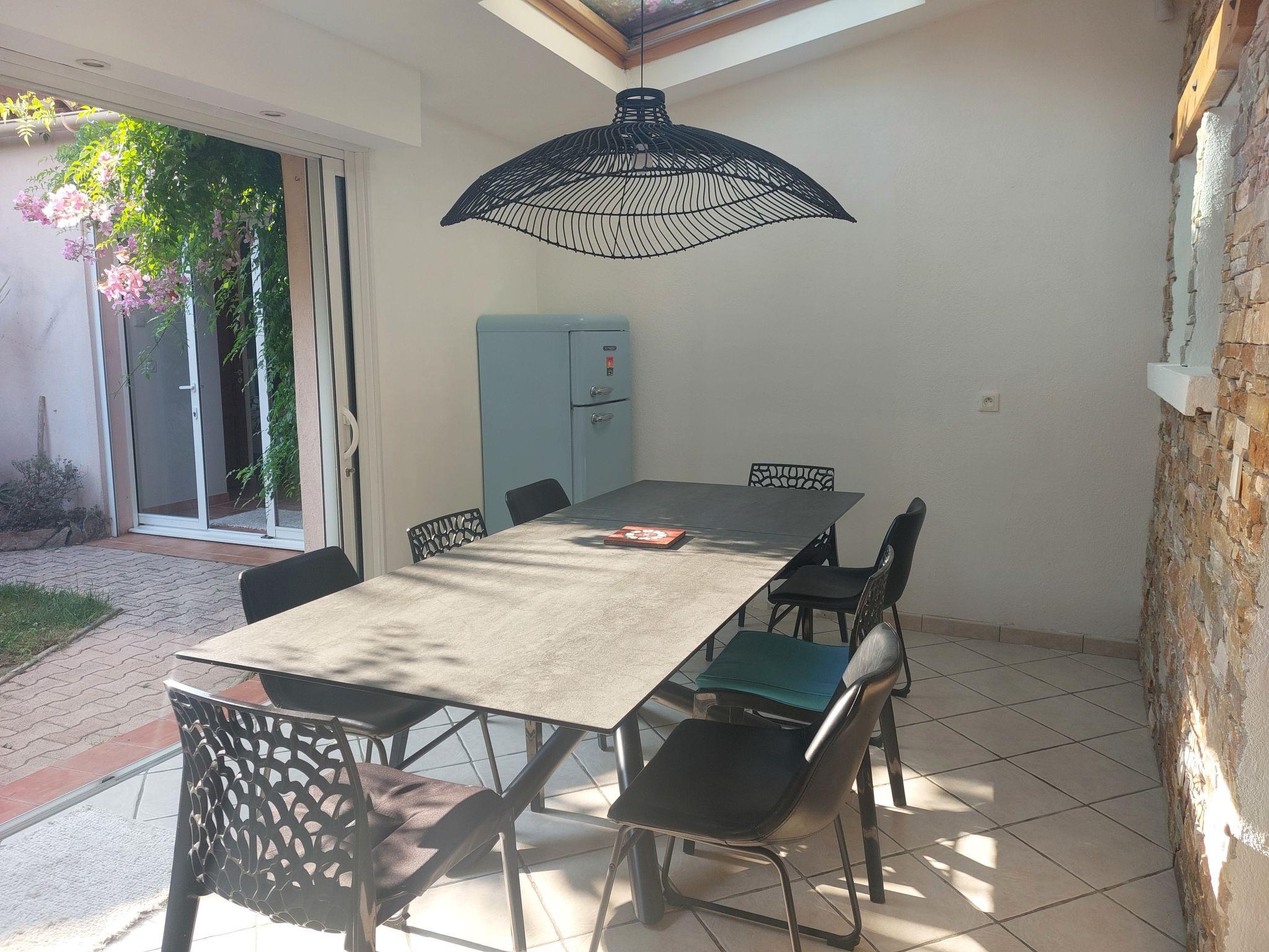 "La maison du Port", 5-room house 150 m2 on 3 levels. Beautiful furnishings: living room with Scandinavian wood stove, TV and digital TV (flat screen). Exit to the terrace. Dining room with dining table. Exit to the patio. 1 room with 1 french bed (140 cm, length 190 cm), shower/WC. Exit to the patio. Open kitchen (oven, dishwasher, 3 induction hot plates, toaster, kettle, microwave, freezer, electric coffee machine). Sep. WC. Upper floor: office. Exit to the terrace. 1 room with Dressing room with 1 french bed (160 cm, length 190 cm), air conditioning. Exit to the terrace. 1 room with 1 french bed (140 cm, length 190 cm), air conditioning. Shower/WC. 2nd upper floor: (steep stair), 1 room with sloping ceilings with rooflight with 1 french bed (140 cm, length 190 cm). Electric heating. Terrace furniture, barbecue (portable), deck chairs (6). Partial view of the sea and the port. Facilities: washing machine, iron. Internet (WiFi, free). Please note: one double bedroom is outside the apartment. Non-smoking house. Maximum 1 pet/ dog allowed. Smoke alarm. Offer by a private individual according to Art. 155, IV of CGI.