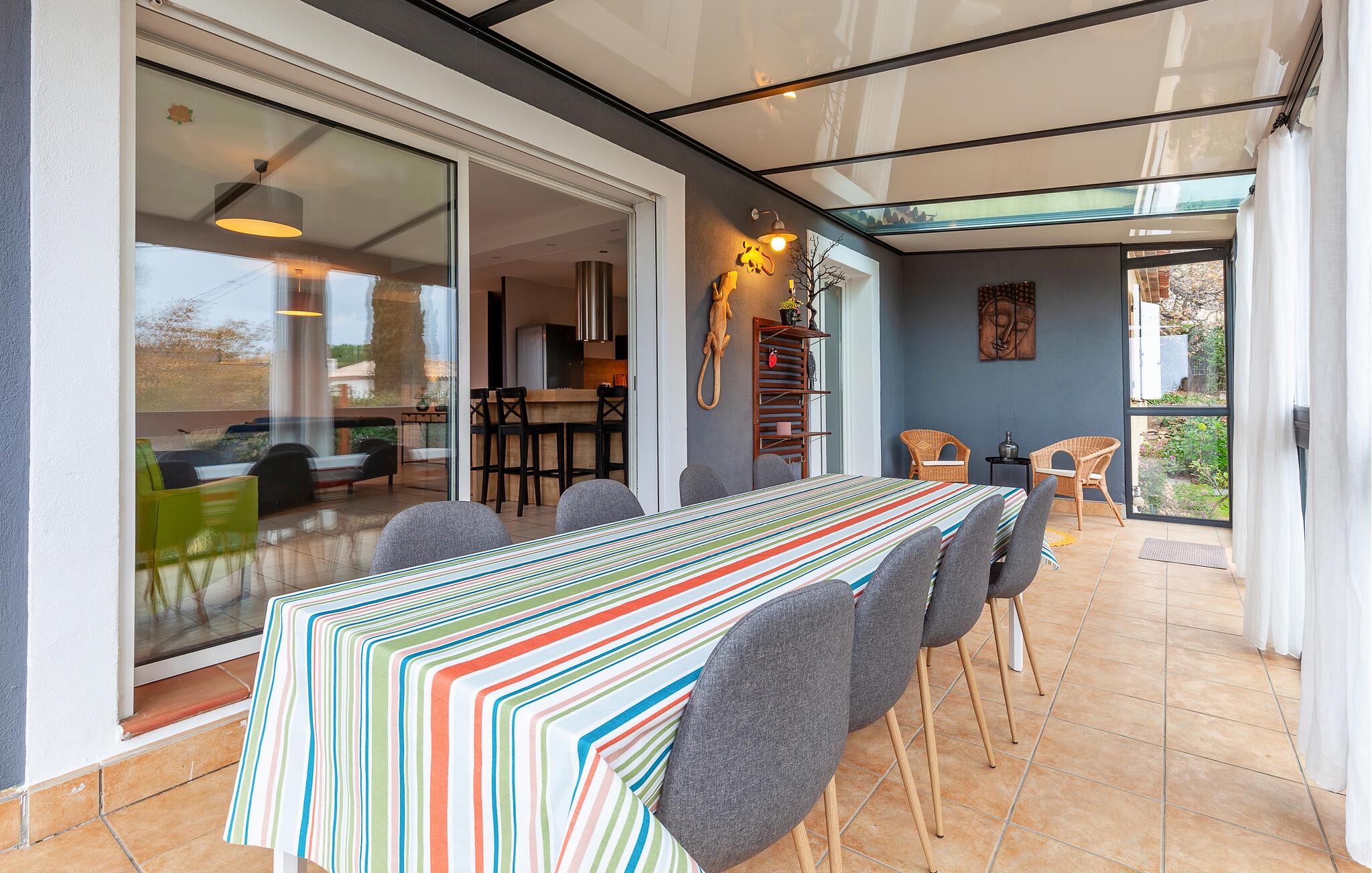 Tag en pause fra hverdagens stress og glæd jer til en skøn ferieoase i dette farverige og indbydende hus, der blandt andet byder på en dejlig udestue. Huset byder på masser af plads, så I kan rejse med den udvidede familie eller en vennefamilie, uden at give køb på jeres privatliv. Den store, åbne stue er husets hjerte, og her kan amatørkokkene kræse om jeres livretter i køkkenet, mens andre finder sig godt til rette i sofaen med et puslespil eller en god bog.