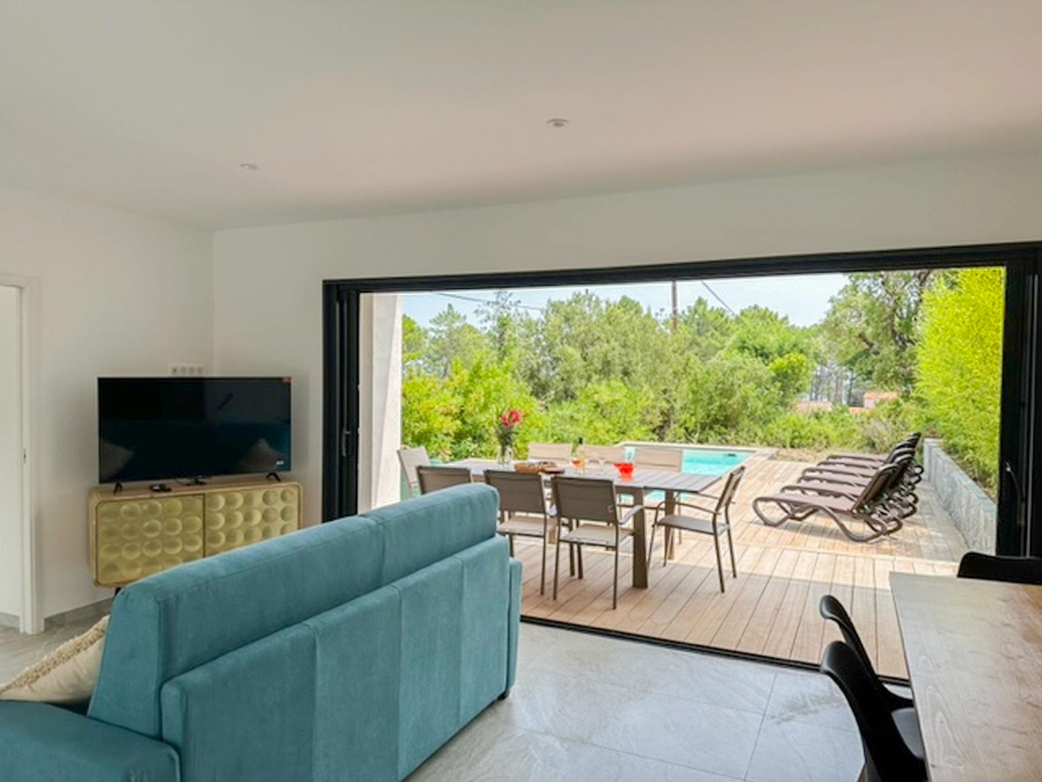 Terraced house "Les Jardins d'Ève", built in 2019, surrounded by trees. 8 km from the centre of Solenzara, 33 km from the centre of Porto Vecchio, 105 km from the centre of Bastia, in a sunny position, 150 m from the sea, direct access to the beach. Private: swimming pool heated (7 x 3 m, depth 150 cm, seasonal availability: 02.Apr. - 01.Oct.) with alarm system. Parking on the premises. Shop 1.5 km, supermarket 8 km, bus stop 9 km, sandy beach "Baie de Canella" 900 m, rocky beach 300 m. Hiking paths: Aiguilles de Bavella 39 km. Please note: car recommended.