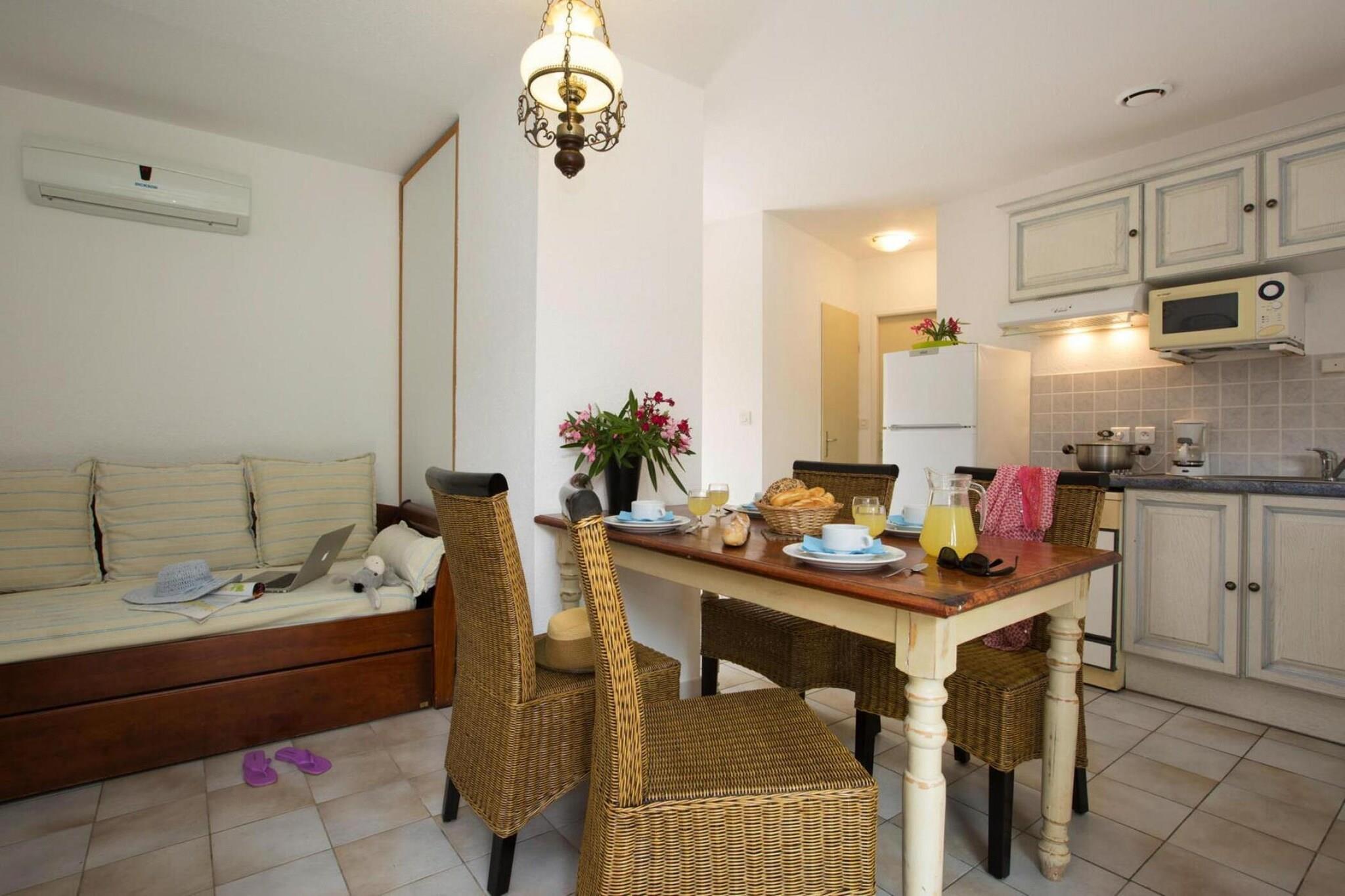 Denne indbydende havebungalow med overdækket terrasse ligger i kystbyen Solenzara på Korsika og tilbyder en afslappet og komfortabel feriebase for par eller små familier, der søger solskin, privatliv og nem adgang til middelhavslivsstilen. Bungalowen er gennemtænkt og veludstyret og blander indendørs komfort med indbydende udendørsliv. Indenfor har boligen en lys opholds- og spisestue med en dobbelt sovesofa, tv og spisebord, hvilket skaber et hyggeligt rum til måltider, afslapning og fælles tid. Det fuldt udstyrede tekøkken giver dig mulighed for at nyde enkel selvforplejning under hele dit ophold. Det private soveværelse er møbleret med en komfortabel dobbeltseng, der giver afslappende nætter efter dage med at udforske kysten. Et komplet badeværelse med badekar tilbyder plads til at slappe af, mens et separat toilet tilføjer bekvemmelighed og privatliv. Yderligere faciliteter, såsom en vaskemaskine, aircondition og en gratis babyseng, gør bungalowen velegnet til både korte og længere ophold. Udenfor åbner huset ud til en overdækket privat terrasse med havemøbler, omgivet af en fredelig have - et ideelt sted til morgenkaffe, eftermiddagslæsning eller aftensmad. Gæsterne har også adgang til en fælles swimmingpool, perfekt til afkøling under den korsikanske sol. En grill indbyder til afslappede måltider udendørs, mens privat parkering sikrer nem ankomst og afrejse. Denne charmerende bungalow ligger tæt på Solenzaras strande, lystbådehavn, bjergstier og landsbycaféer og tilbyder den perfekte balance mellem kystliv og afslappet komfort til din korsikanske ferie.