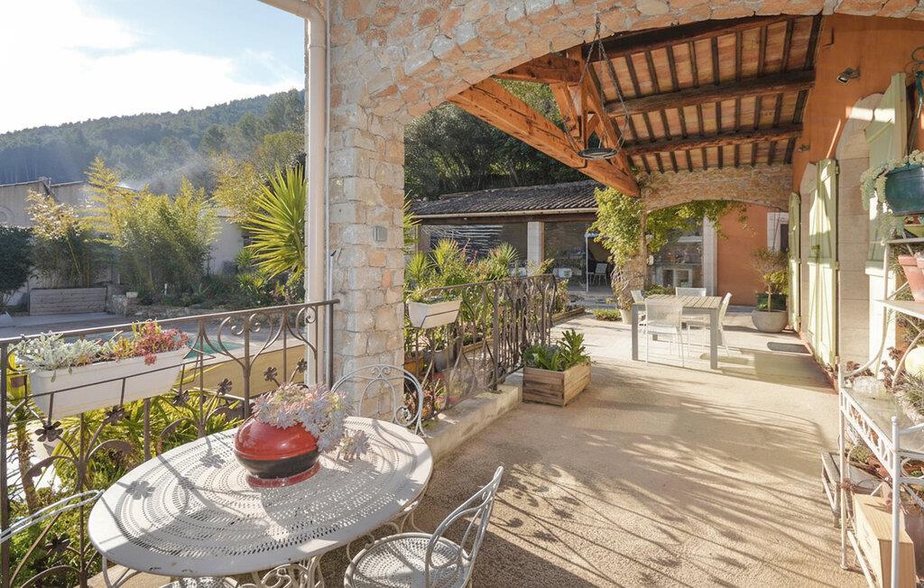 Glæd jer til nogle skønne dage i denne villa, der legemliggør Provences autentiske karakter. Huset ligger i en frodig dal og tilbyder det ideelle tilflugtssted for familier og venner, der søger ro, solskin og Sydfrankrigs livsglæde. Oplev den varme atmosfære i provencalsk stil i den lyse stue med bjælkeloft, pejs og komfortable sofaer. Åbn de store franske døre og lad sollyset komme ind. Tilbered lækre måltider i det farverige køkken, som I derefter kan nyde ved spisebordet eller på den overdækkede terrasse.