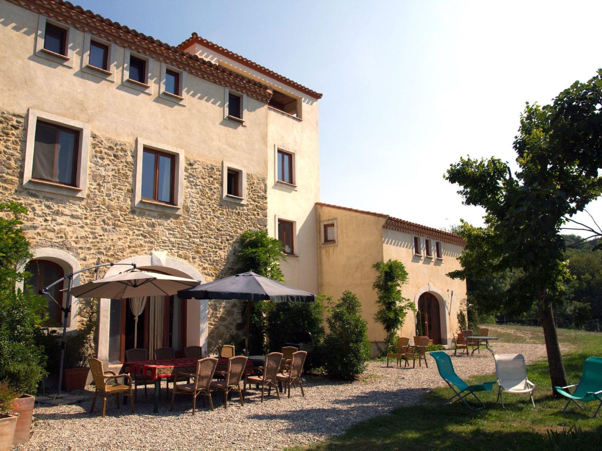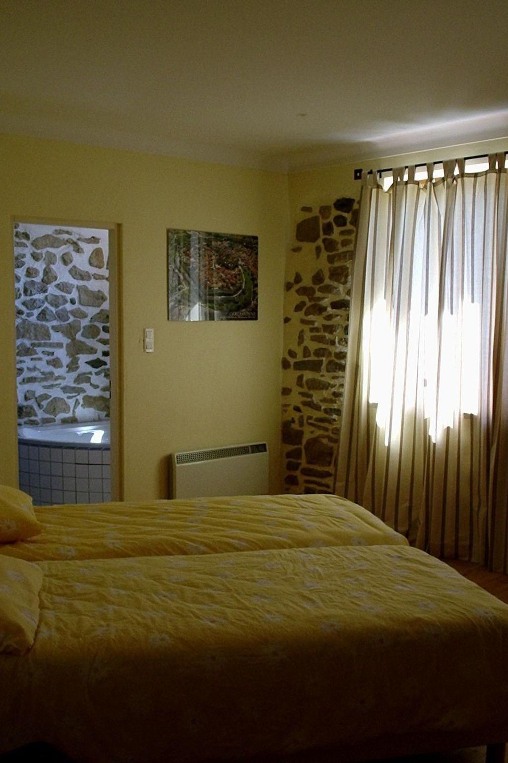 In the land of the Cathars, 30 km south-west of Carcassonne, lies 'Domaine La Flotte' at the foot of the Pyrenees. On a large plot of 44 hectares, the ruins of an old farm have been transformed into a group of 4 magnificent holiday homes, nestled in a landscape of meadows and forests and with a fantastic view of the nearby mountains. The houses can be rented individually or en bloc (groups of up to 20 people, price on request) This is the description of the largest house "Syrah", 220 m² in size, suitable for a maximum of 10 people.