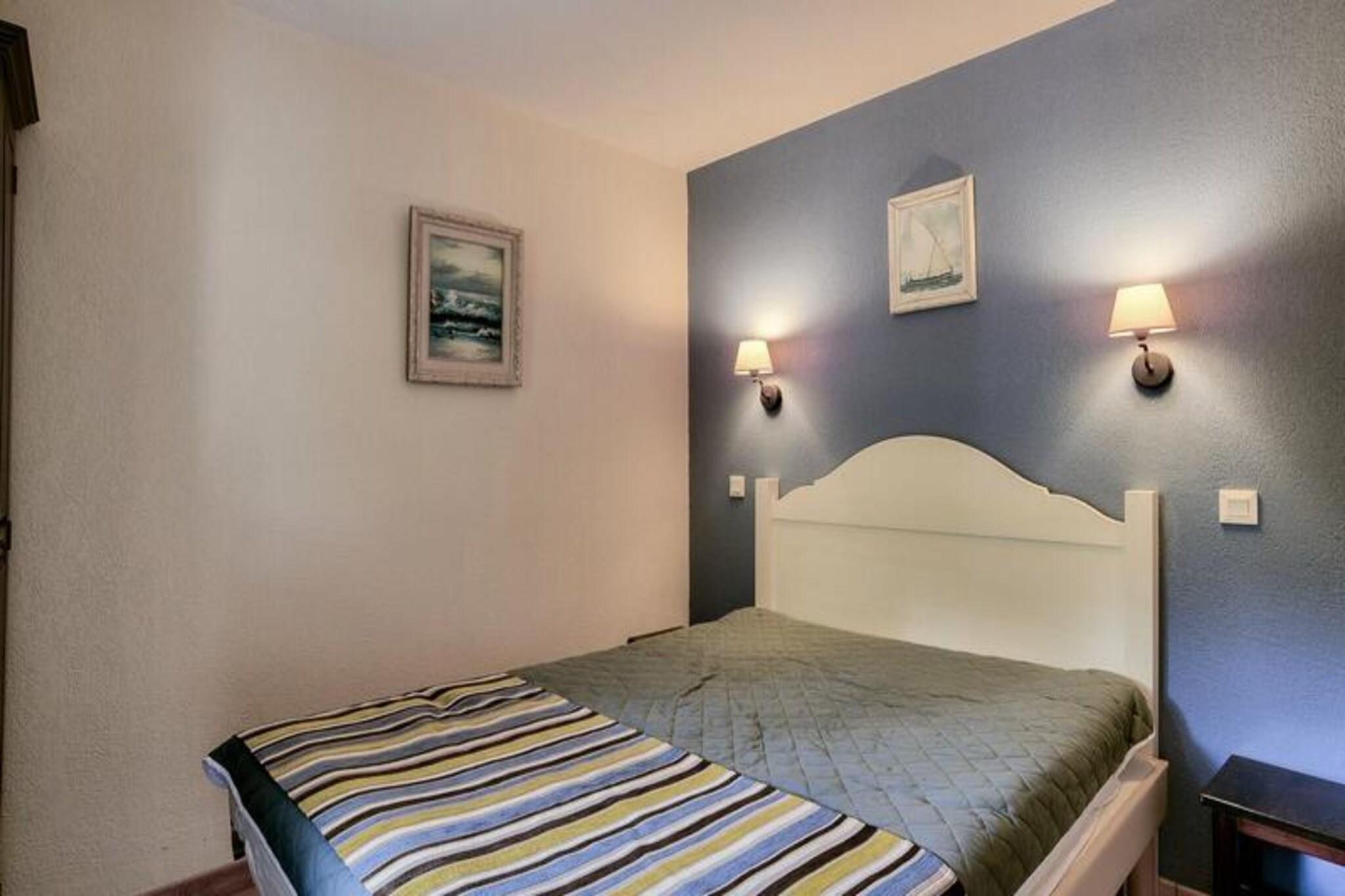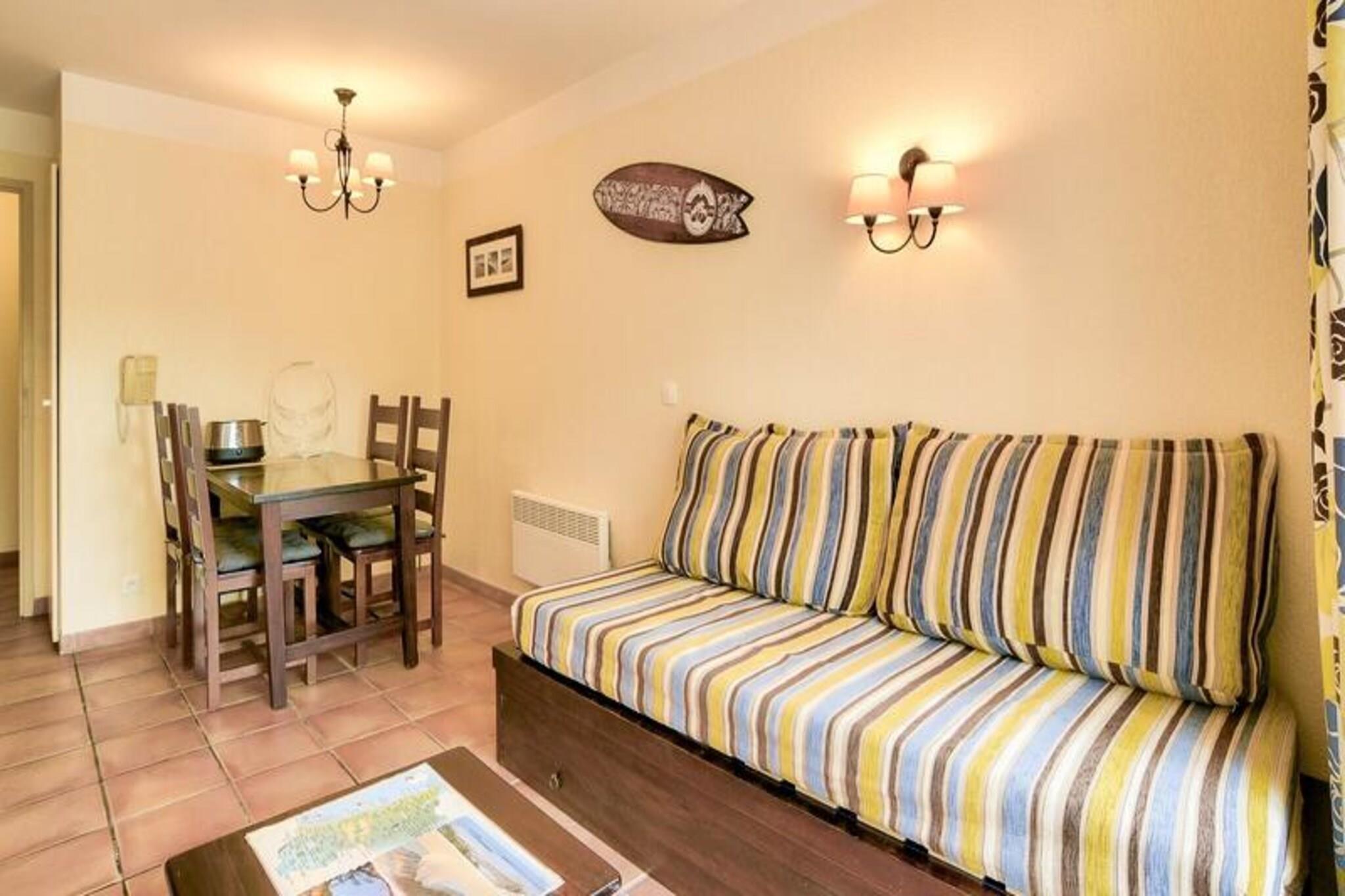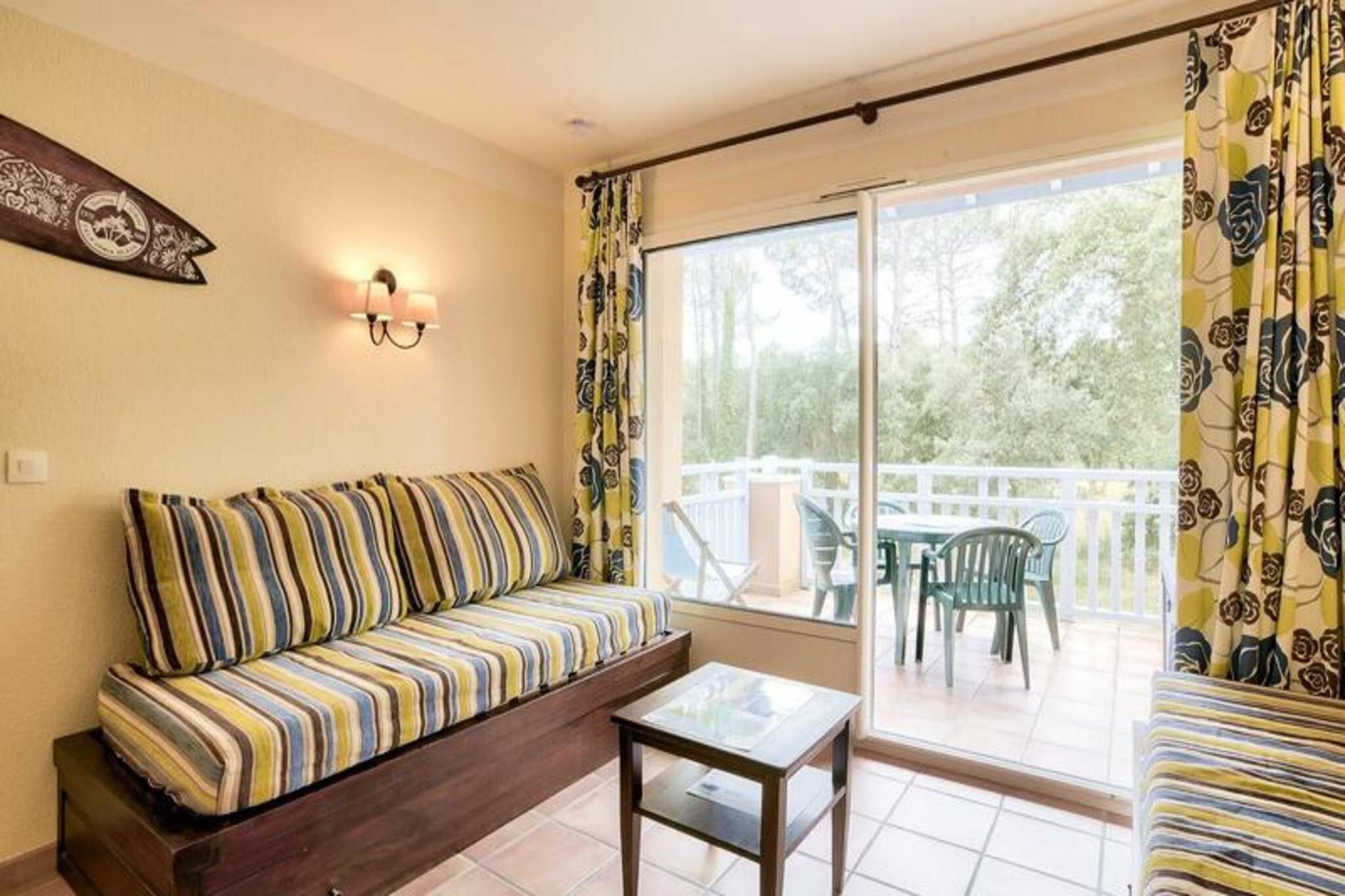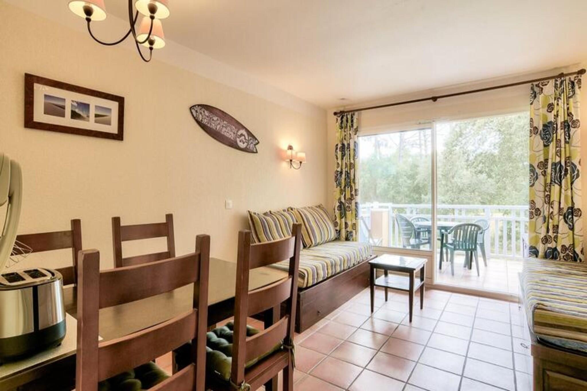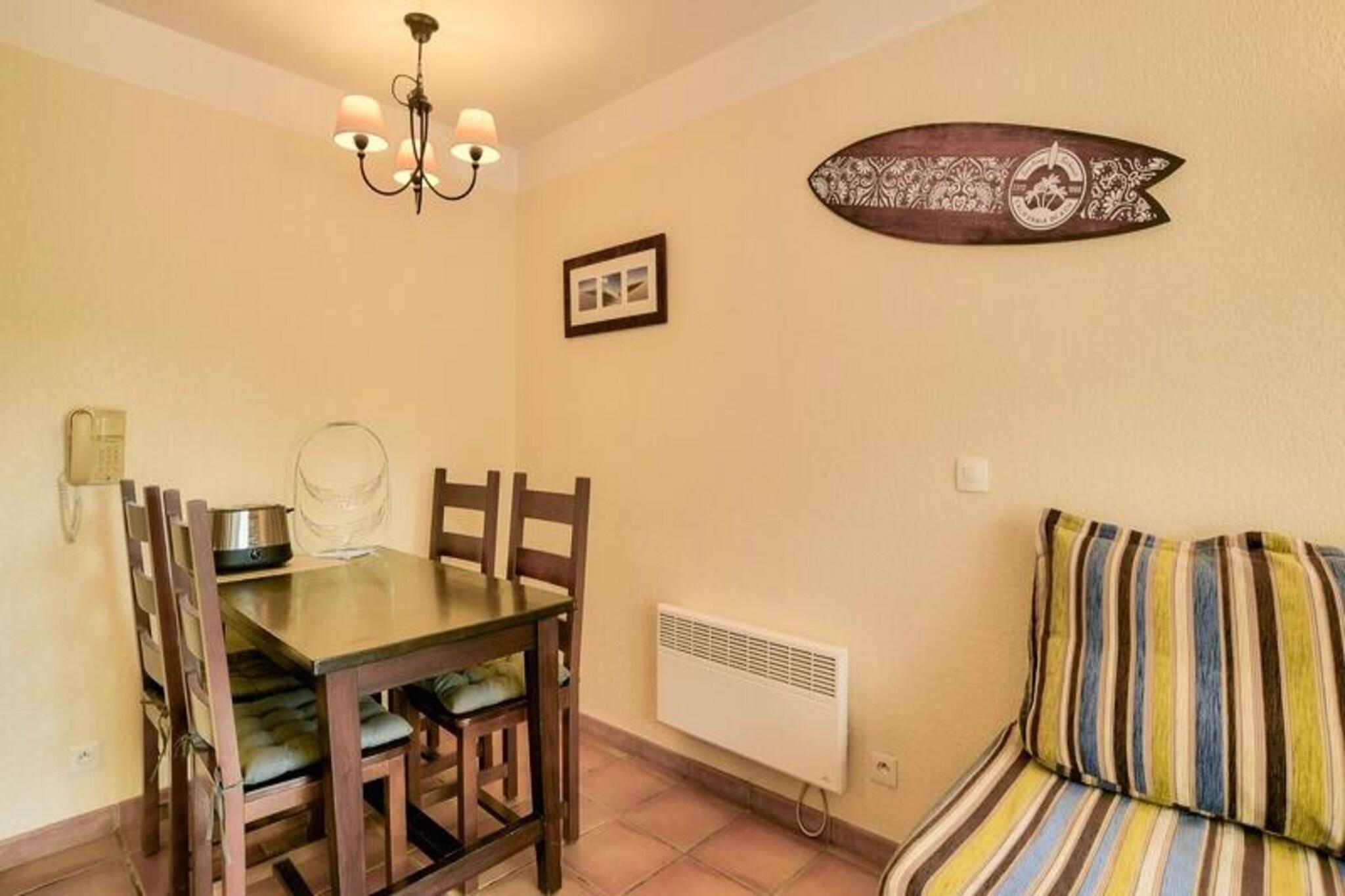 Denne lejlighed med 1 soveværelse tilbyder et afslappende oase i Soustons, perfekt til familier eller grupper på op til fem. Beliggende på kanten af ??en golfbane og kun en kilometer fra en havsø, tilbyder ejendommen et roligt miljø. Beskrivelsen nævner ikke kæledyrspolitikker, så det er bedst at tjekke direkte. Boligen er beliggende i hjertet af en fyrreskov og tilbyder nem adgang til udendørs aktiviteter som golf, tennis og ridning (alt sammen mod et ekstra gebyr). Gæsterne kan også nyde den gratis, opvarmede udendørs swimmingpool med soppebassin, solarium og terrasse (åben fra midten af ??juni til midten af ??oktober). Denne lejlighed i stueetagen har en stue med en sovesofa med plads til to, en udtræksseng til én og en balkon med sydvendt udsigt over golfbanen. Køkkenet er halvåbent til stuen. Soveværelset har en dobbeltseng, og badeværelset har badekar, separat toilet og faciliteter såsom hårtørrer og håndklædetørrer. Til lejligheden hører også en gratis parkeringsplads. Yderligere faciliteter såsom wifi, sengelinned, håndklæder og slutrengøring er alle tilgængelige mod et gebyr.