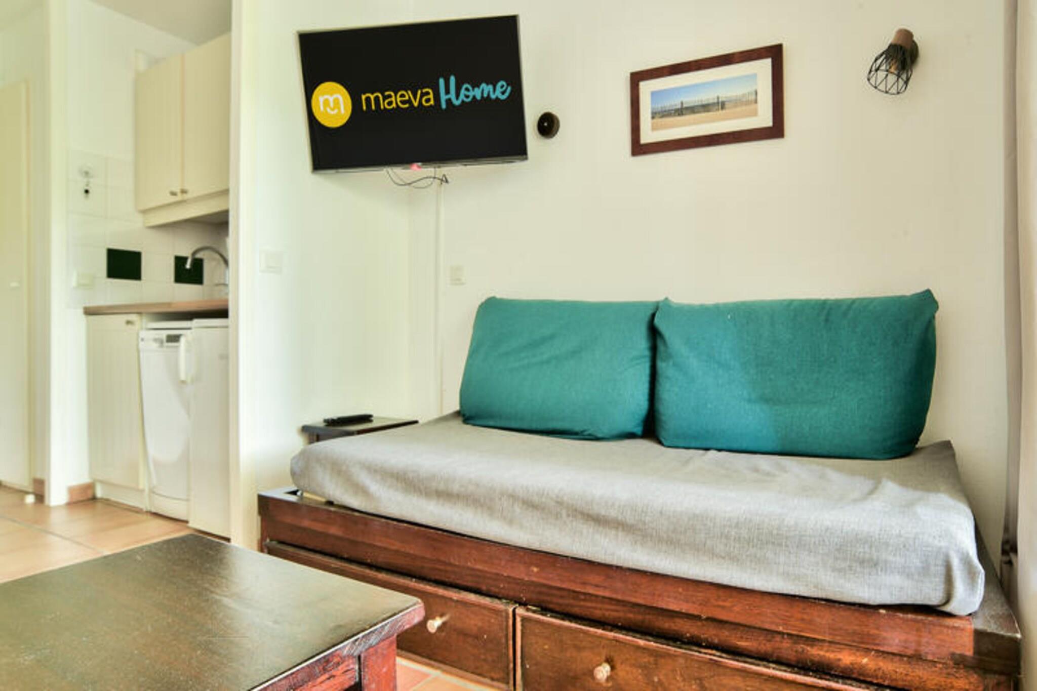 A tiro de piedra de las playas de arena fina, la residencia Le Domaine du Golf de Pinsolle está situada al borde del campo de golf, a 1 km del lago marino de Etangs. Esta residencia de vacaciones en Soustons ofrece alojamiento de calidad en un ambiente tranquilo y relajante. En el corazón de un pinar, este alquiler de vacaciones en el sur de las Landas le ofrece un abanico de actividades para jóvenes y mayores (con coste adicional): golf, tenis, equitación... Acceso gratuito a la piscina exterior climatizada (con piscina infantil, solarium, terraza...). También está previsto para los inquilinos de alojamiento, abierto desde mediados de junio hasta el 15/10/2024. Destino ideal en la Costa de Plata, Soustons es una ciudad con mil facetas situada en un entorno excepcional: amplias playas de arena a lo largo del océano, preciosos pinares arbolados, lagos marinos... Algunas ideas de paseos para amantes del senderismo: Étang de Soustons: Pasea alrededor de este gran estanque rodeado de pinares. Hay senderos señalizados para excursionistas y ciclistas. Ruta del Adour: Una caminata a lo largo del Adour permite descubrir la belleza de los paisajes landeses. 1 salón, 1 rincón cocina, 1 dormitorio, 1 baño y 1 aseo independiente. Equipamiento del salón: 2 sofás cama, 1 de ellos con cama nido. Para la comida: una mesa con 4 sillas. Instalaciones de la habitación: 1 dormitorio con 1 cama doble. Equipamiento de baño: 1 ducha y 1 aseo independiente. Equipamiento de la cocina: Zona de cocina abierta al salón. Equipamiento de terraza: una mesa con 4 sillas. Superficie: 30 m² aproximadamente. Las ventajas de este alojamiento: Apartamento reformado a principios de 2023 con terraza amueblada, vista al bosque, en la planta baja, orientación oeste, trastero, TV... Etiqueta maeva Home Confort: buena relación calidad-precio. Servicios correctos, alojamiento mantenido y equipado con las principales comodidades. Lo imprescindible para unas vacaciones al mejor precio. Acceso Wifi - Con suplemento - sujeto a disponibilidad. Se admiten mascotas - Además, consultar precios directamente con la residencia. Ropa de cama - Cargo adicional - Funda, sábana o funda nórdica y funda de almohada (el contenido puede variar según el alojamiento) Toallas - Cargo extra. Posibilidad de cambio de ropa de diario disponible, consultar precios en recepción. Limpieza final de estancia - Servicio de limpieza obligatorio a pagar al realizar el check-in o a la llegada. Aparcamiento: aparcamiento exterior gratuito situado dentro de la residencia. Piscina - Piscina exterior climatizada dentro de la residencia (abierta desde mediados de junio hasta el 15/10/2024 con piscina infantil, solárium, terraza, etc.) - Incluida. Tasa turística (cargo adicional) - El pago de la tasa turística se realiza a través de su espacio personal: https://mon-compte.maeva.com, el importe varía según la ubicación. Gratis para menores de 18 años. Televisión - Según alojamiento. Limpieza final de estancia - Servicio de limpieza obligatorio a pagar al realizar el check-in o a la llegada. Ropa de cama - Cargo adicional.
