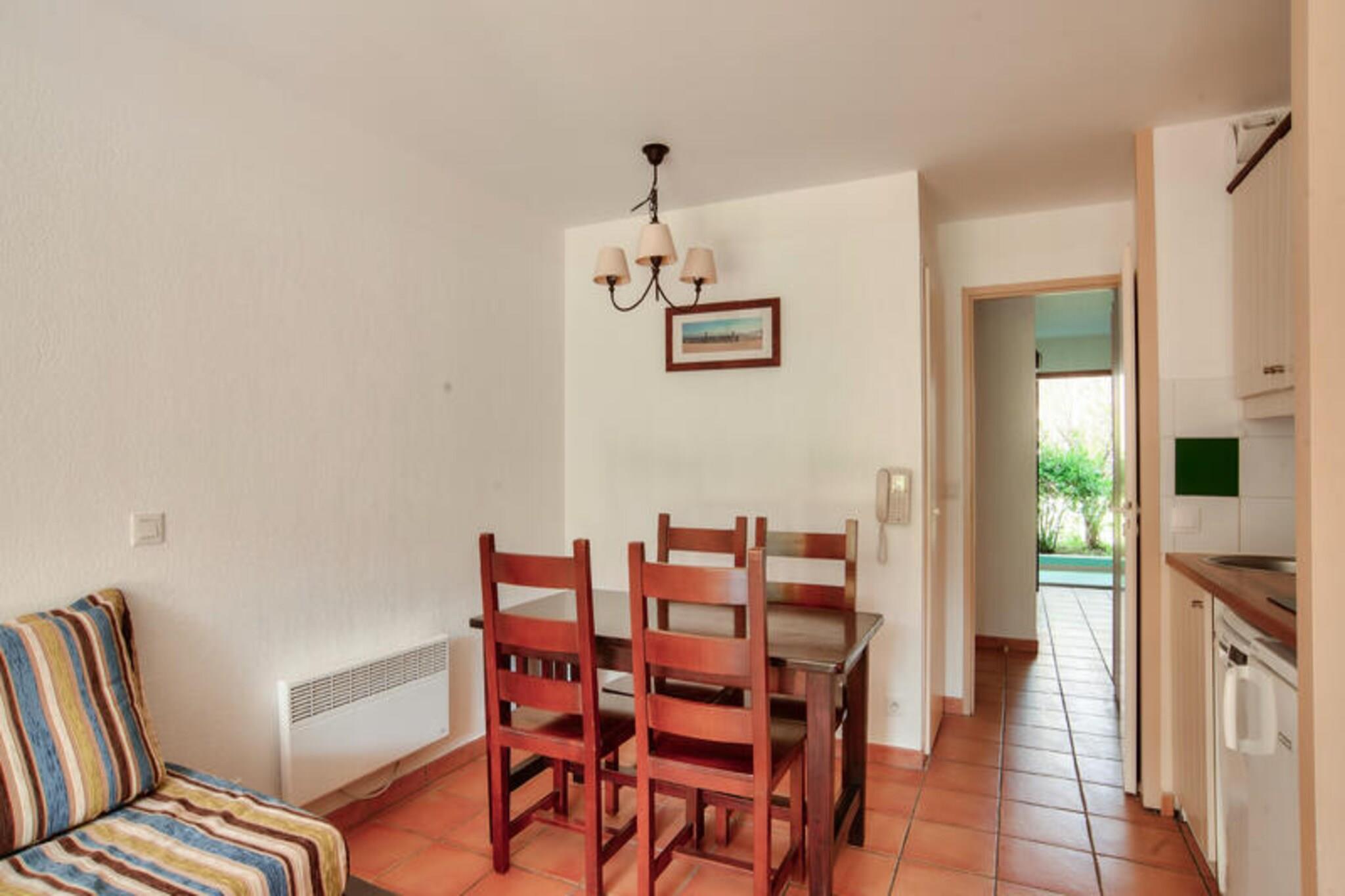 Beliggende midt i en fredelig fyrreskov tilbyder denne 30 m² store lejlighed i stueetagen en afslappende ferie i Soustons, en charmerende by på Sølvkysten. Lejligheden kan komfortabelt rumme op til fem gæster, og byder på en stue med en sovesofa, der kan omdannes til to enkeltsenge, et soveværelse med en dobbeltseng, et badeværelse, et separat toilet og en overdækket vestvendt terrasse med udsigt over skoven. Boligen tilbyder også gratis udendørs parkering. Beliggende nær kanten af ??en golfbane og kun 1 km fra Étangs marine sø, tilbyder denne feriebolig en rolig atmosfære. Gæsterne kan nyde en række aktiviteter i det omkringliggende område (ekstra gebyrer kan forekomme), herunder golf, tennis og ridning. Boligen kan prale af en opvarmet udendørs swimmingpool med et soppebassin, solarium og terrasse (åben fra midten af ??juni til midten af ??oktober), perfekt til at nyde sommervejret. Soustons selv er en by med forskellige attraktioner. Slap af på de store sandstrande, udforsk de smukke træbeklædte fyrreskove, eller tag en vandretur rundt i Étang de Soustons eller langs Adour Trail. Lejligheden byder på yderligere faciliteter såsom et halvåbent køkken og et spisebord med plads til fem. Wi-fi-adgang, sengetøj, håndklæder og slutrengøring er alle tilgængelige mod et ekstra gebyr. Kæledyr kan også tillades efter henvendelse til boligen.
