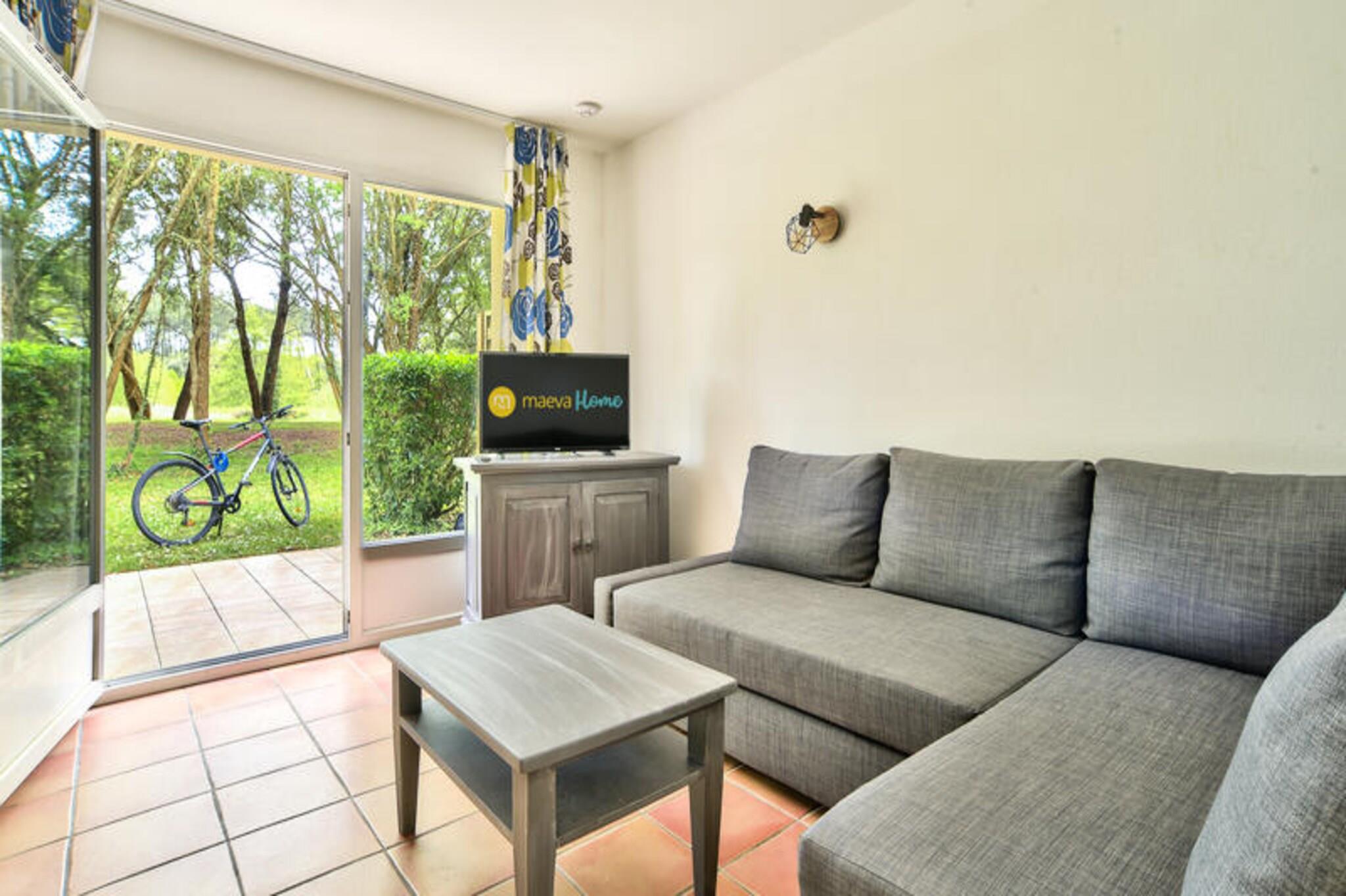 Cerca de las playas y del lago marino de Etangs, la residencia Le Domaine du Golf de Pinsolle, situada al borde del campo de golf, es el lugar perfecto para unas vacaciones en Soustons. Situada en un pinar particularmente verde, esta residencia de vacaciones en Las Landas ofrece casas privadas en el estilo típico de la región. Durante su estancia en Soustons, disfrute de acceso gratuito a la piscina exterior climatizada de la residencia (con piscina infantil, solárium, terraza, etc.). Desde su casa de vacaciones en Soustons, no se pierda las numerosas actividades que ofrece la residencia: parque de aventuras, ciclismo, senderismo... Te gustará: Viviendas vacacionales situadas en un entorno natural en pleno corazón de un pinar. Acceso gratuito a la piscina exterior de la residencia, ideal para jóvenes y mayores, abierta desde mediados de junio hasta el 15/10/2024. Un balneario perfecto para disfrutar de la playa y el lago cercanos. Su alquiler vacacional incluye: 1 salón, 1 cocina, 2 dormitorios, 1 baño, 1 aseo independiente, 1 terraza, 1 jardín y 1 plaza de aparcamiento. Las ventajas de su alojamiento Super Home: Bonita casa dúplex, vista al golf, orientación Sur - Oeste, con piscina dentro de la residencia, estacionamiento, Wifi, terraza y jardín. Superficie: 50 m². Ubicación : Planta de alojamiento: Planta baja Distancia a pistas/mar: >500m Distancia comercial: >500m Actividades a distancia: >500m Número de niveles de vivienda: 1 piso / Dúplex Composición del salón: Sofá estándar: Sí Plazas para sentarse en el sofá: 5 Mesa de centro: Sí Lado de la comida: Tipo de cocina: Semiabierta Composición de las habitaciones: Dormitorio 1: Cama doble: 1 Dormitorio 2: Cama individual: 2 Composición del baño: Número de baño: 1 Número de baños separados: 1 Baño principal: Tipo de baño: Ducha Una toma de corriente libre cerca del espejo: Sí Perchero(s) o secador de toallas sin calefacción: Sí Secador de toallas eléctrico: Sí Espacio(s) de almacenamiento (sin incluir el estante debajo del espejo y el tocador): Sí Secador de pelo eléctrico: Sí WC: Sí Exteriores: Balcón: Sí Vista del balcón: Vista al golf Orientación del balcón: Sur - Oeste Terraza: Descubrimiento Vista de la terraza: Vista al golf Orientación de la terraza: Sur - Oeste Jardín: Sí Jardín opuesto: Sí Vista al jardín: Vista al golf Orientación del jardín: Sur - Oeste Tipo de estacionamiento: al aire libre Etiqueta exclusiva de maeva Home: Una propiedad excepcional y exclusiva. Se beneficiará de un alojamiento de muy alta calidad, con un volumen, una distribución o un equipamiento excepcionales. Disfrute de su estancia en una propiedad atípica y excepcional con el máximo confort. El plus de la experiencia maeva Super Home: Una acogida personalizada y servicios de calidad incluidos directamente en el precio de su alquiler: ropa de cama, ropa de baño, camas hechas a la llegada, limpieza final, acceso wifi y kit de mantenimiento. ¡Todo está pensado para que tengas una excelente estadía! Acceso Wifi - Con suplemento - sujeto a disponibilidad. Ropa de cama - Cargo adicional - Funda, sábana o funda nórdica y funda de almohada (el contenido puede variar según el alojamiento) Toallas - Cargo extra. Posibilidad de cambio de ropa de diario disponible, consultar precios en recepción. Limpieza final de estancia - Servicio de limpieza obligatorio a pagar al realizar el check-in o a la llegada. Aparcamiento: aparcamiento exterior gratuito situado dentro de la residencia. Piscina - Piscina exterior climatizada dentro de la residencia (abierta desde mediados de junio hasta el 15/10/2024 con piscina infantil, solárium, terraza, etc.). - Incluido. Tasa turística (cargo adicional): a pagar en el sitio, la tarifa varía según la ubicación. Gratis para menores de 18 años. Depósito (en euros) - 1200 Ropa de cama - Cargo adicional. Limpieza final de estancia - Servicio de limpieza obligatorio a pagar al realizar el check-in o a la llegada.