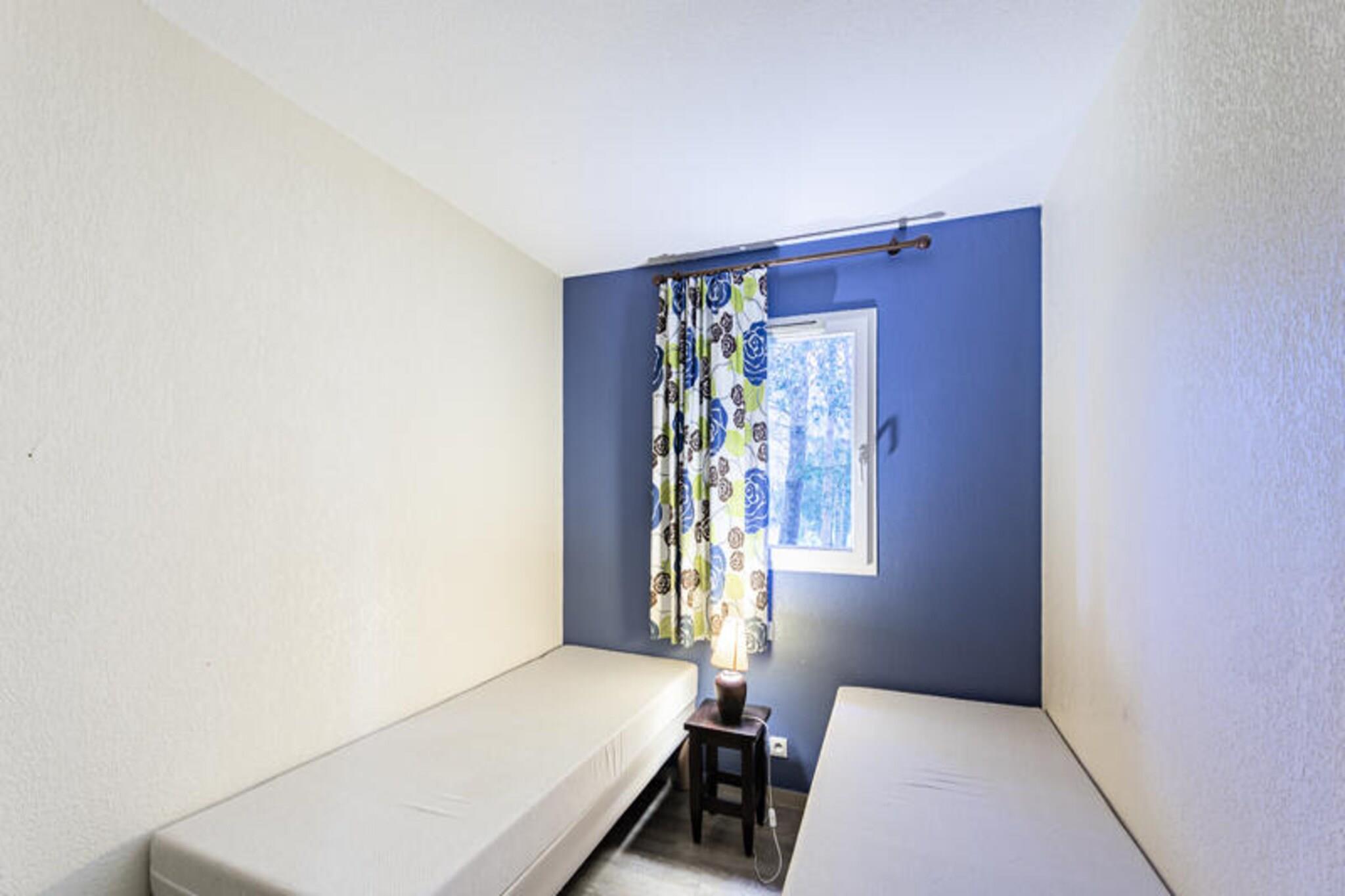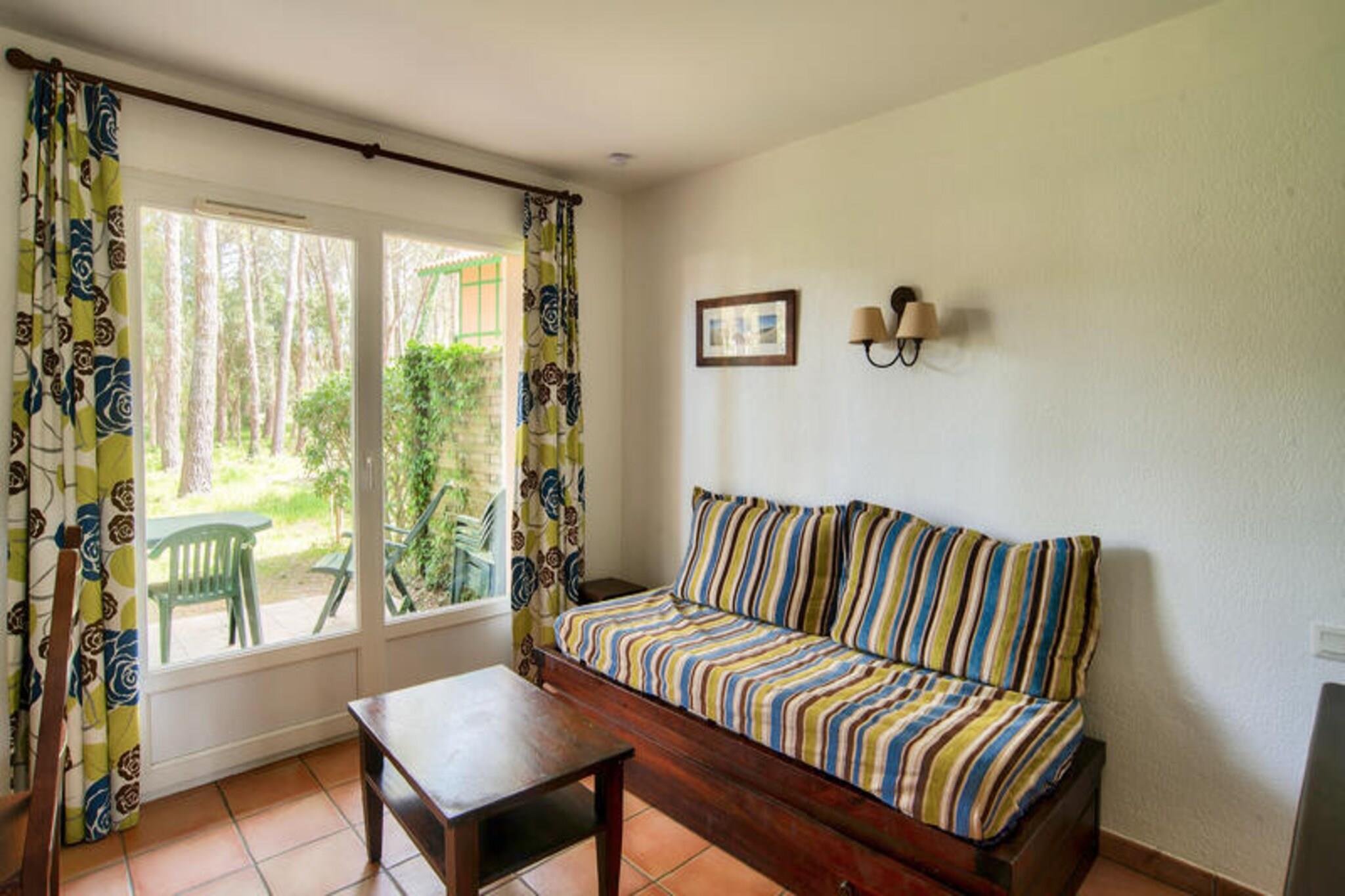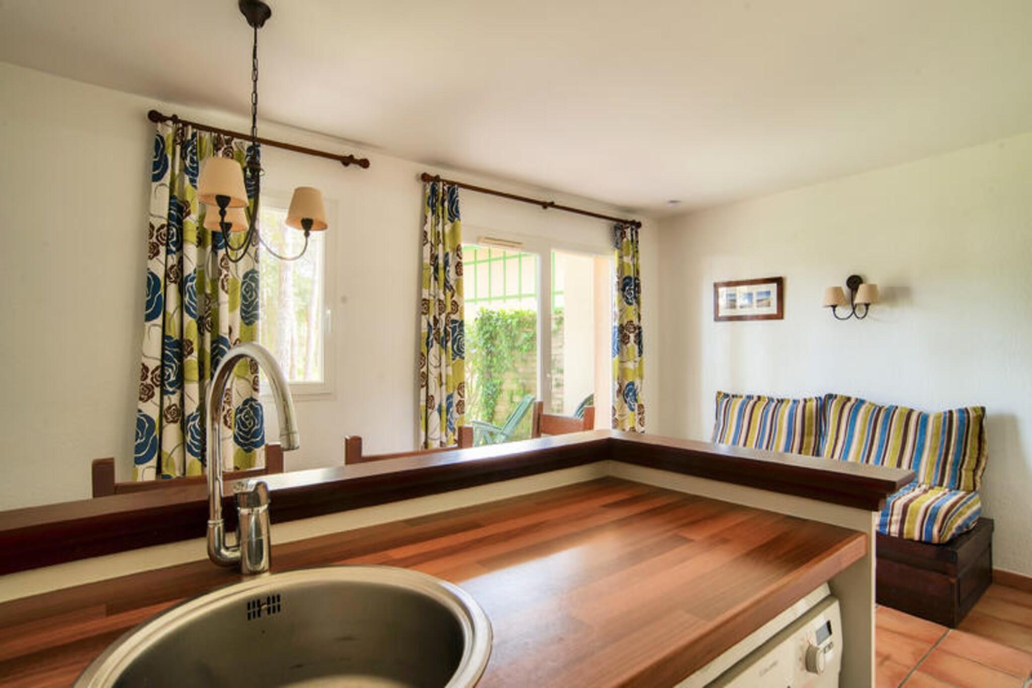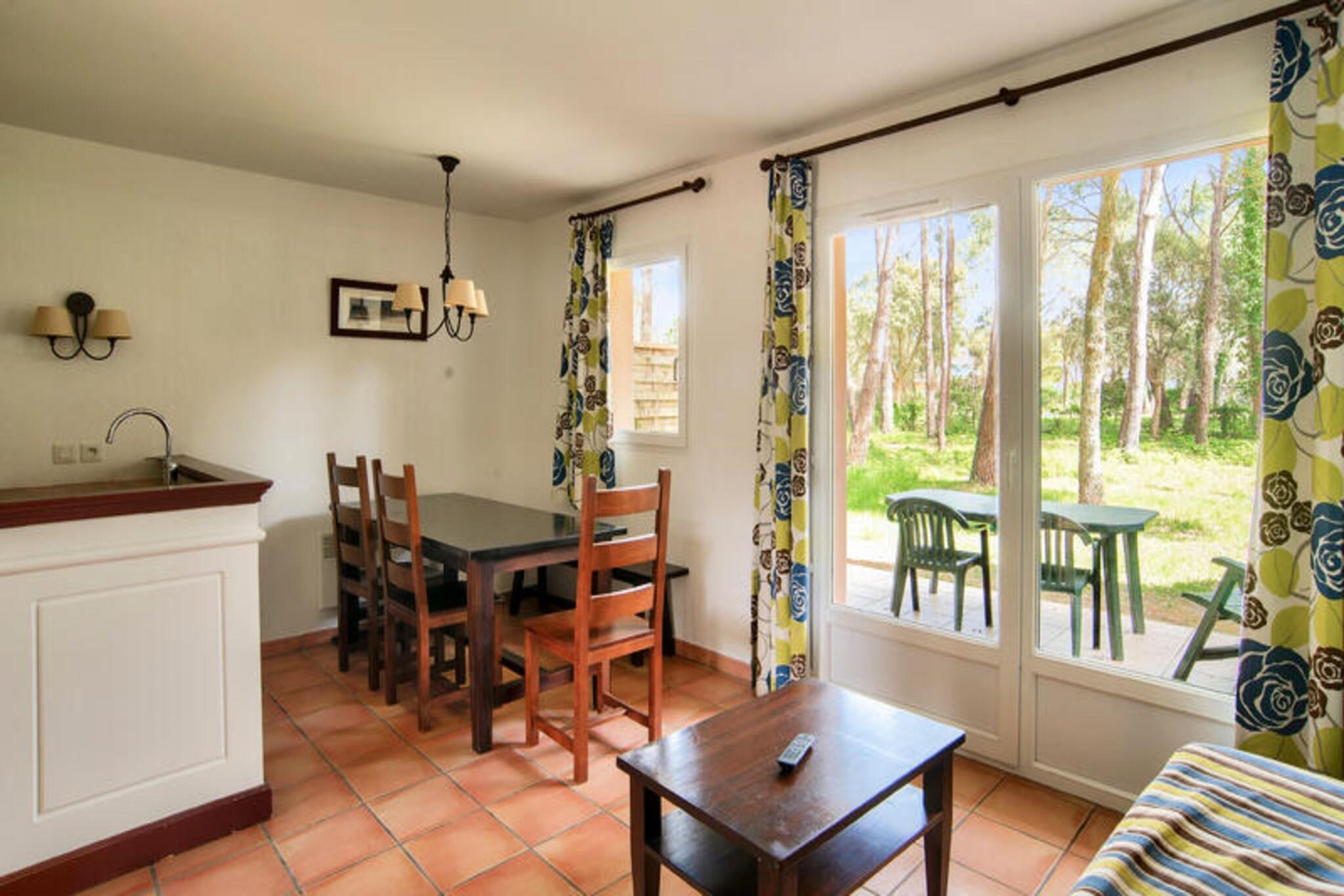 Beliggende i en fredelig fyrreskov tilbyder dette charmerende feriehus på 35 m² et behageligt ophold for op til 6 gæster. Indkvarteringen har to soveværelser, med en dobbeltseng i den ene og to enkeltsenge i den anden. I stuen er der en sovesofa til yderligere gæster, og der er et badeværelse med badekar og et separat toilet. Ejendommen er kæledyrsvenlig, så du kan tage dine lodne ledsagere med til en afslappende ferie. Det tilbyder også gratis udendørs parkering for ekstra bekvemmelighed. Nyd områdets naturlige skønhed med nem adgang til en række udendørs aktiviteter. Boligen ligger kun i kort afstand fra stranden og Etangs marinesø, hvilket gør den ideel til afslapning ved havet. Vandreture, cykling og oplevelsesparkaktiviteter er tilgængelige i nærheden. Derudover ligger den lokale bymidte inden for 10 minutters kørsel, hvor du finder caféer, restauranter og butikker at udforske. Feriehuset er udstyret med et åbent amerikansk køkken, perfekt til at tilberede måltider, og en hyggelig spiseplads med bord og stole. Du kan slappe af på den private terrasse med udsigt over haven, et perfekt sted til udendørs spisning. For en forfriskende svømmetur kan du nyde adgangen til den opvarmede udendørs pool med soppebassin, solarium og terrasse, tilgængelig fra midten af ??juni til oktober.