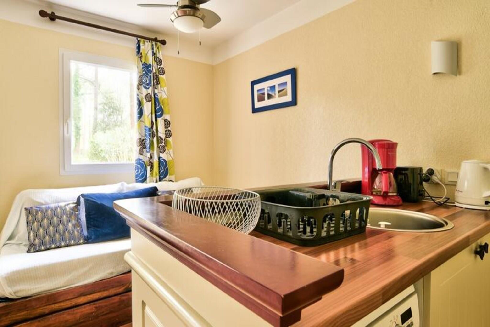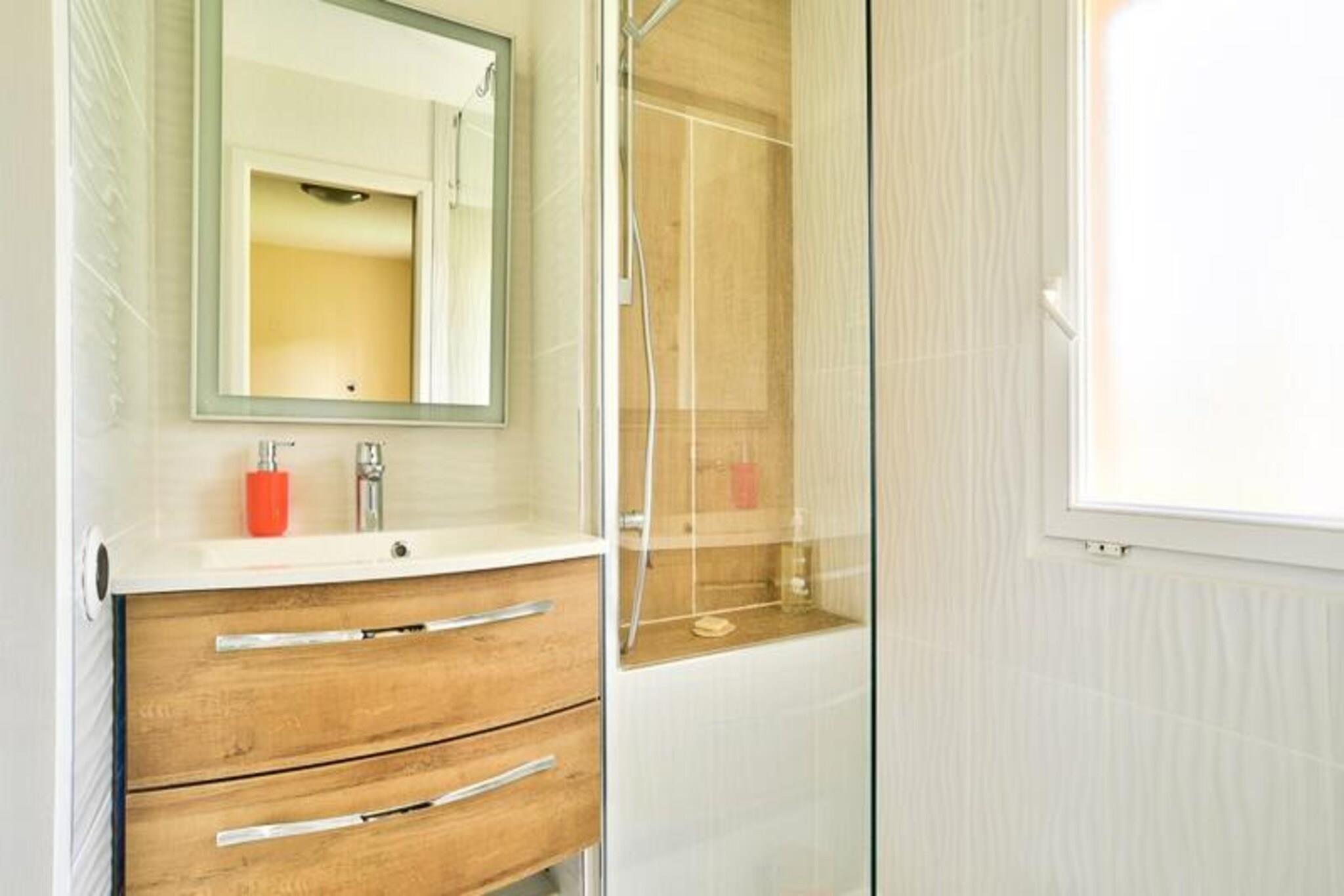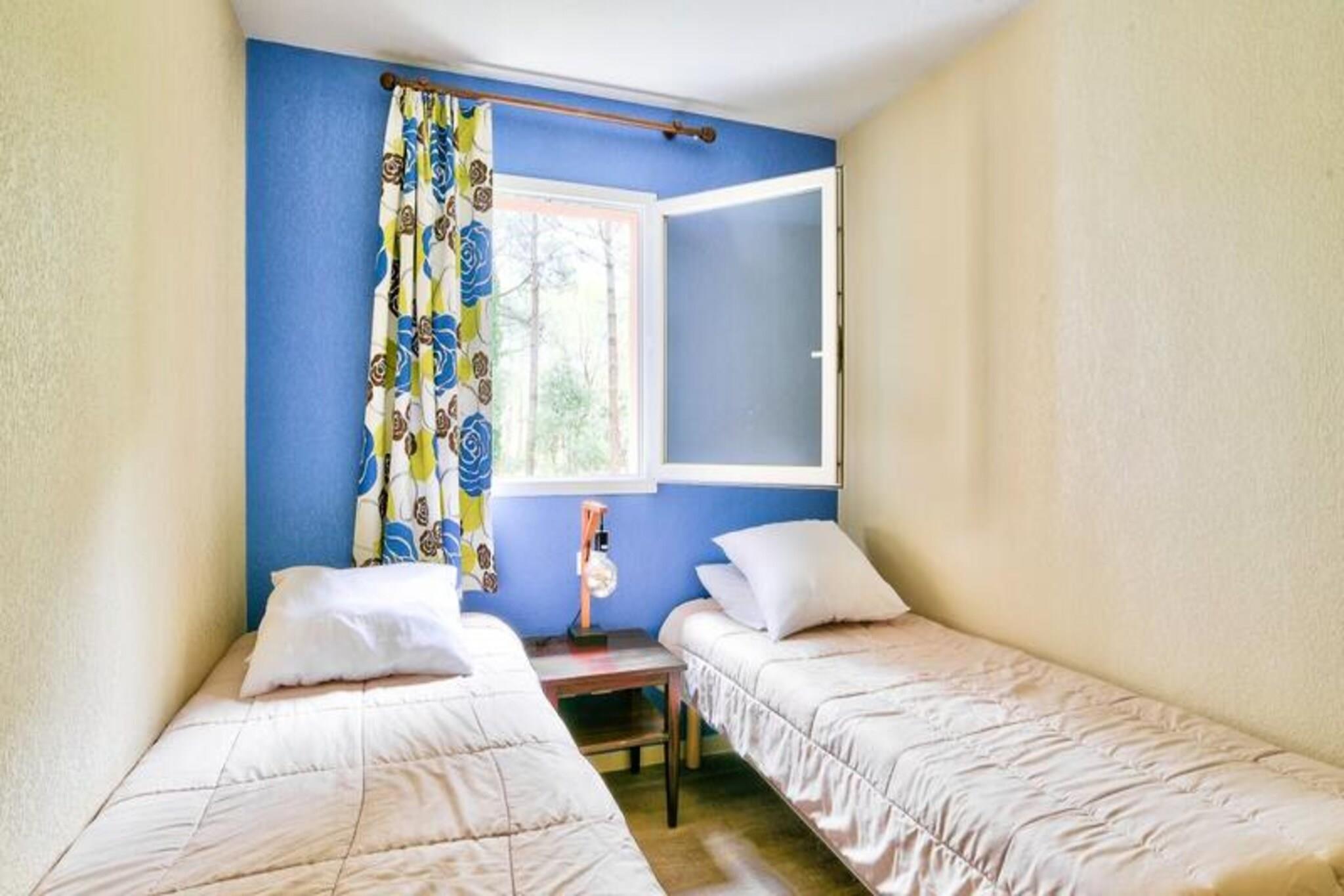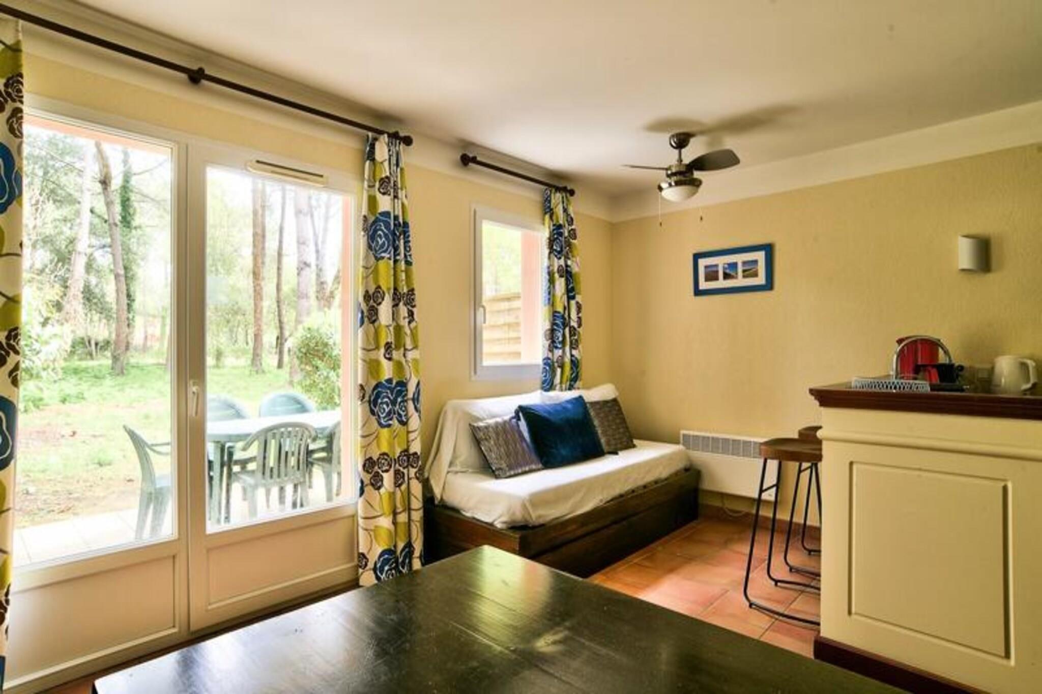 Dette hyggelige feriehus i Soustons tilbyder to soveværelser - det ene med en dobbeltseng og det andet med to enkeltsenge - med plads til op til seks personer. Det har en komfortabel stue med en sovesofa, en spiseplads og en terrasse med have. Boligen inkluderer gratis parkering og adgang til en opvarmet udendørs swimmingpool, ideel til afslapning. Kæledyr er ikke angivet som tilladte. Ejendommen er ideelt beliggende tæt på stranden og Etangs marinesø, som tilbyder nem adgang til forskellige aktiviteter såsom cykling, vandreture og en eventyrpark. Cykelstier er i nærheden, og lokale markeder og stranden er kun en kort køretur væk. Boligen er perfekt for naturelskere, der ønsker at nyde udendørs aktiviteter i smukke, fredelige omgivelser. Hjemmet omfatter et fuldt udstyret køkken i amerikansk stil, et funktionelt badeværelse med bruser og separat toilet samt moderne bekvemmeligheder som mikroovn, køleskab og Wi-Fi (ekstra gebyr). Nyd det solrige vejr på terrassen, haven eller ved den opvarmede pool, hvilket gør dette feriehus til en behagelig base for din ferie.