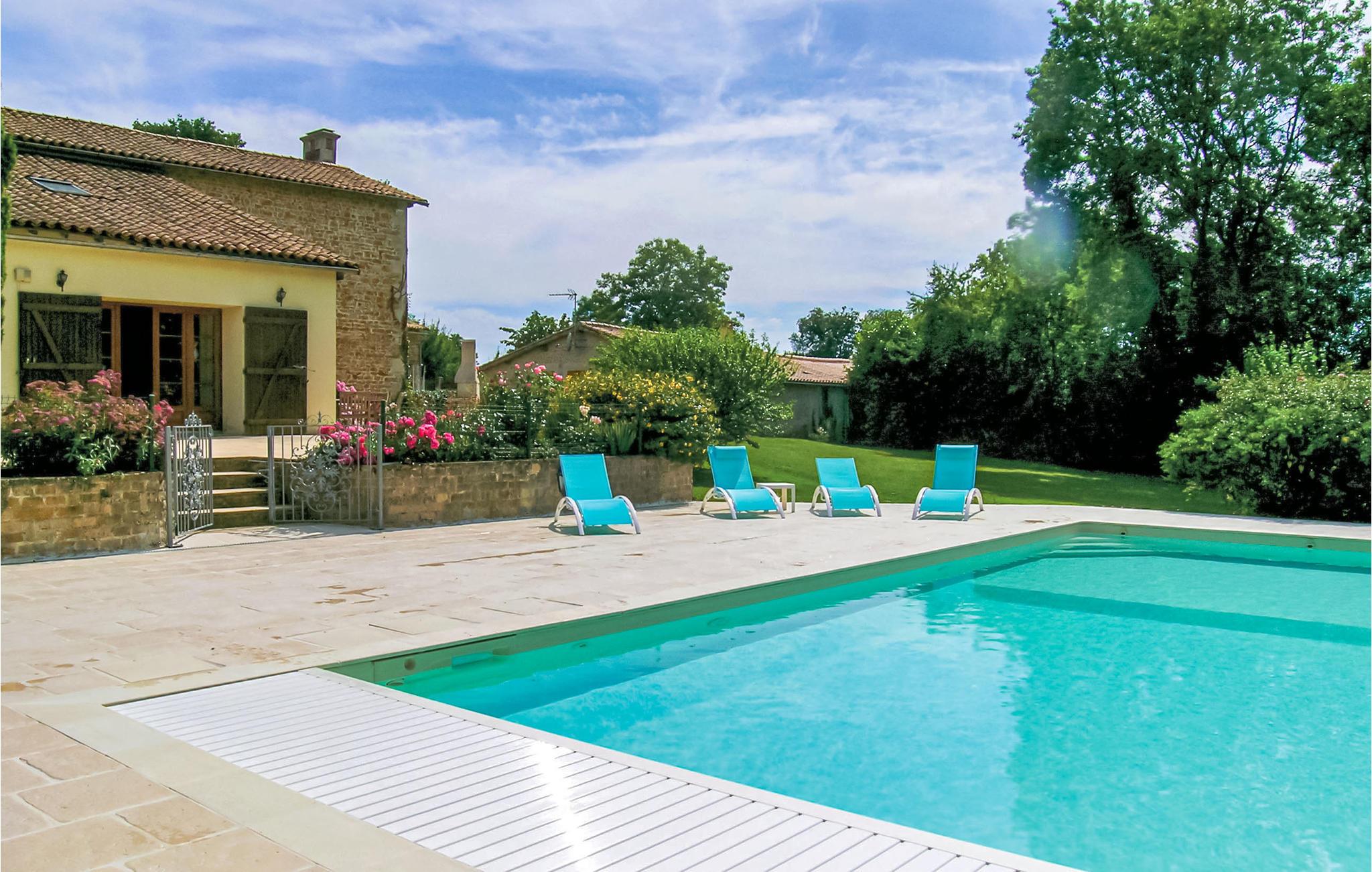 Ved den indhegnede pool er der brusebad med varmt og koldt vand. Haven er gammel og helt ideel for børn. Huset har virkelig alt det i behøver!