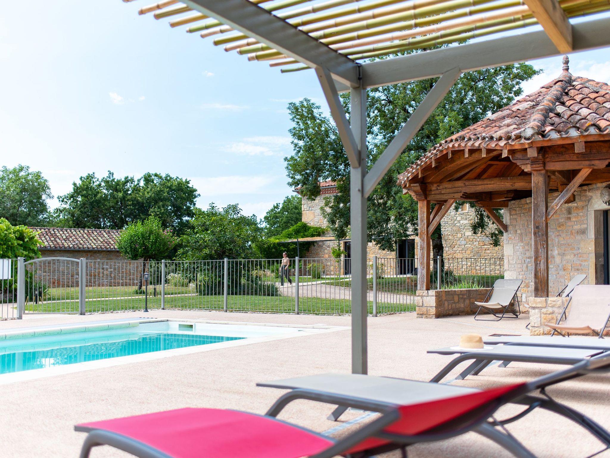 The hamlet, made up of stone buildings, is distributed around a superb secure swimming pool with a large deck (for sunbeds and sun loungers) and a pergola for natural shade.