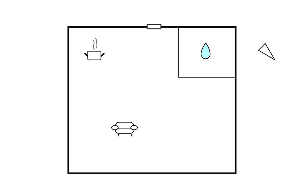 Opholdsstue 12m2 - 2 Sovepladser. (Dobbeltseng(e)).