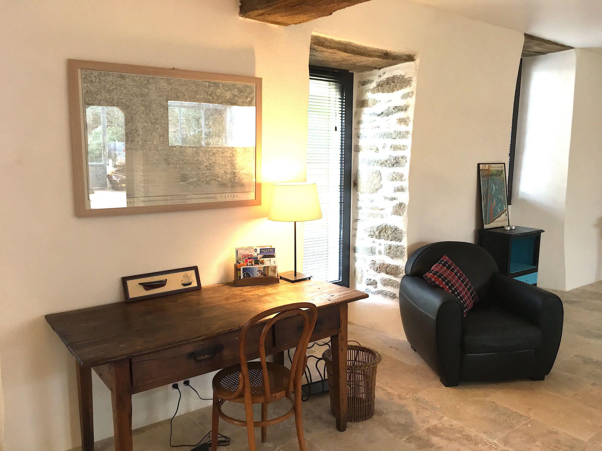 An authentic longère dating from 1776, this fully renovated family home is located near the Goh Velin beach and the centre of the typical village of Saint Gildas de Rhuys, on the Rhuys peninsula, between the Gulf of Morbihan and the Atlantic Ocean. You'll be charmed by its old stonework, thick walls and masterly beams. Coastal paths, cycle track in front of the house.150m2, ground and first floors, 4 bedrooms - 2 bathrooms, sleeps 10. More info, rates and availability on our website: keraudren-rhuys.enThe accommodationKeraudren-Rhuys, our 150 m2 family farmhouse has 4 large bedrooms (including 1 on the ground floor), 2 bathrooms, a very large 66 m2 living room on the ground floor with wood-burning stove, fitted kitchen, dining area and lounge area, a 15 m2 veranda opening onto the 300 m2 fully enclosed garden.Completely restored in 2016 with great care and decorated with attention to detail, our farmhouse is fully equipped. The enclosed garden of around 300 m2, where you can have a barbecue, is a haven of peace with its apple trees, hazel trees and hydrangea beds.Ground floor: - a large living area of 66 m2 with sitting area (sofas, armchairs, wood-burning stove, LED TV), study, fully-equipped kitchen (dishwasher, gas hob, oven, microwave, coffee maker, kettle, etc.), dining area with large table for 10 people, - a bedroom (No. 1) with double bed and double sofa bed, a bathroom with shower and toilet, and a separate toilet.a bedroom (N°1) with a new 160x200 bed (Belle Literie label) opening directly onto the garden-a bathroom with large shower, WC, washing machine and tumble dryer-a 15 m2 veranda ideal for a moment of readingOn the first floor:-2 large bedrooms (N°2 and N°3) with new 160x200 bedding (Belle Literie label)-1 large bedroom (N°4 - "the dormitory") with new bedding: 1 140x190 bed and 2 90x190 beds.-Bathroom with bath and WCBarbecue, large garden table with 10 chairs. Garden loungers. 1 cot also available.A haven of peace by the ocean! Only the birds and the sound of the waves in the distance will wake you up in the morning...