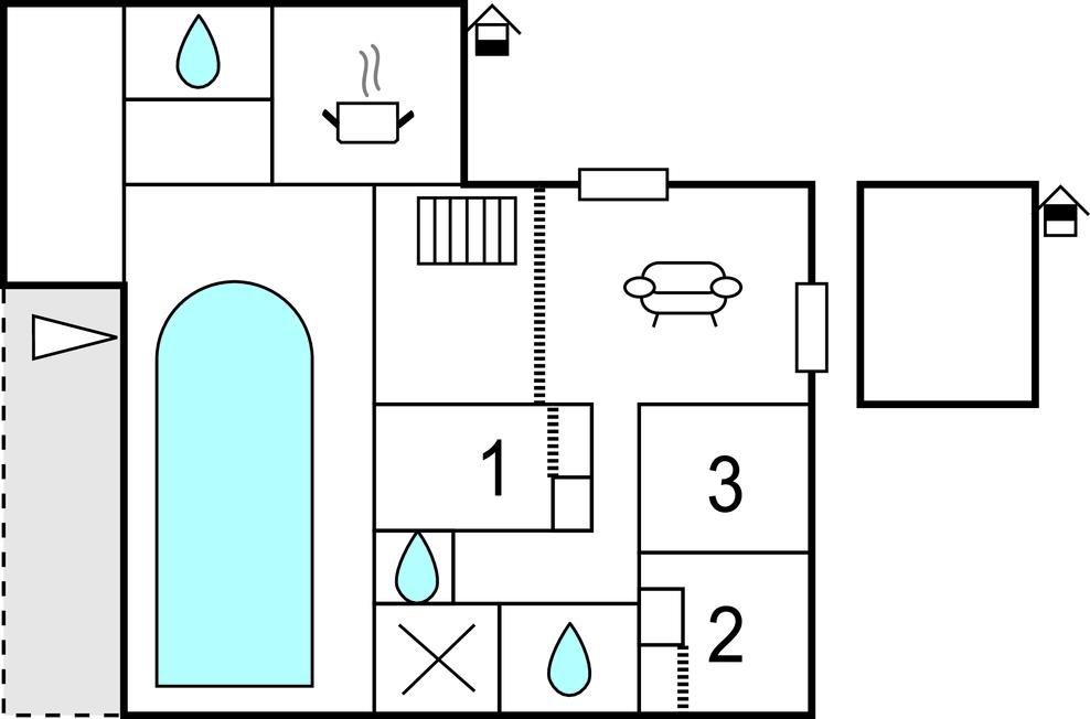 Badeværelse (nr. 1) - Varmt og koldt vand. Bruser og badekar