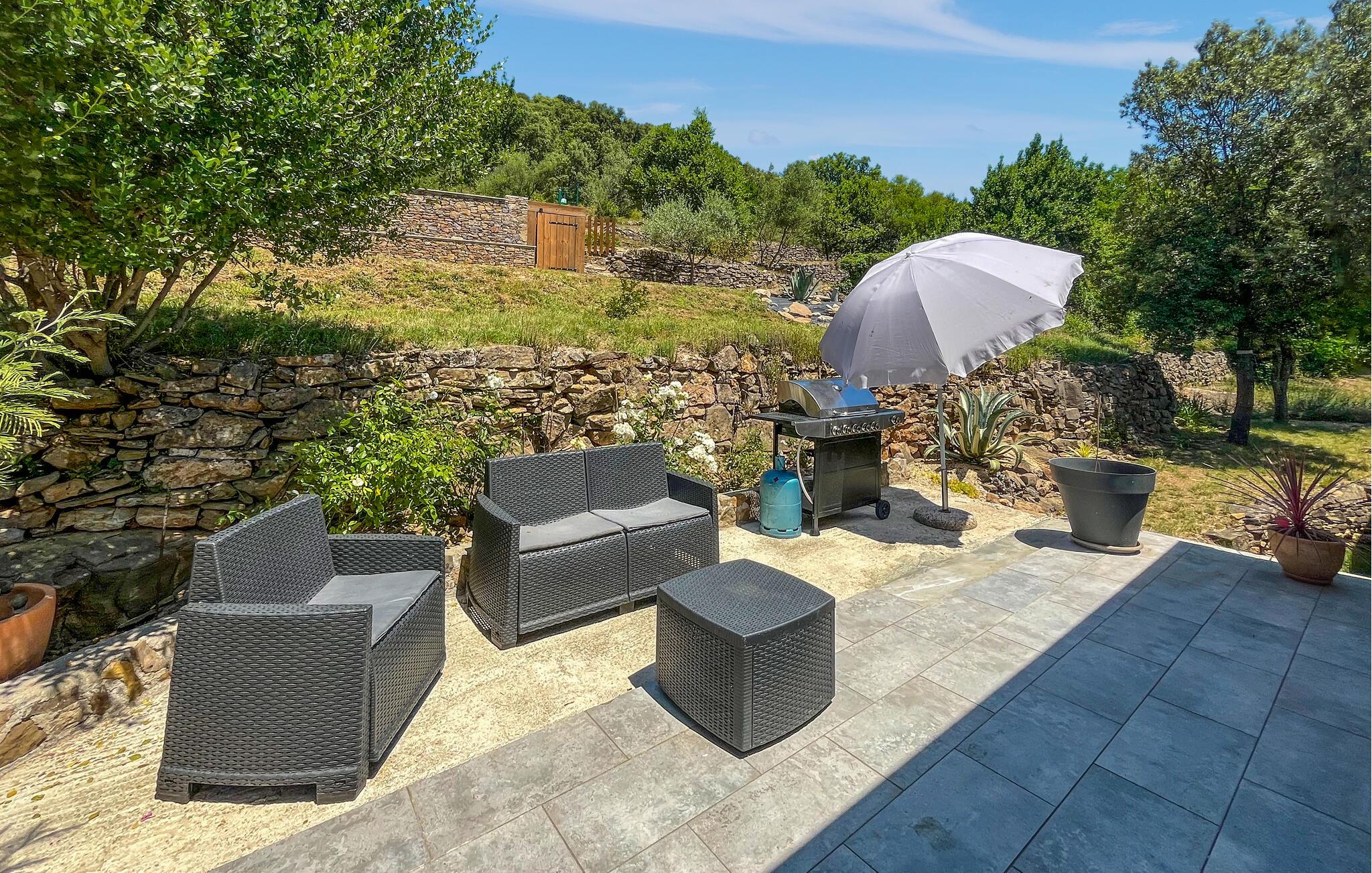 I den afsidesliggende pool kan I svømme baner og lade blikket vandre over de grønne bakker. Slap af på behagelige liggestole og nyd jeres tid sammen med stemningsfulde grillmiddage under stjernerne.