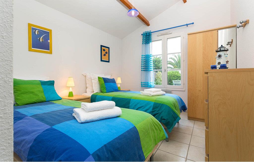 Huset ligger i en feriepark i udkanten af en skov tæt på Atlanterhavskysten i et sikkert kompleks med flere villaer. I får alt, hvad I har brug for her. Indretningen fremtræder både lyst og hjemligt og skaber en oase af fred, hvor I kan hvile stængerne efter en aktiv feriedag. Husene er enten indrettet over én eller to etager, og antallet af dobbeltsenge og enkeltsenge kan variere. Afhængig af tilgængelighed vil villaerne så vidt muligt blive tildelt efter gæsternes individuelle ønsker og behov. Standarden på indretningen er den samme i alle boliger.