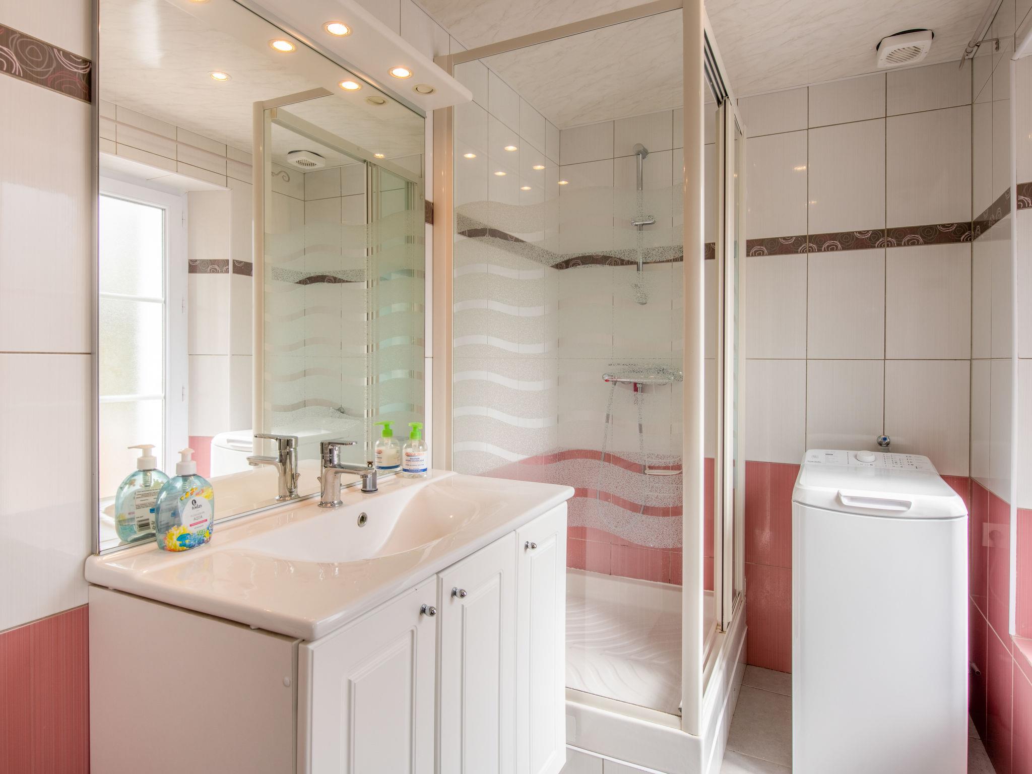 "Le Champ des Mouettes", 3-room house 75 m2 on 2 levels. Cosy furnishings: kitchen-/living room (oven, dishwasher, 4 induction hot plates, toaster, kettle, microwave, freezer, electric coffee machine) with dining table and satellite TV. Shower, sep. WC. Upper floor: 1 room with sloping ceilings with 1 french bed. 1 room with sloping ceilings with 2 beds. Electric heating. Parquet floors. Terrace furniture. Facilities: washing machine. Please note: non-smoking house.