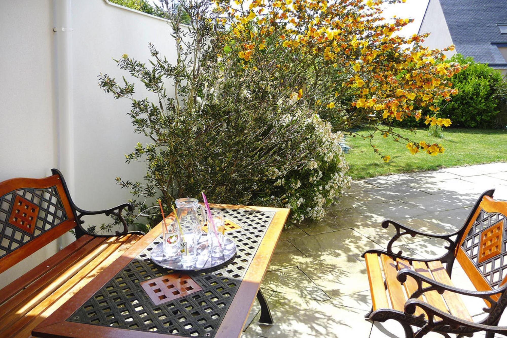 Komfortabelt indrettet feriehus, kun 400 m fra stranden, højt beliggende midt på en stor, lukket ejendom på den maleriske halvø Rhuys. Den rummelige terrasse ligger til solsiden og lover hyggelige grillaftener. Det andet lille køkken, som byder på god plads til at tilberede muslinger eller andre lækre skaldyr, som du selv har samlet, er særdeles praktisk. Gamle toldruter ved bugten, lange kyststier ved Atlanterhavet, smukke sandstrande, Suscinio-slottet i Sarzeau og klosterkirken fra det 11. århundrede i St. Gildas-de-Rhuys gør halvøen de Rhuys til et populært feriemål. Dets mikroklima, den oprindelige natur med fuglereservater og den maleriske Morbihan-bugt tiltrækker også mange besøgende uden for sommersæsonen. På de 3 tilgængelige cykler kan du udforske det omkringliggende kystområde.