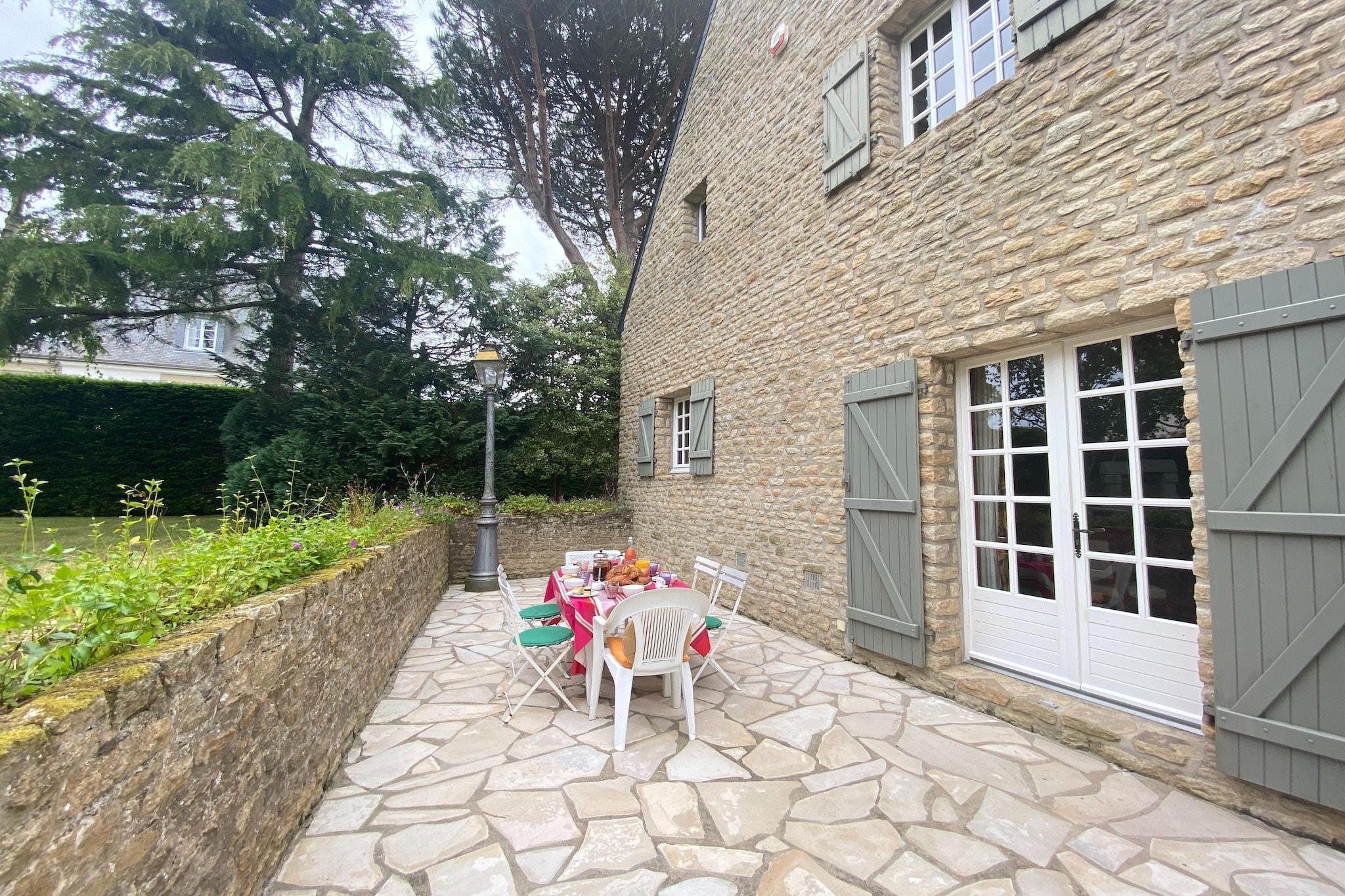 Dette stenhus med autentisk bretonsk charme ligger i et fredeligt boligområde i Saint-Malo, en pulserende by med god togforbindelse. Huset kombinerer gammeldags karakter med moderne bekvemmeligheder og tilbyder en rummelig, smagfuldt indrettet opholdsstue, et fuldt udstyret køkken og badeværelser samt en stor lukket have, der er perfekt til afslapning eller deling af måltider under åben himmel. Garagen har plads til to store biler og flere cykler, og der er yderligere parkeringspladser i den rolige blindgyde. Kun en kort gåtur (1,5 km) tilbyder Rosais-stranden og Briantais-parken en enestående natur med udsigt over Dinard. Huset ligger ideelt placeret og giver også nem adgang til Kanaløerne Jersey og Guernsey via færger fra havnen i Saint-Malo.