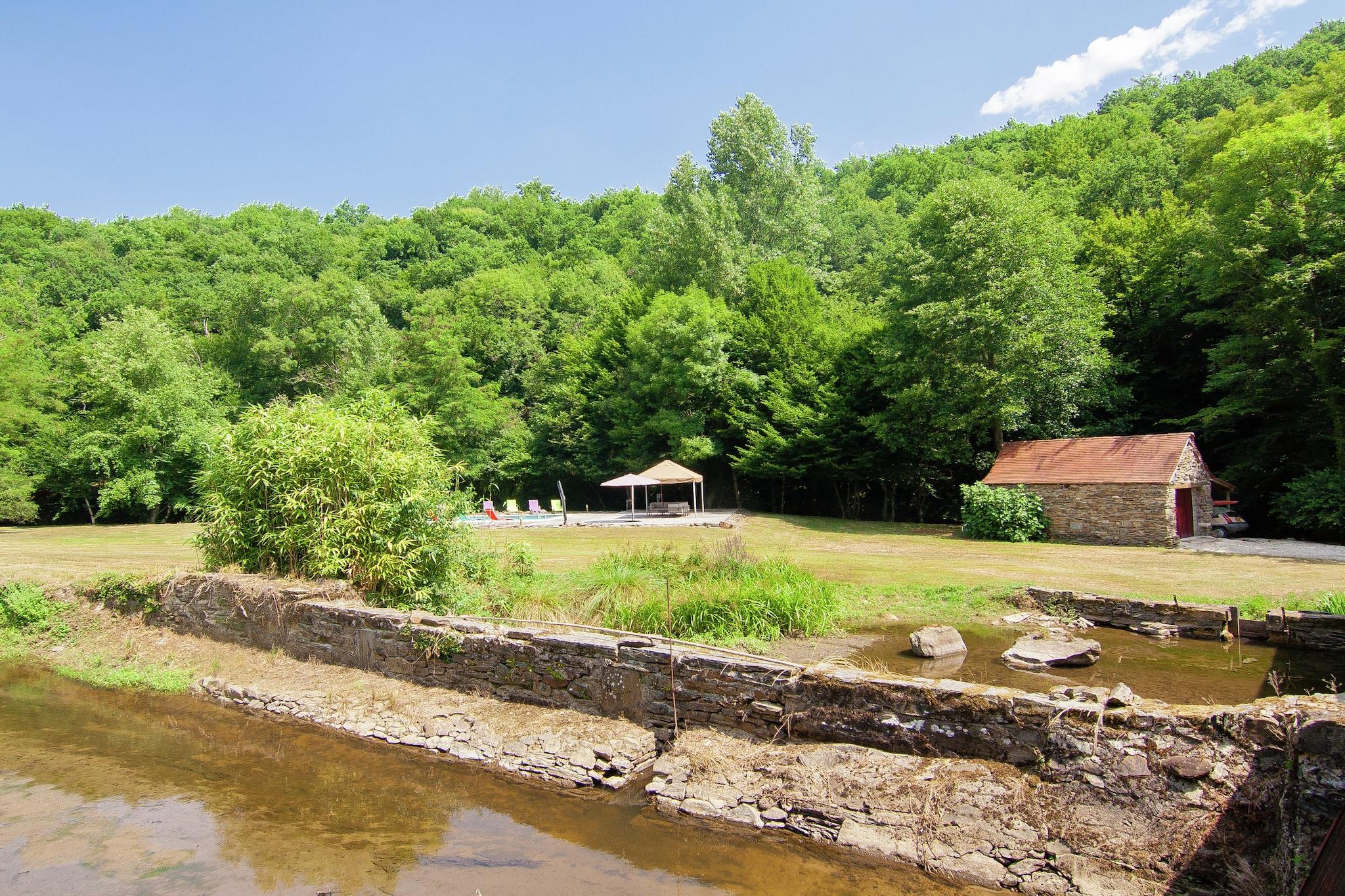 Feriehus nær flod med pool