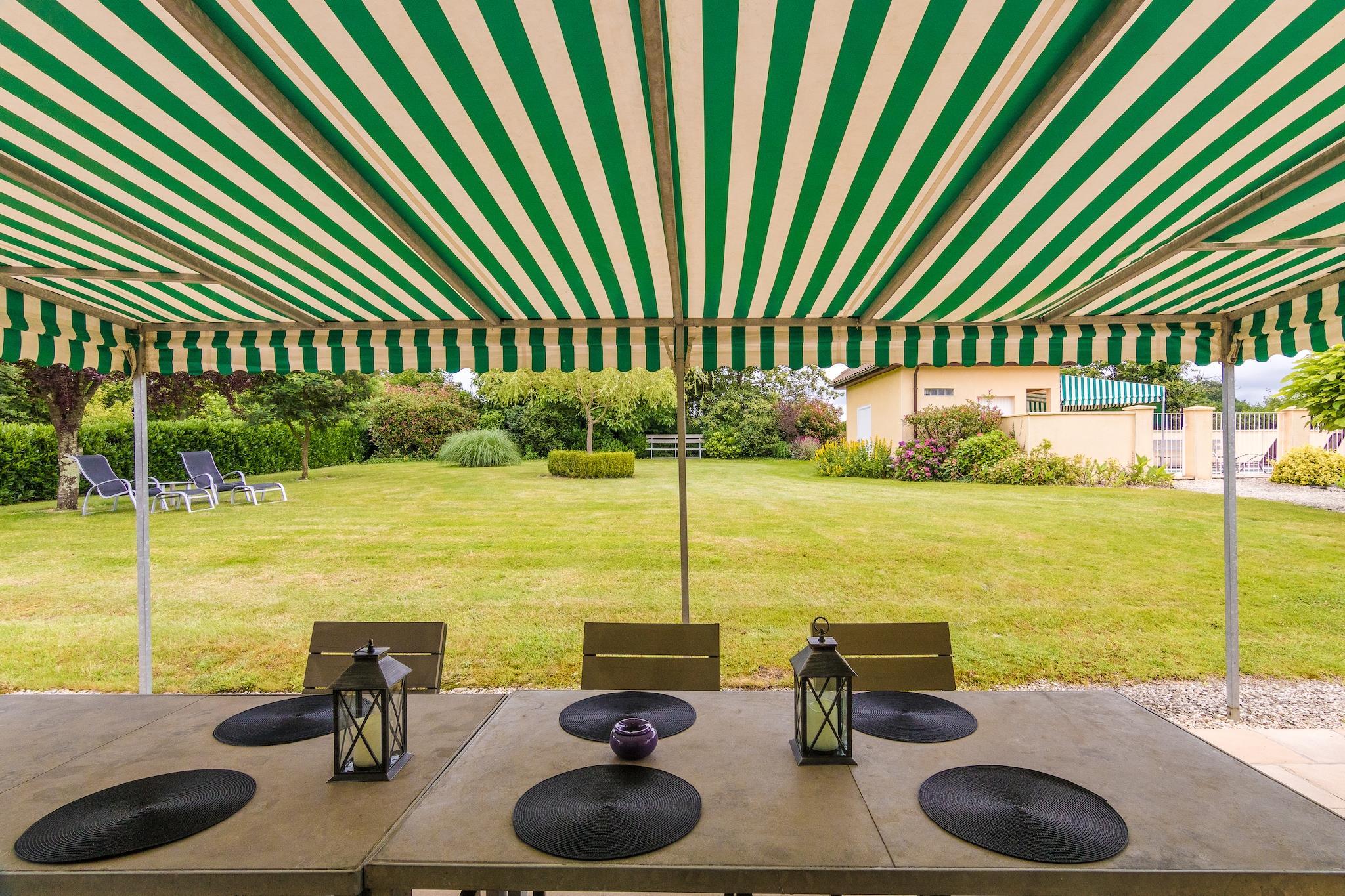 Dette moderne, komfortable feriehus til 4 personer ligger på 5000 kvadratmeter sammen med et større hus til 11 personer. Sammen med dette andet hus deler du swimmingpoolen og den meget rummelige smukt anlagte have. Men alt er placeret på en sådan måde, at du ikke træder på hinandens tæer. Huset har 2 soveværelser med eget badeværelse og en rummelig stue med åbent køkken. Fra huset kan du se det berømte Monbazillac slot, hvor den lækre søde dessertvin er lavet. Centrum af den historiske by Bergerac ligger 7 km væk. Byen ligger på Dordogne-floden. Området omkring Bergerac domineres af vinavl. I øst for Bergerac er Pécharmant (15 km), en vinregion, hvor der kommer solgul rødvin, mens sydlige Montbazillac (10 km) producerer søde hvide vine og dessertvine. I området kan du nyde daglige markeder, gode restauranter , sportsaktiviteter, museer osv.