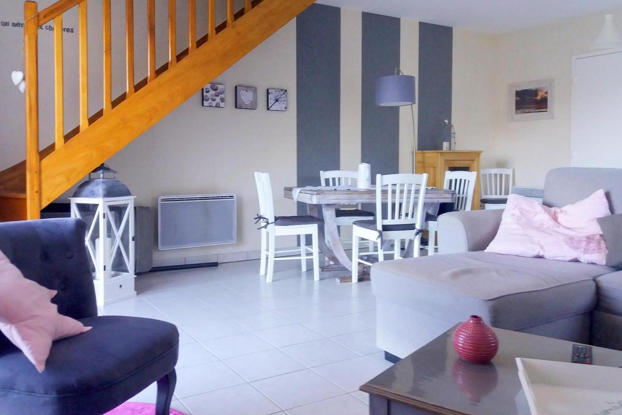 Smagfuldt indrettet dobbelthus i et velholdt og sikkert boligkompleks, kun 500 m fra den smukke strand i den populære badeby St. Quay-Portrieux. Familier er velkomne her, og børnene kan finde legekammerater i nabohuset. Fra den lille private terrasse har du en smuk udsigt til havet. Vandreruten GR34 løber lige forbi boligkomplekset. En yderligere fordel, især i højsæsonen, er den private parkering i boligområdet. Den første af de syv strande i St. Quay-Portrieux kan nås på få minutter til fods. Smalle gader, typiske gamle huse – til fods eller på cykel kan du udforske St. Quay-Portrieux og lede efter spor fra byens maritime fortid. St Quay Port d'Armor er en typisk fisker- og lystbådehavn. Aktiviteter i nærheden: Oprindeligt var St Quay-Portrieux mest kendt for sin travle fiskerihavn. Talrige fiskerbåde sejler hver dag ud for at fange de lækre kammuslinger. I landsbyen kan du lære alt om kammuslingerne, fra deres oprindelse til det færdige produkt, som du kan nyde i en af de mange restauranter.