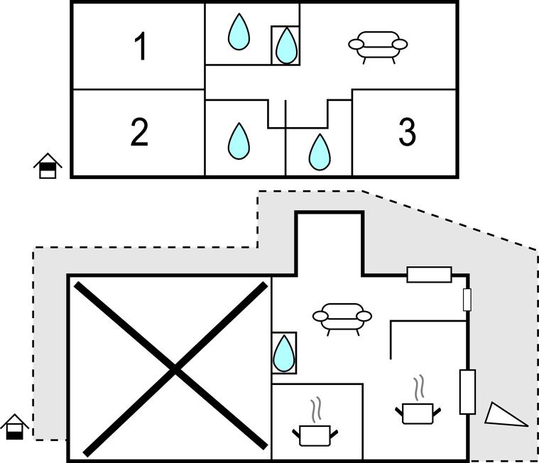 Badeværelse (nr. 3) - Varmt og koldt vand. Bruser