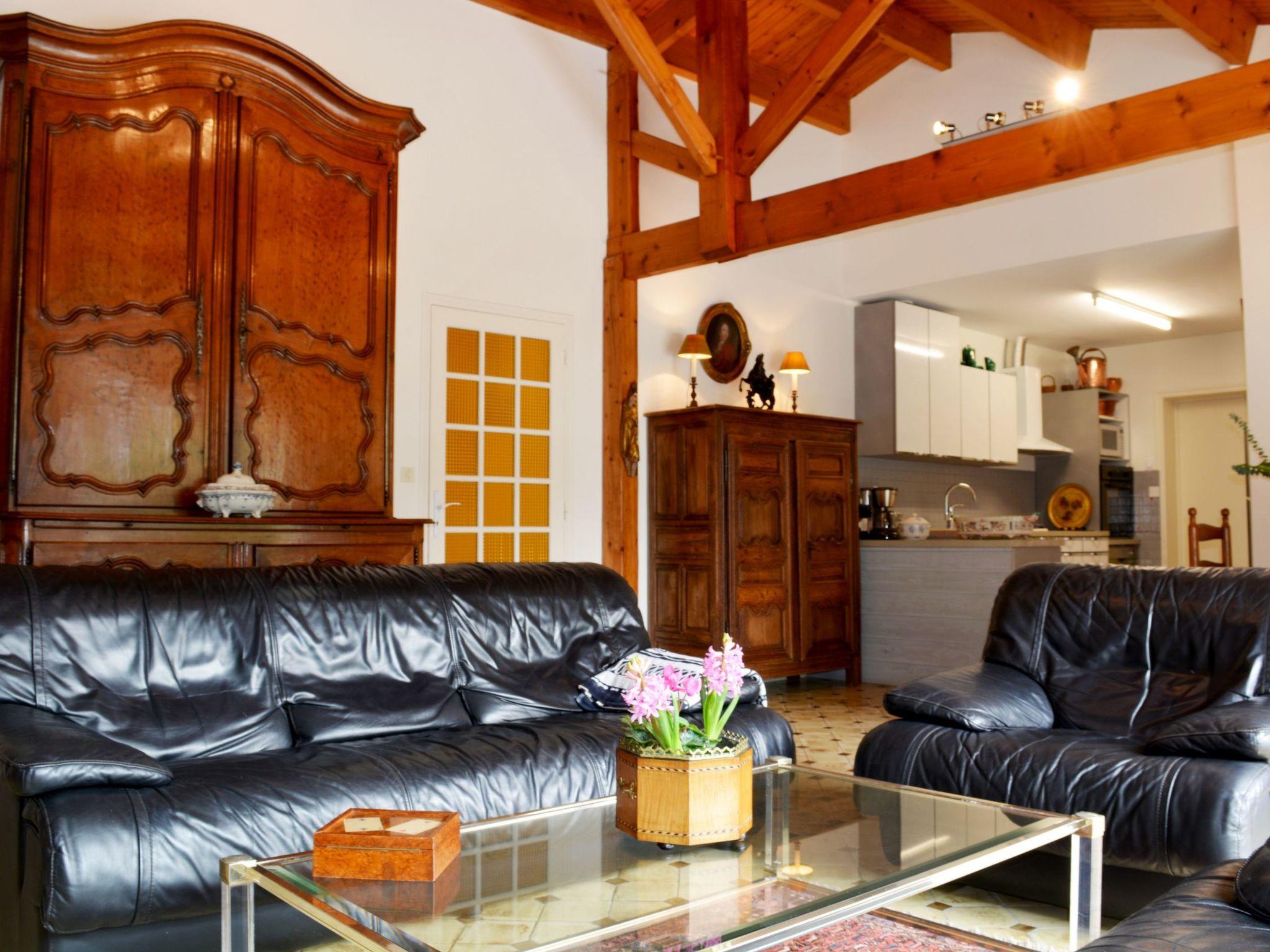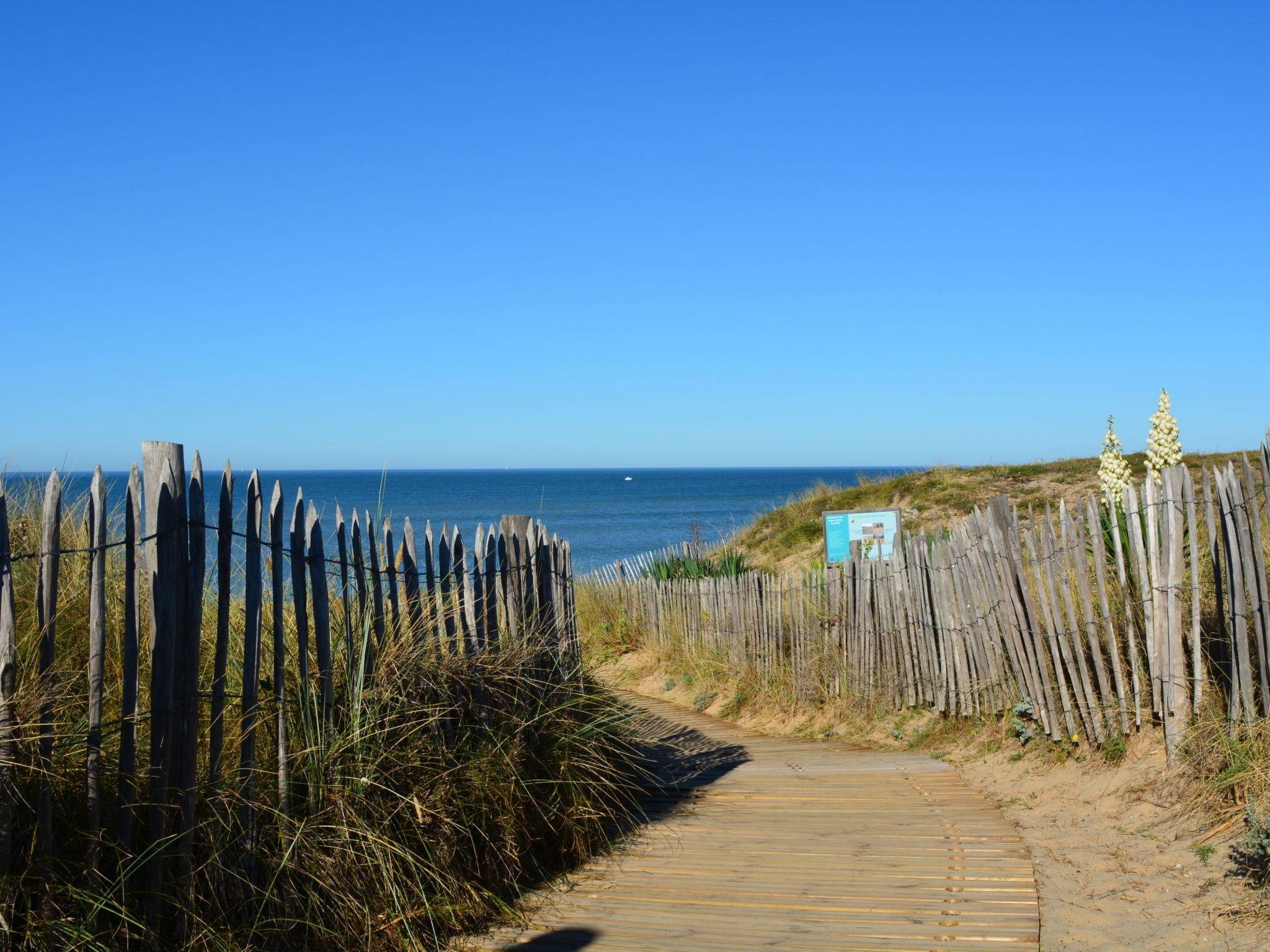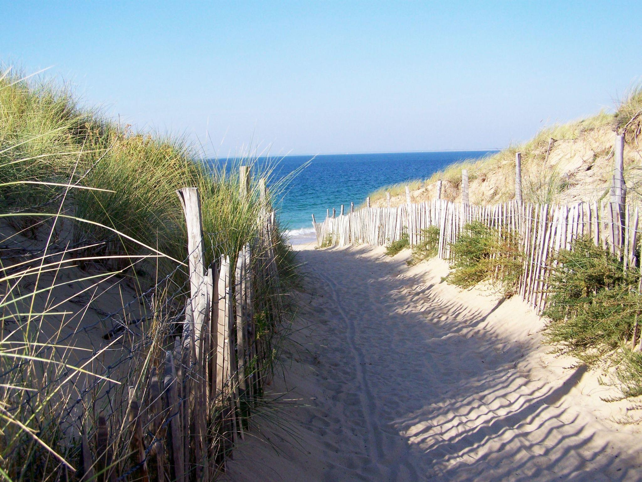 A charming T6 house (130m² living area) for rent on the beach at Les Grenettes. This large property enjoys an exceptional location: protected site, private access, dunes and beach 30 metres away! South-facing, overlooking 900m² of parkland, planted with trees and flowers, enclosed by mature trees with direct access to the path leading to the beach! Large terrace with electric awning, garden furniture and large barbecue. Front access in a quiet cul-de-sac, garden with trees and flowers. Possibility of parking (not private) and private parking for several vehicles in the grounds. Living area: this large 60m² room includes a lounge area (two convertible sofas, LCD TV, DTT decoder, DVD player, fireplace, etc.), a dining area and a kitchen area (large fridge-freezer, dishwasher, ceramic hob, electric oven, microwave, Nespresso, etc.). Antique furniture. The utility room houses a washing machine, electric condensation dryer and cleaning equipment. Two picture windows provide direct access to the south-facing terrace. On either side of the lounge, you will find 5 bedrooms: 4 with double beds (200x140cm), and 1 with 2 single beds (200x90cm). For the little ones, 3 cots are available. On the way back from the beach, you'll find 2 shower rooms, one of which is a very large Italian-style shower. 2 WCs are also available.