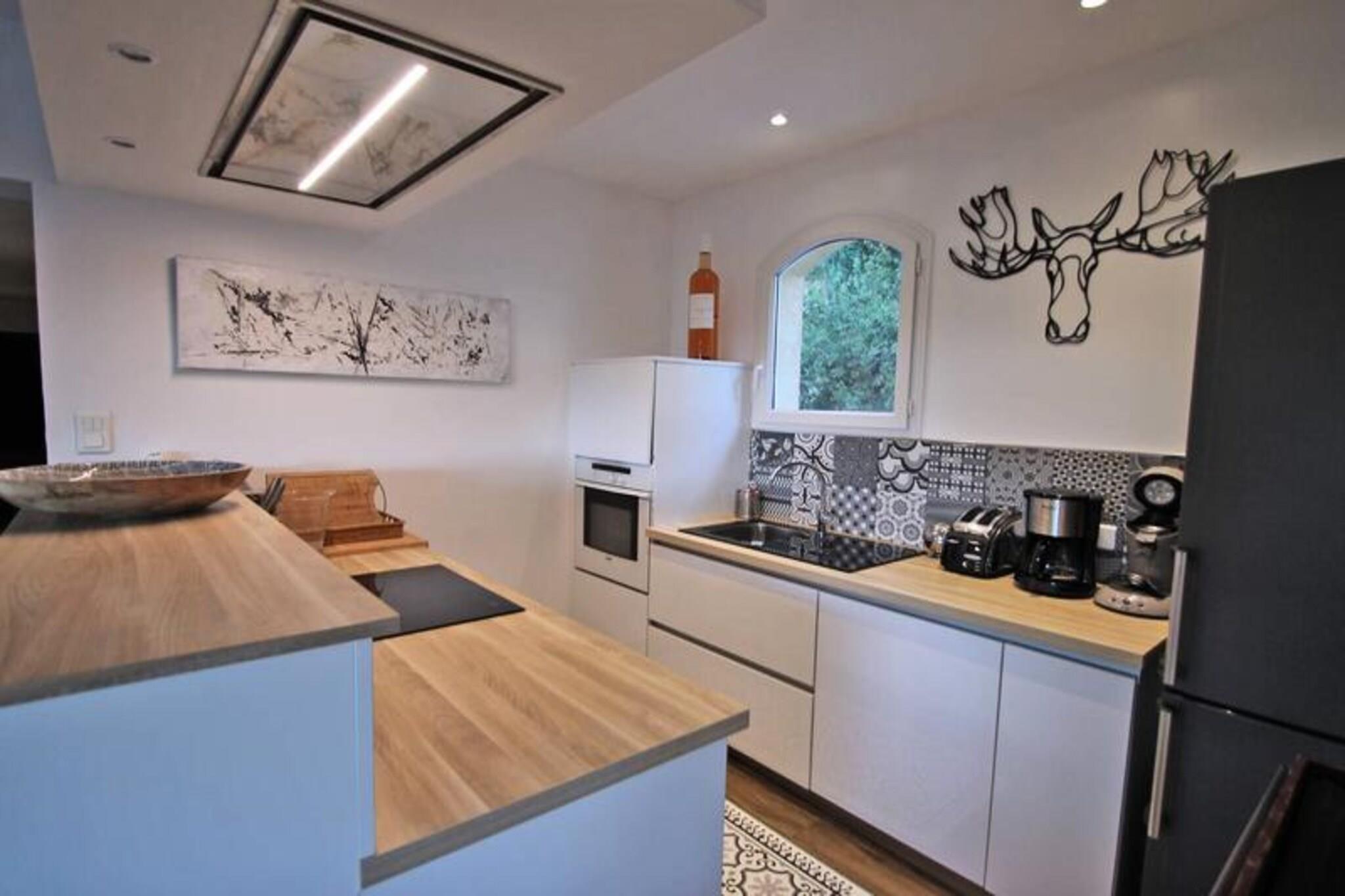 Denne rummelige villa med 4 soveværelser tilbyder et luksuriøst ophold for op til 8 personer, med chik og elegant indretning. Værelserne har aircondition, dobbeltsenge, tv og rigelig opbevaring. Villaen kan også prale af en lys opholdsstue med to sofaer, en stor tv-skærm, og en Bluetooth-højttaler, samt en spiseplads til 8. Det fuldt udstyrede amerikanske køkken indeholder moderne apparater såsom køleskab, fryser, ovn, mikroovn, og opvaskemaskine. Kæledyr er tilladt efter anmodning, og der er privat parkering med elektrisk port. Beliggende i et roligt beboelsesområde, er denne villa kun 2300 meter fra byens centrum, 1600 meter fra stranden og 1100 meter fra lokale butikker. Gæsterne kan nyde nærliggende attraktioner og restauranter, mens de fredelige omgivelser giver et ideelt tilflugtssted. Villaens middelhavshave byder på smukke udendørs rum, og der er forskellige siddepladser omkring swimmingpoolen til afslapning. Ejendommen indeholder et veludstyret køkken, to badeværelser med bruser og håndvaske samt et separat toilet. Den store overdækkede terrasse er perfekt til spisning med familie og venner, med en gasplancha. Den private swimmingpool, med valgfri opvarmning, er tilgængelig fra juni til september. Yderligere faciliteter inkluderer Wi-Fi, garage/vaskerum og aircondition i hele villaen.