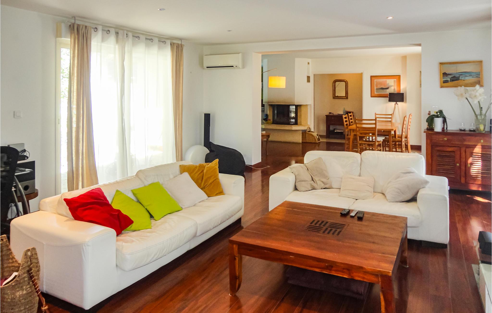 Glæd jer til en dejlig ferie i dette charmerende hus med familie eller venner. Huset er indrettet i varme farver og tilbyder 5 soveværelser, hvoraf 3 er indrettet med dobbeltsenge og 2 med en enkeltseng hver og kan rumme op til 8 personer. På køligere dage kan I hygge jer ved en knitrende ild i pejsen.