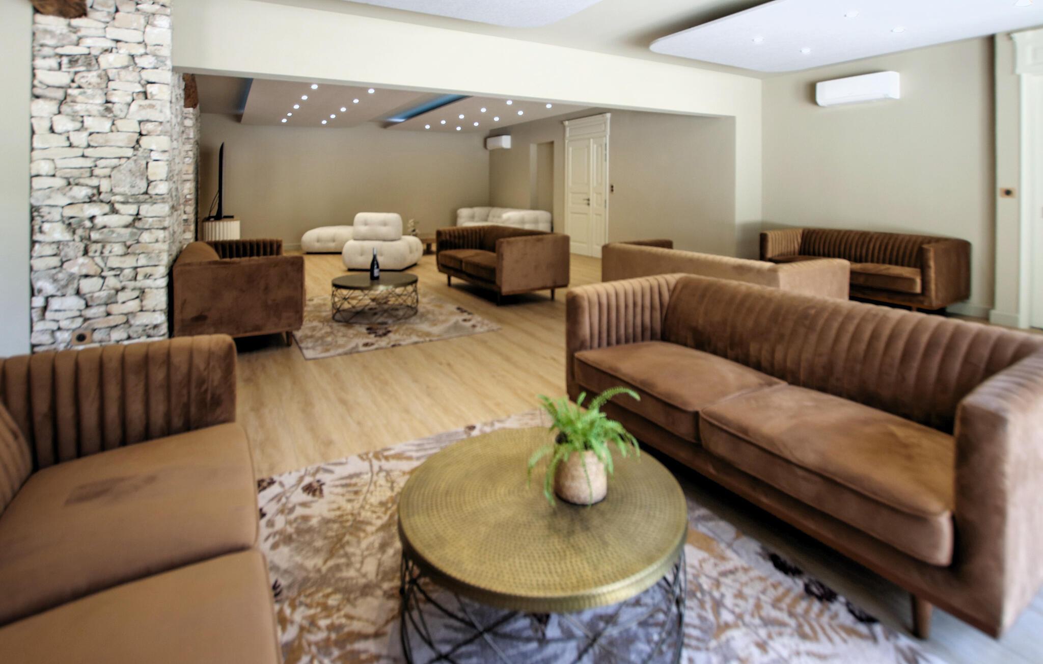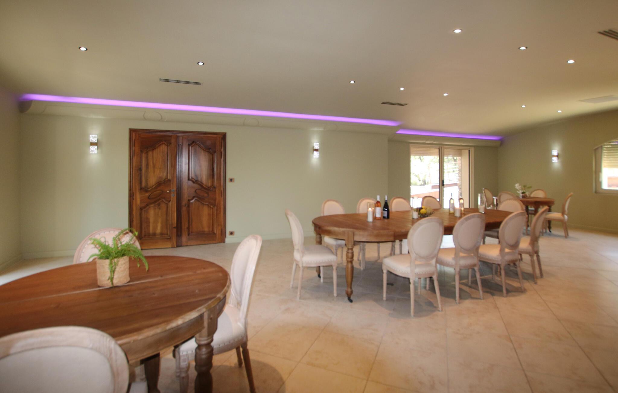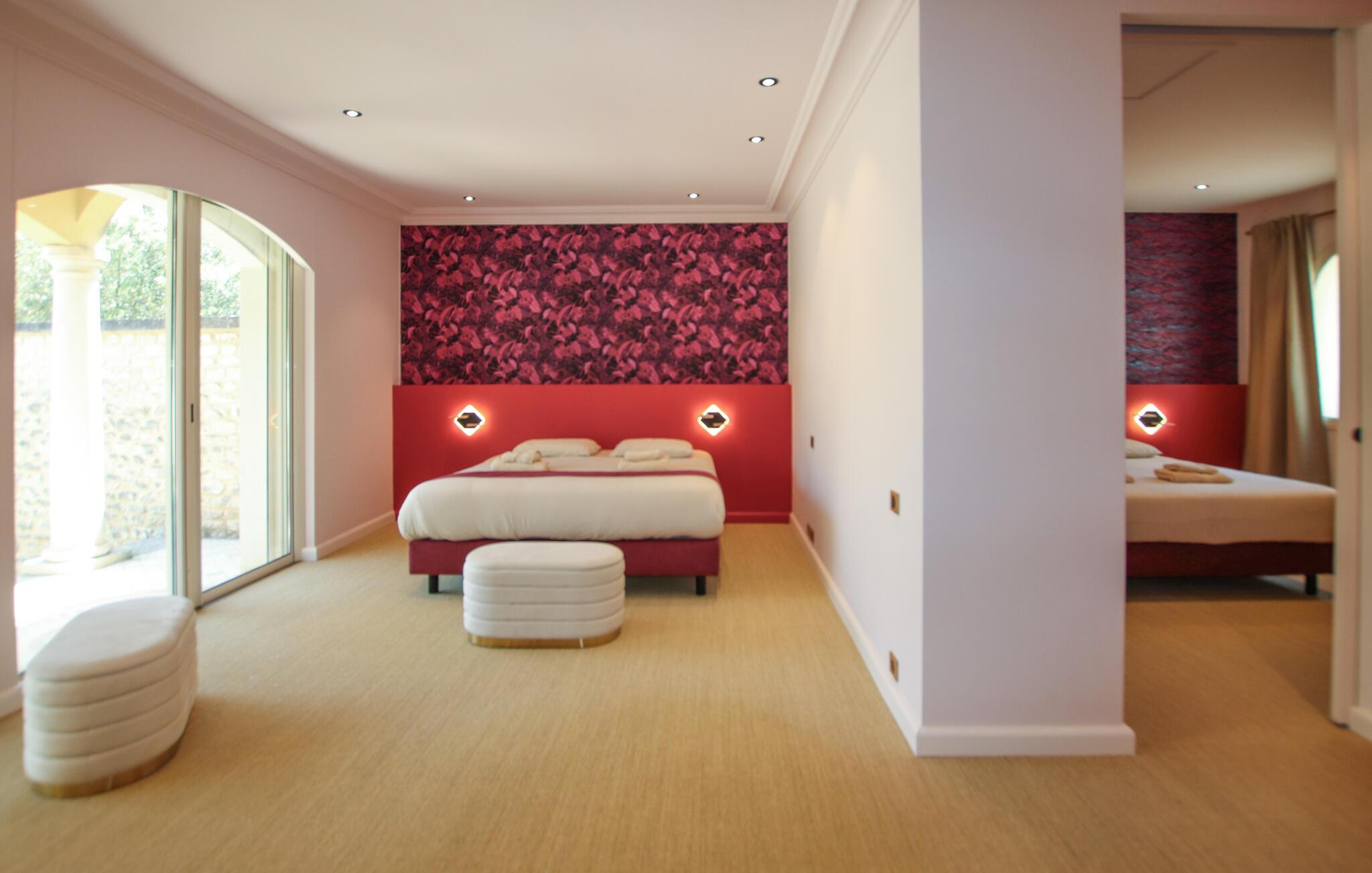 Denne luksuriøse og børnevenlige villa er omgivet af natur og tilbyder rigelig plads til længe ventede familiesammenkomster eller en dejlig ferie med vennerne. Her kan I trylle kulinariske lækkerier frem, nyde hyggelige måltider og slappe af med hyggelige filmaftener eller stimulerende samtaler i en stilfuld atmosfære med møbler af høj kvalitet og behagelig belysning.