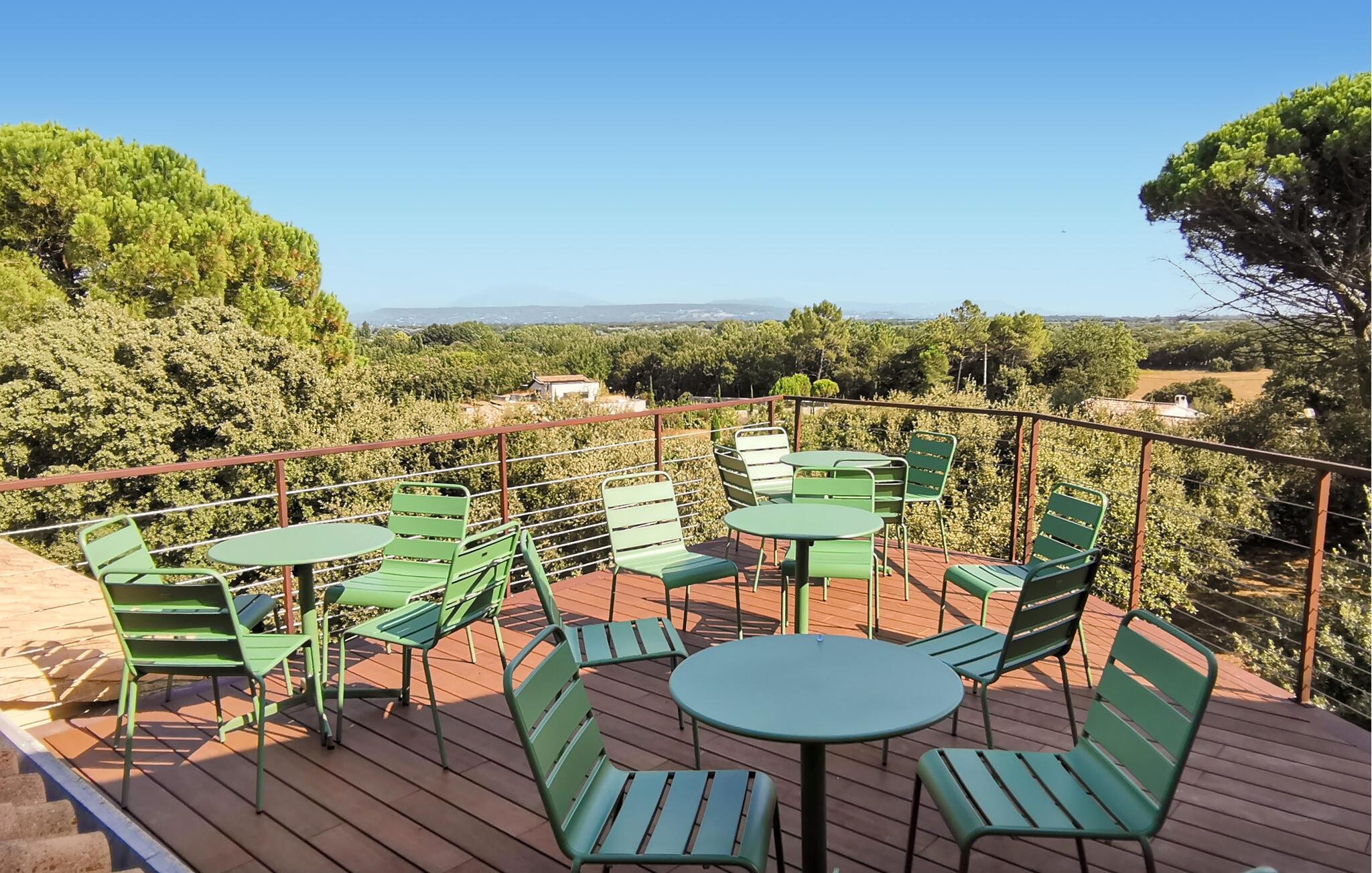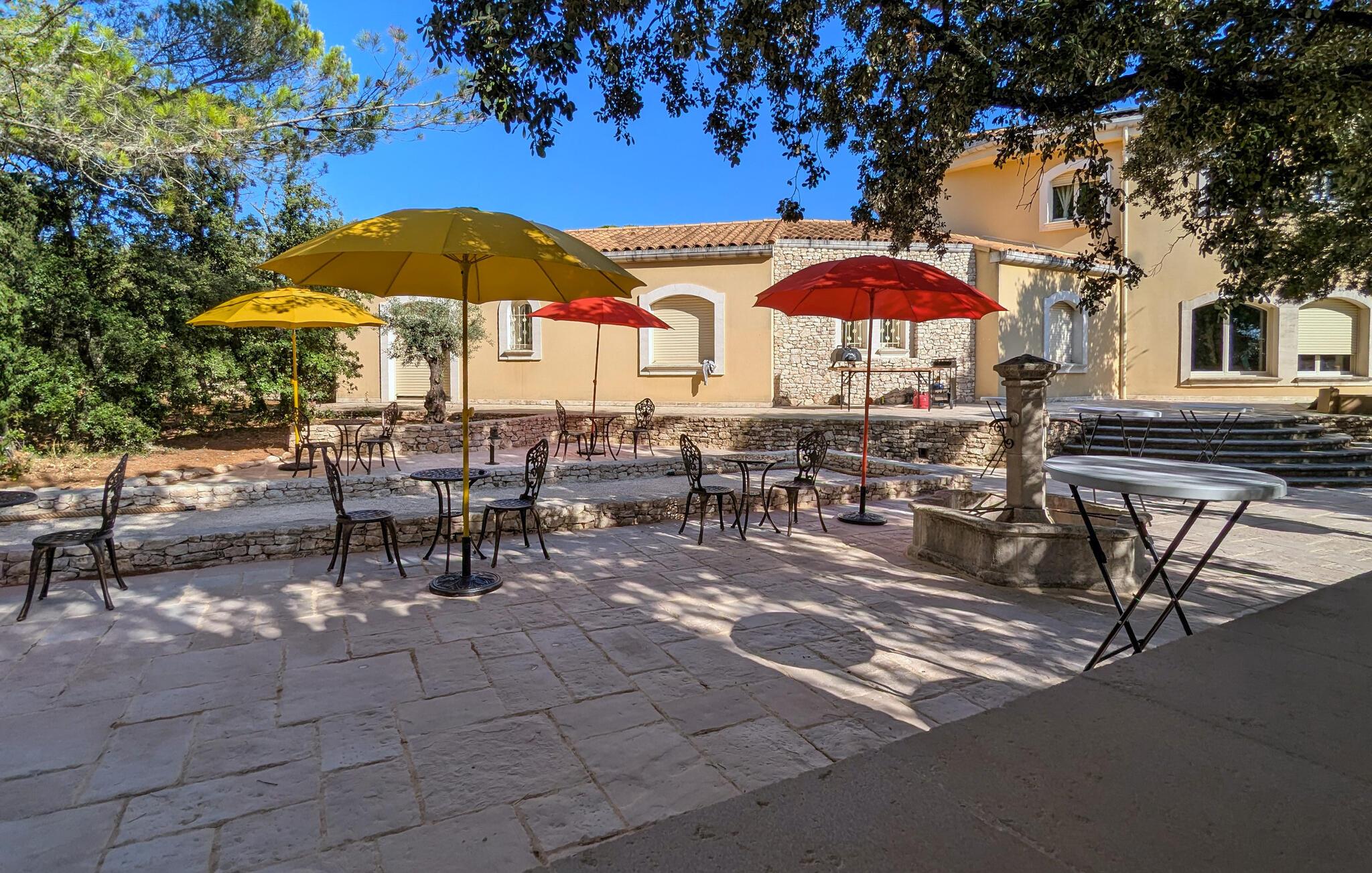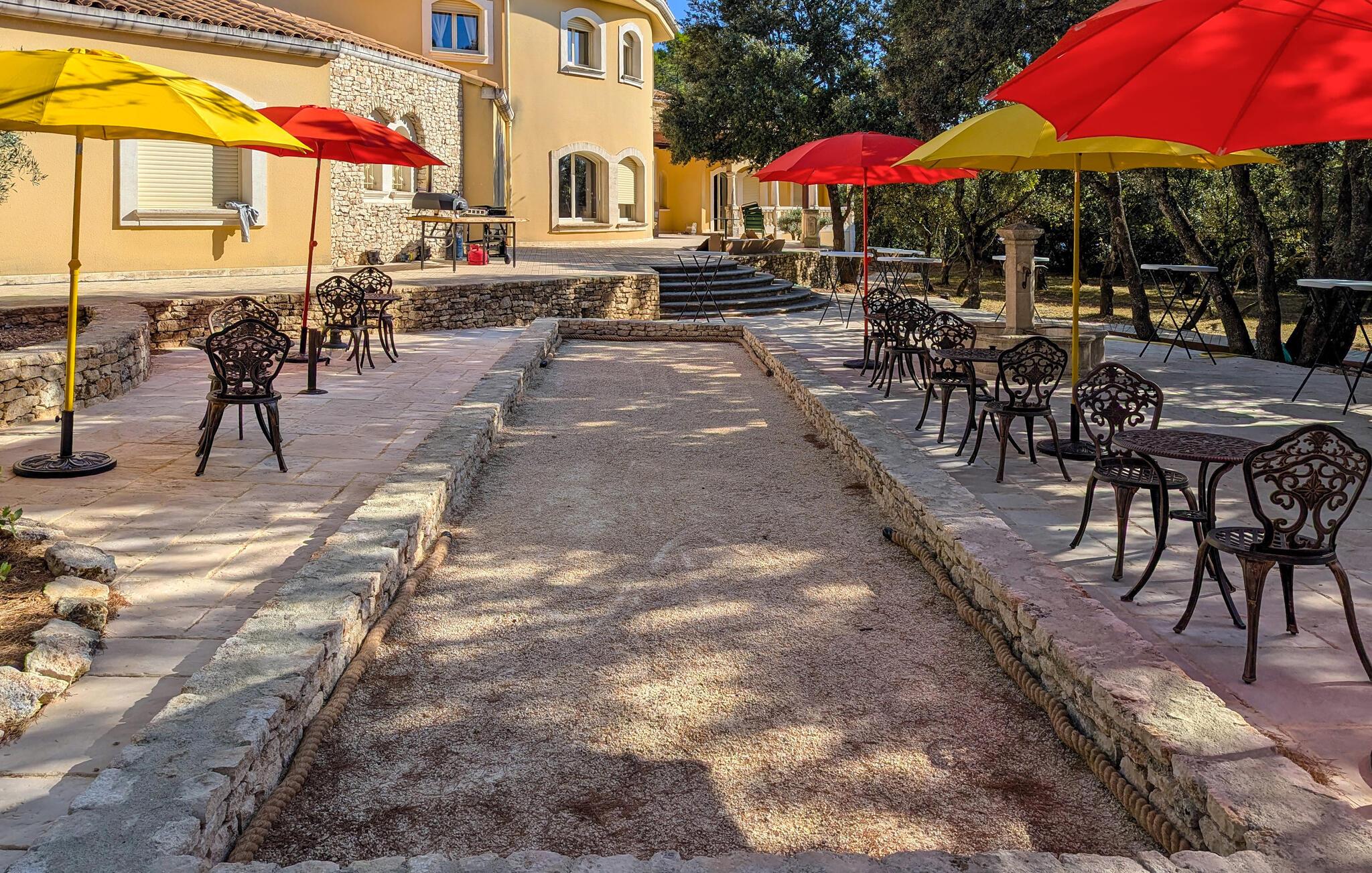 Udeområdet lader heller ikke noget tilbage at ønske. Snup en frisk dukkert i den afsidesliggende pool, lad udsigten feje over bakkerne, vinmarkerne og lavendelmarkerne fra den panoramiske terrasse, og server jer selv delikatesser på de forskellige skyggefulde træterrasser. Glæd jer til charmerende udendørsaktiviteter, vær vært for hyggelige grillmiddage eller havefester under stjernehimlen.