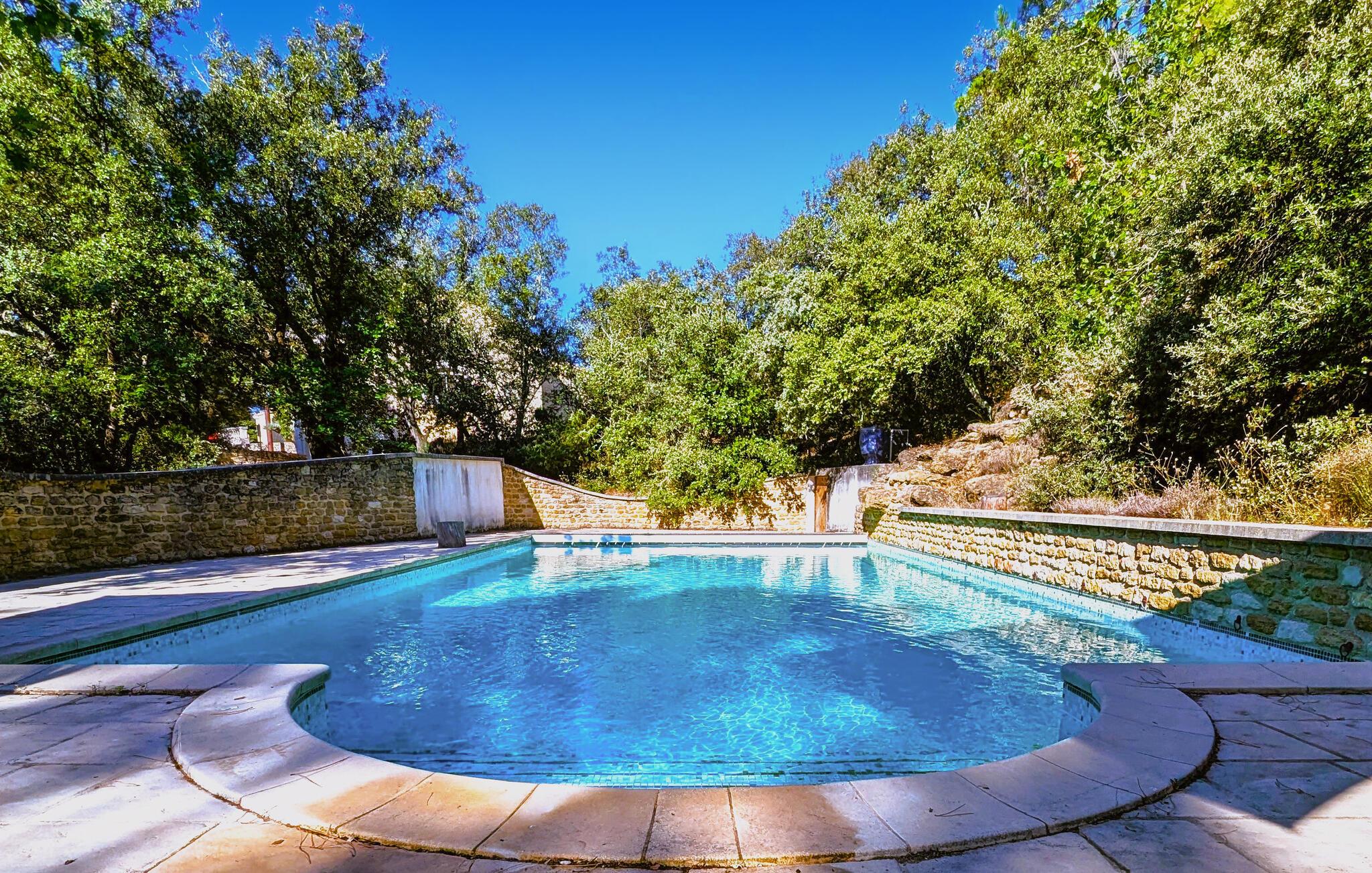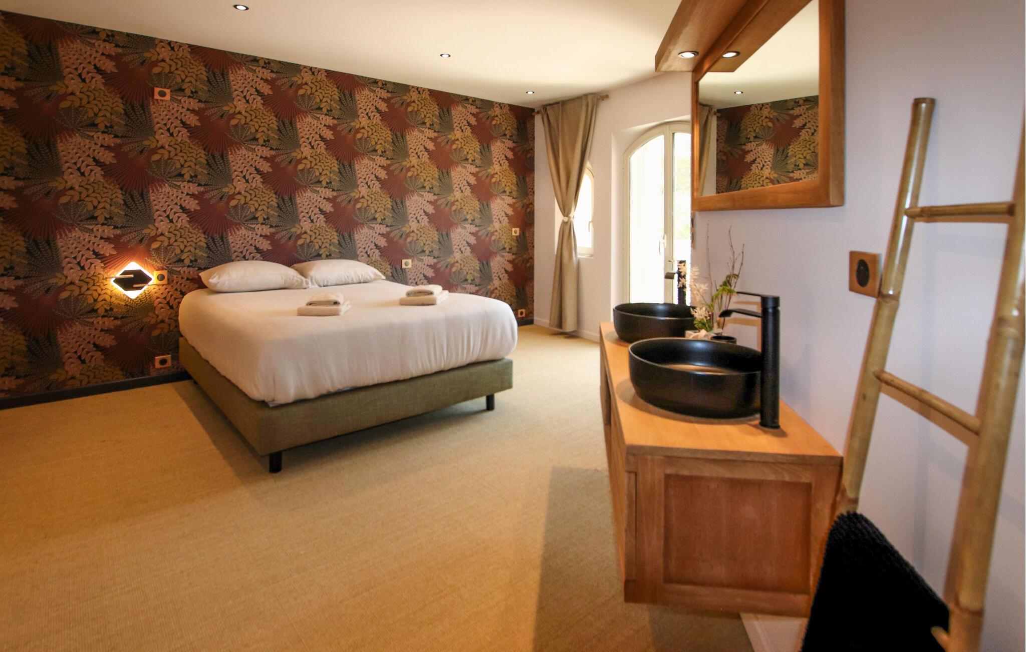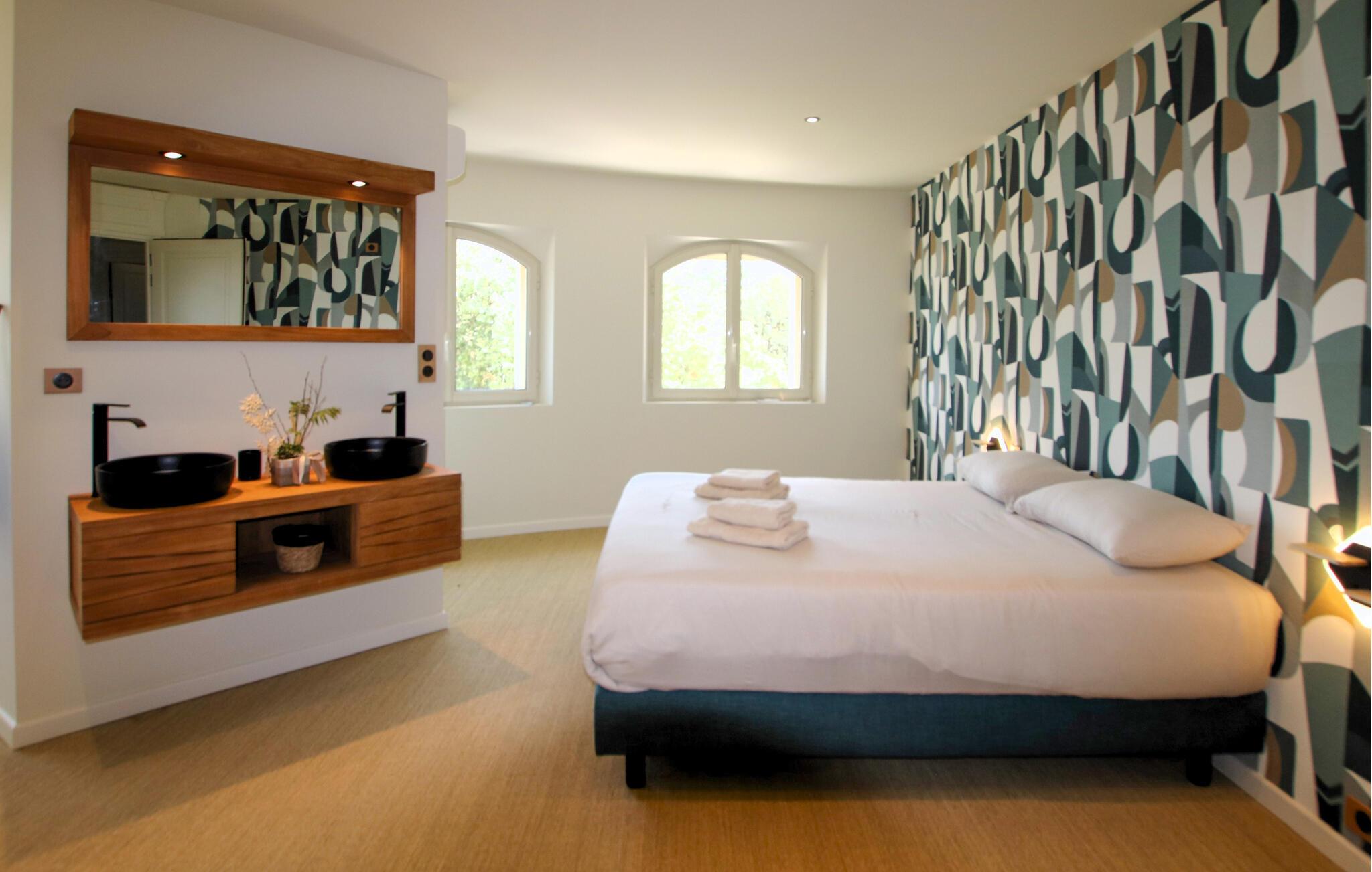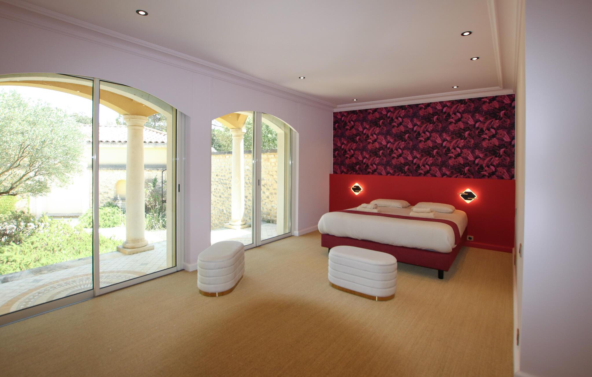Udeområdet lader heller ikke noget tilbage at ønske. Snup en frisk dukkert i den afsidesliggende pool, lad udsigten feje over bakkerne, vinmarkerne og lavendelmarkerne fra den panoramiske terrasse, og server jer selv delikatesser på de forskellige skyggefulde træterrasser. Glæd jer til charmerende udendørsaktiviteter, vær vært for hyggelige grillmiddage eller havefester under stjernehimlen.
