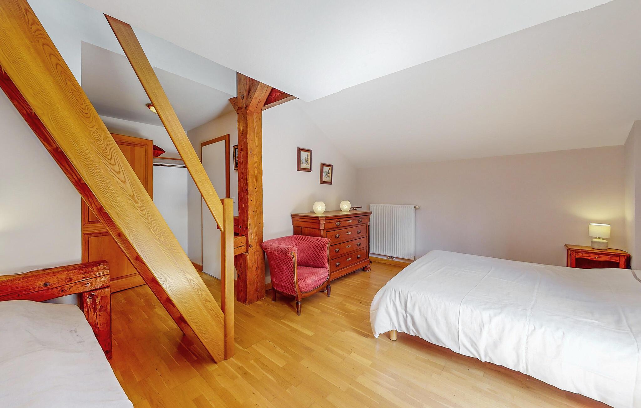Velkommen til det indbydende og rummelige feriehus med historie, hvor I kan slappe af omgivet af det smukke Vogeses landskab. Mange specielle detaljer gør huset til det ideelle sted at bo. Nyd tiden sammen i en hyggelig atmosfære og den smukke udsigt. Efter et godt måltid kan I finde jer tilpas i sofaen om aftenen og snakke længe ved pejsen.