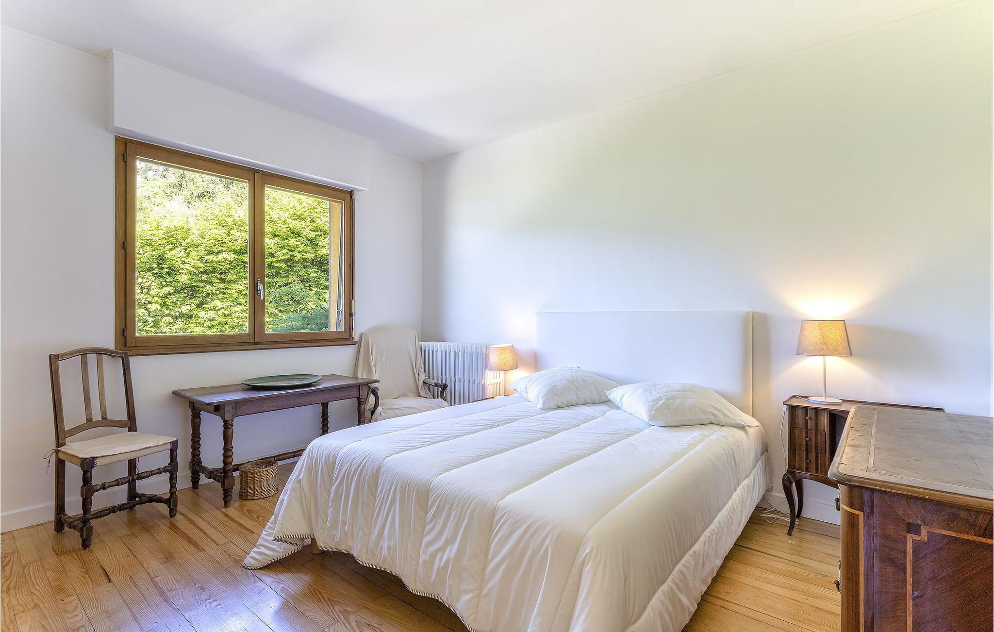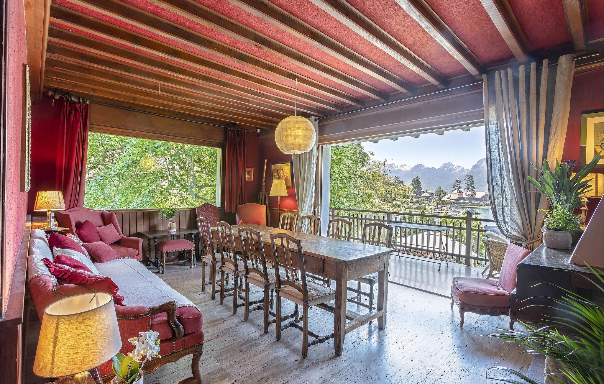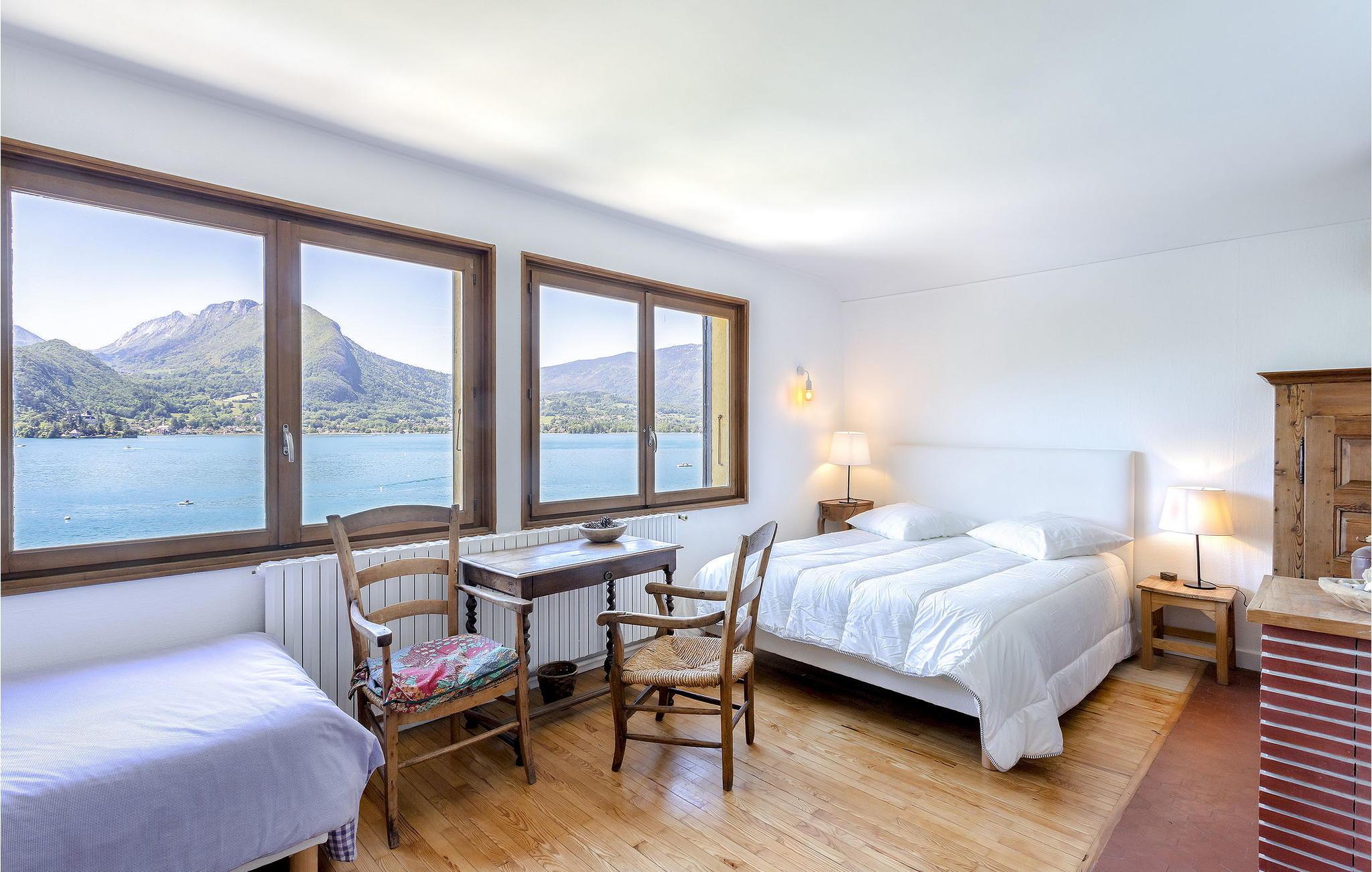 Beliggende i hjertet af Talloires-bugten tilbyder dette familieorienterede feriehus en betagende panoramaudsigt over Annecy-søen, der strækker sig fra Talloires-bugten til Duingt-slottet. Denne rummelige bolig har en stueetage med en stue og soveværelse med en fantastisk udsigt over søen og adgang til haven, et brusebad, et vaskerum og en stor udendørs terrasse ud mod søen. Første sal består af et opholdsområde med udsigt over søen, et separat veludstyret køkken og to soveværelser med enestående udsigt over søen og haven samt et fælles badeværelse. Loftetagen er vært for yderligere soveværelser, som hver giver komfortable møbler og forskellige udsigter over omgivelserne, ledsaget af et praktisk brusebad. Udenfor har ejendommen en fuldt lukket have, herunder en stor grusterrasse ved søen, græsplæner, en skovklædt sektion og udendørsmøbler. Parkeringsplads til fire biler er tilgængelig. Bemærk venligst, at sneudstyr er en nødvendighed i vintermånederne, og børn skal altid være under opsyn på grund af ejendommens beliggenhed ved søen. Huset er beliggende i hjertet af Talloires-bugten ved Annecy-søen, ideelt placeret til at drage fordel af de berømte restauranter i Talloires-bugten samt til udøvelse af adskillige sportslige eller kulturelle aktiviteter. Nautiske aktiviteter er lige uden for døren til huset på Cercle Nautique de Talloires: sejlads, roning, padleudlejning, kajakker og i bugten til vandski og vandcyklerudlejning. Alle lokale butikker i Talloires er omkring 700 m væk, herunder et bageri, en købmand og restauranter. Fordyb dig i skønheden ved Talloires-bugten og Annecy-søen fra dette charmerende familieferiehus, der lover et uforglemmeligt ophold midt i maleriske omgivelser.
