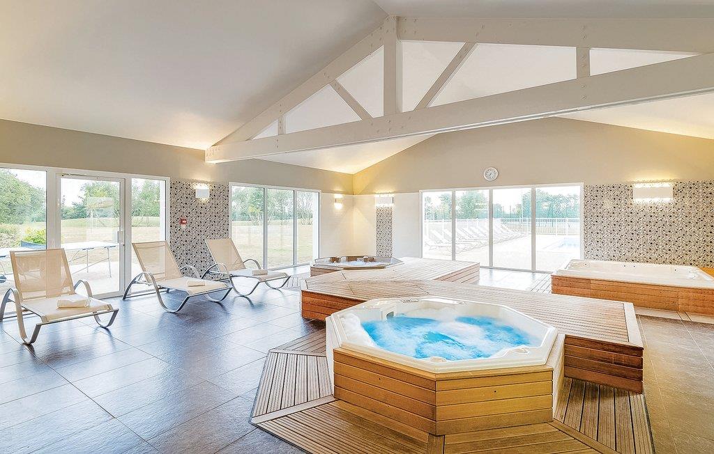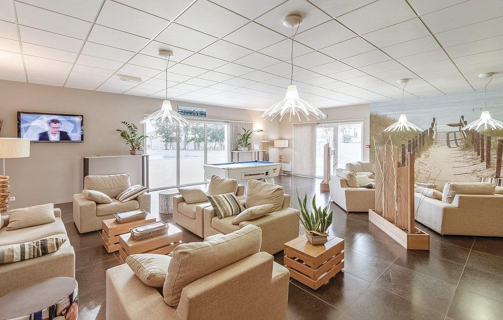 Dette kompleks består af hundrede rækkehuse, som er fordelt på syv områder. Efter morgenmaden kan I snuppe en frisk dukkert i den opvarmede udendørs pool og benytte saunaen og hammam, som er gratis en gang om ugen. I kan også træne på ferien og bruge fitnessrummet samt hygge jer med et spil tennis, bordtennis eller fodbold. Har I cyklerne med, er der også opbevaringsplads til dem.