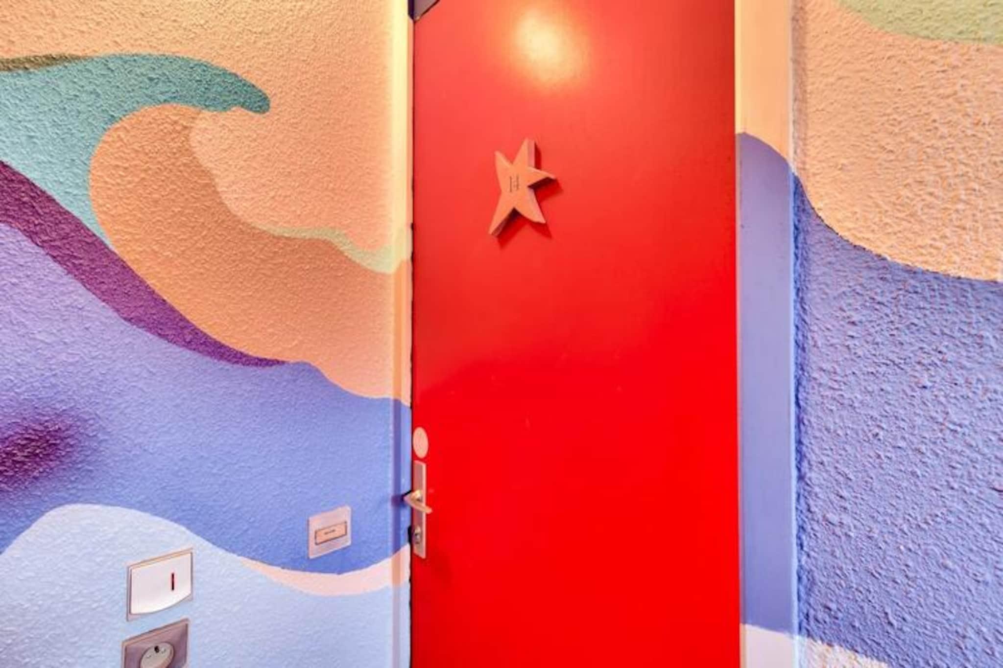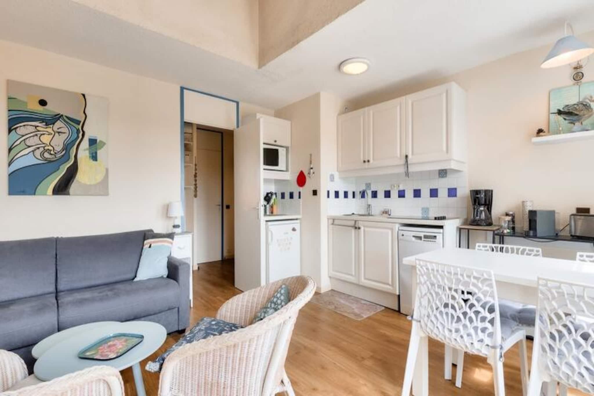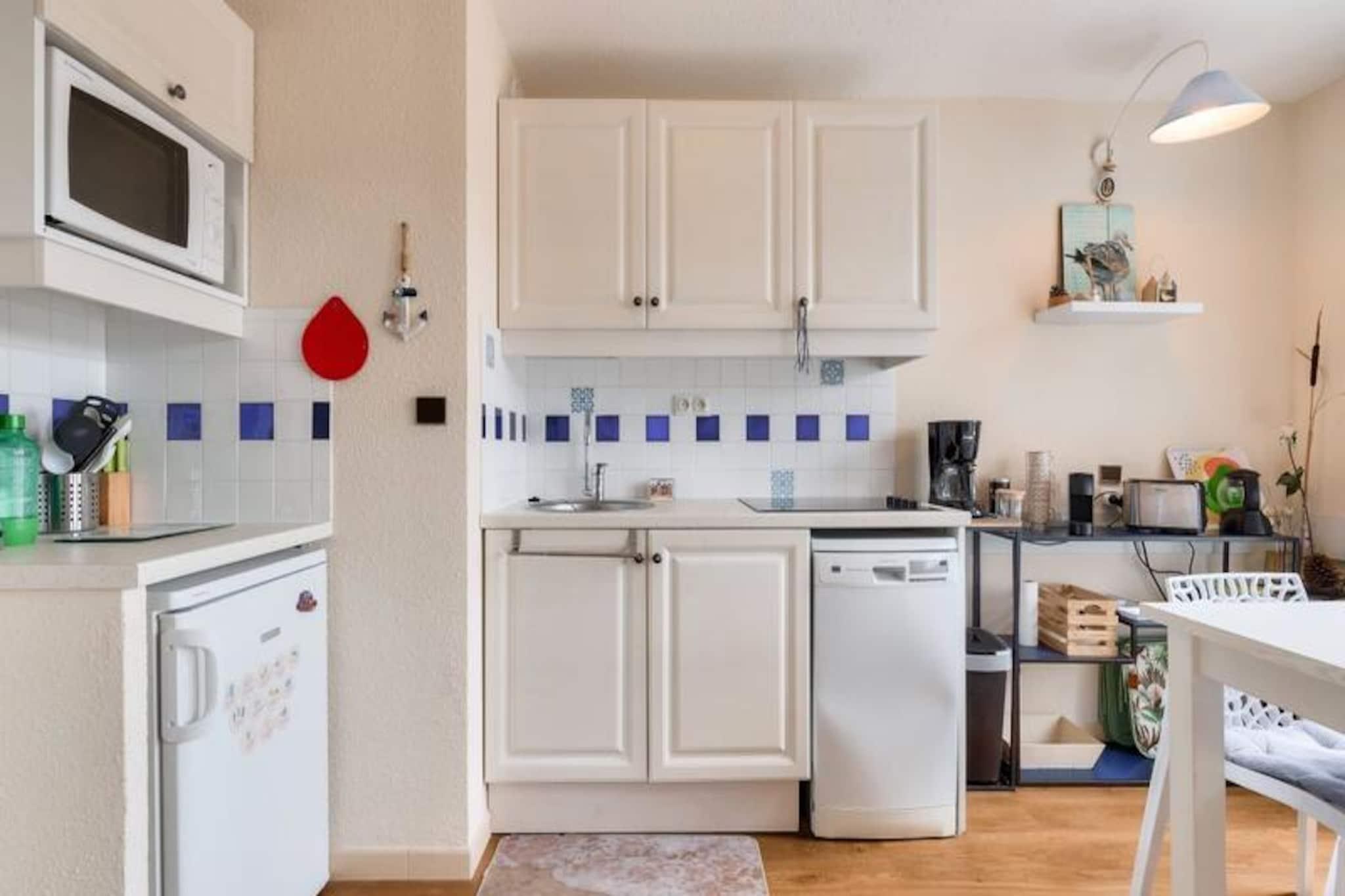 Denne hyggelige lejlighed tilbyder et behageligt ophold for op til fire personer, og byder på en rummelig stue med en sovesofa, et soveværelse med to enkeltsenge og et moderne badeværelse med badekar og separat toilet. Nyd en møbleret balkon med udsigt over søen, og gør brug af den gratis parkering, der er tilgængelig i boligen. Kæledyr er velkomne mod et ekstra gebyr, og væsentlige tjenester såsom sengelinned, håndklæder og slutrengøring er inkluderet i prisen. Beliggende i en smuk 90 hektar stor ejendom omgivet af en fyrreskov, tilbyder ejendommen nem adgang til havet, kun en kort gå- eller cykeltur væk. Veillon-stranden ligger 2,5 km fra boligen, og der tilbydes transportservice. Nyd en række fritidsaktiviteter på stedet, herunder svømning i tre pools, to 18-hullers golfbaner, tennis og minigolf. I nærheden finder du et pizzeria, bageri og bar/isbar for ekstra bekvemmelighed. Lejligheden har et fuldt udstyret køkken med køleskab, fryser, mikroovn, ovn og opvaskemaskine, så du kan tilberede dine måltider i ro og mag. Yderligere faciliteter inkluderer Wi-Fi-adgang (mod gebyr), et tv og et vedligeholdelsessæt. Et babysæt er tilgængeligt efter anmodning, hvilket gør det ideelt til familier med små børn.