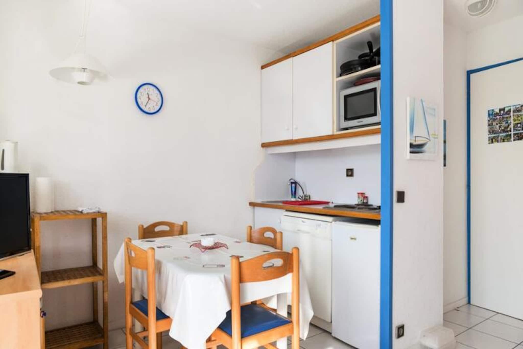 Denne kæledyrsvenlige lejlighed tilbyder en afslappende ferie i en fodgængerbolig på en 90 hektar stor ejendom i Talmont-Saint-Hilaire. Ejendommen har udsigt over en sø og er omgivet af en fyrreskov. Butikker og restauranter ligger 300 meter derfra, mens stranden er tilgængelig til fods, på cykel eller med shuttle (2,5 km). Komplekset har tre swimmingpools med rutsjebaner (åbent på bestemte datoer). Gæsterne kan nyde yderligere underholdningsmuligheder (mod et ekstra gebyr) såsom tennis og minigolf, eller udforske to nærliggende 18-hullers golfbaner. Denne lejlighed har plads til op til fire gæster med en dobbelt sovesofa og to enkeltsenge. Det har en stor, møbleret sydvendt terrasse med udsigt over søen, et åbent køkkenområde, et badeværelse med badekar og separat toilet samt et tv. Yderligere faciliteter og tjenester, der er tilgængelige mod et gebyr, omfatter Wi-Fi-adgang, leje af babysæt (krybbe og klapvogn), leje af sengelinned og håndklæder, daglig skift af håndklæder, slutrengøring og udækket parkering i boligen. Centerpoolen er tilgængelig for alle gæster fra 29. april til 15. september. Livreddere er kun til stede for rutsjebanen og poolen fra 1. juli til 31. august. Turistskat varierer afhængigt af sted og er gratis for gæster under 18. Der kræves et depositum ved indtjekning.