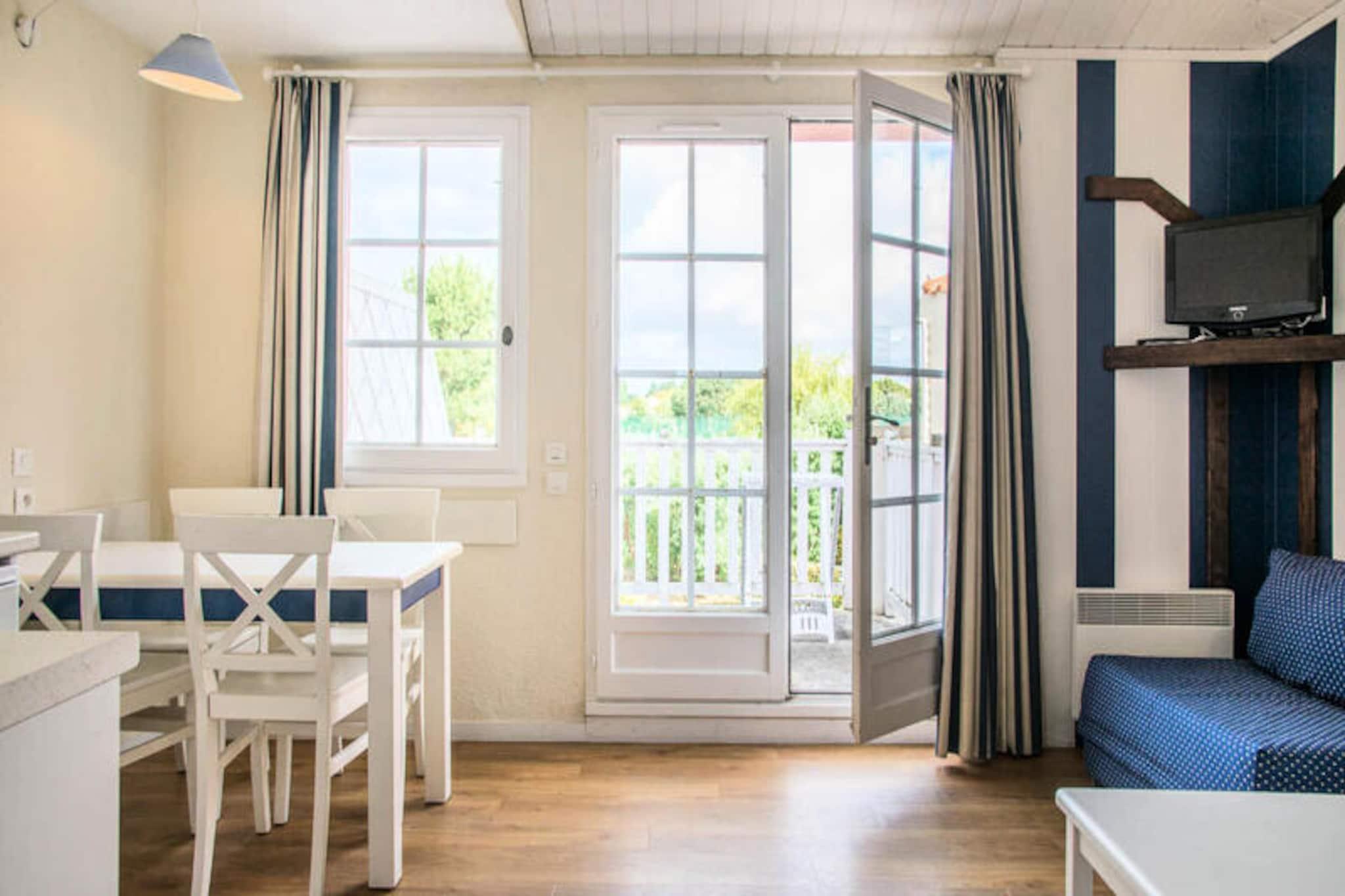 La Résidence Port Bourgenay - maeva Home está situada en Talmont-Saint-Hilaire, en la región de Vendée, a solo 9 km de Les Sables-d'Olonne. Se trata de una auténtica finca de 90 hectáreas rodeada de un pinar y con vistas directas a un lago. La residencia peatonal está dividida en cinco distritos y ofrece tiendas donde encontrará todo lo necesario para unas vacaciones cómodas y relajantes. Puedes llegar al océano a pie o en bicicleta a través del pinar, el Talmondaise (lanzadera) también puede dejarte en la playa de Veillon, situada a 2,5 km, donde podrás disfrutar de numerosas actividades. La residencia también cuenta con 3 piscinas y una zona acuática con tobogán. Fechas de apertura: La piscina del centro: del 27/04 al 12/09 La piscina del Moulin: del 15/06 al 08/09 La piscina de Bocage: del 15/06 al 02/09 En el sitio: Pizzería, panadería, bar/heladería. (Estos servicios son independientes de la residencia) Los alojamientos de Maeva Home son alquileres privados totalmente equipados ubicados dentro de la residencia. Limpieza adicional: A realizar al final de la estancia, ya sea por parte del cliente o pagando el servicio en el momento de la reserva, en el pre-check-in o a la llegada. Se beneficiará de las ventajas y servicios a la carta según sus deseos. Entretenimiento y ocio (cargo adicional): * Dos campos de golf de 18 hoyos * Tenis, minigolf 1 salón, 1 dormitorio, 1 rincón cocina, 1 baño y 1 aseo. Equipamiento del salón: 1 sofá cama convertible (2 camas) y 1 sillón bajo (1 cama). Para la comida: una mesa con 4 sillas. Instalaciones de la habitación: 1 dormitorio con 2 camas individuales. Equipamiento de baños: 1 bañera y 1 aseo. Equipamiento de la cocina: Zona de cocina abierta al salón. Superficie: 26 m² aproximadamente. Las ventajas de este alojamiento: balcón amueblado, tendedero, espacio de almacenamiento, TV... Etiqueta de selección de hogar maeva: Apartamentos mantenidos, al día y con equipamiento de calidad. Para unas vacaciones exitosas y confortables. Acceso Wifi - Con suplemento - sujeto a disponibilidad. Se admiten mascotas - Además, consulte directamente con la residencia para conocer los precios (permitidos para determinados alojamientos). Kit Bebé - Sujeto a disponibilidad: 1 cuna plegable (norma NF EN 716), 1 cochecito (el contenido puede variar según la residencia) - precios a consultar en recepción. Ropa de cama - Con coste adicional - El contenido puede variar según la residencia: sábana bajera, sábana o funda nórdica y funda de almohada. Toallas - Cargo extra. Posibilidad de cambio de ropa de diario disponible, consultar precios en recepción. Limpieza final de estancia - Servicio de limpieza obligatorio a pagar al realizar el check-in o a la llegada. Aparcamiento - gratuito descubierto situado en la residencia. Piscina - Incluida. En el centro de la residencia encontrará: Piscinas climatizadas, toboganes y piscina infantil con juegos acuáticos. Información de la agencia maeva Home. Fecha de apertura: 29/04 al 15/09, accesible a todos Tobogán y piscina supervisados ??únicamente del 01/07 al 31/08 Tasa turística (cargo adicional) - El pago de la tasa turística se realiza a través de su espacio personal: https://mon-compte.maeva.com, el importe varía según la ubicación. Gratis para menores de 18 años. Televisión - Dependiendo de tu alojamiento
