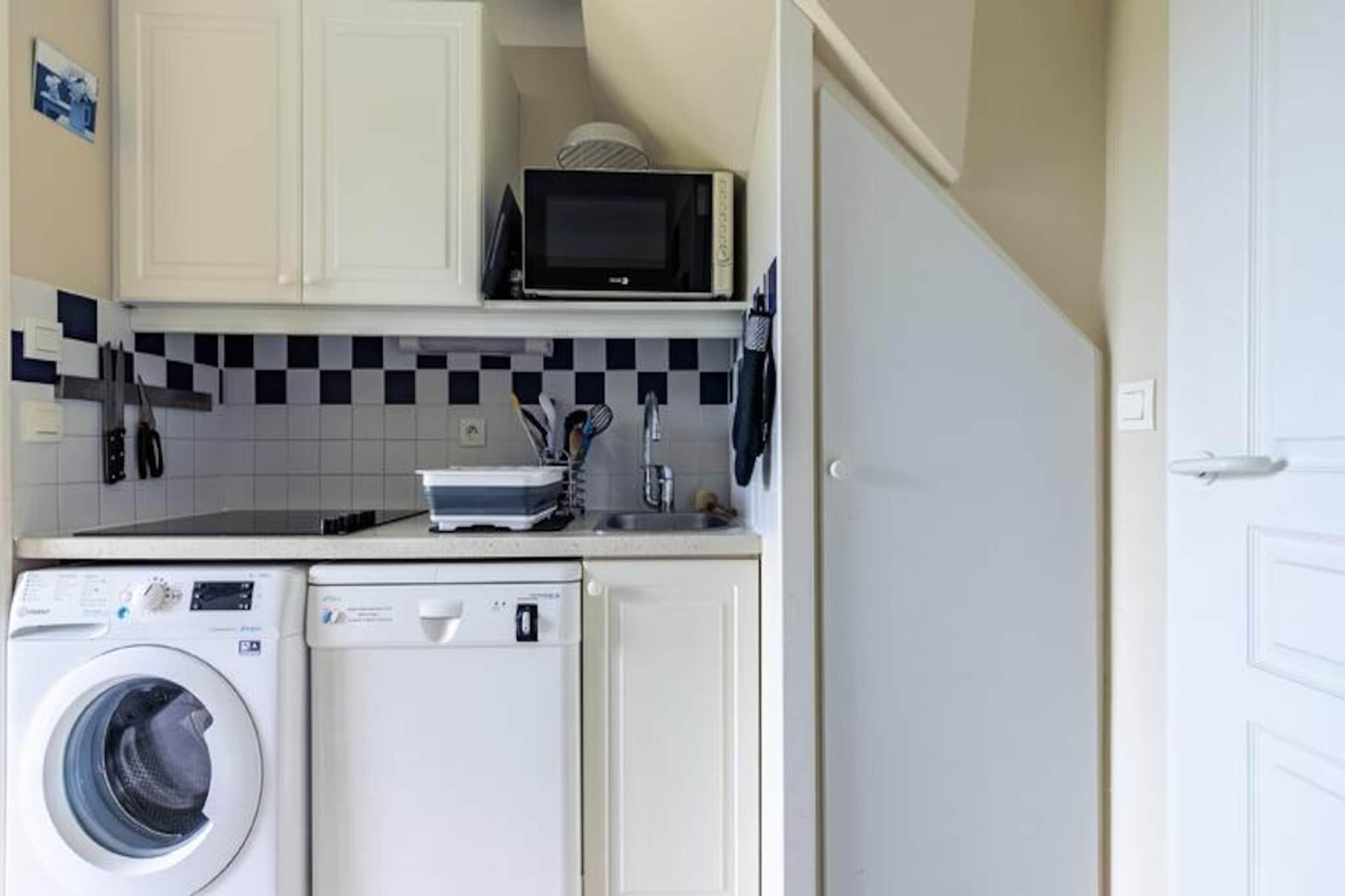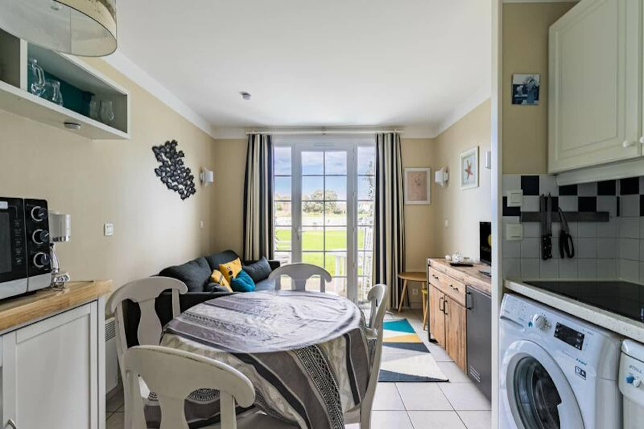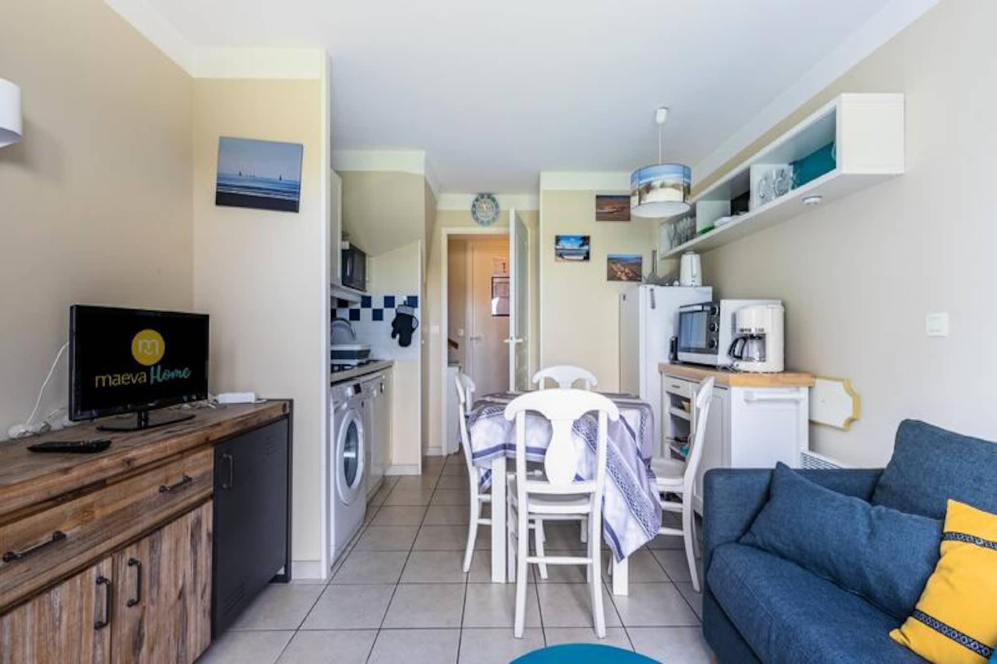 Dette ferieudlejningskompleks ligger på en 90 hektar stor ejendom i Talmont-Saint-Hilaire, Vendée. Beliggende i en fyrreskov og med udsigt over en sø, byder det fodgængervenlige kompleks på butikker, et pizzeria, bageri, bar og isbar (alt sammen uafhængigt af boligen). Stranden er tilgængelig til fods, på cykel eller med en shuttle, der afsætter gæster 2,5 km væk. Tre swimmingpools med rutsjebaner og et vandområde er også tilgængelige på stedet (med sæsonbestemte åbningsdatoer). Komplekset tillader kæledyr i nogle lejemål (ekstra gebyrer). Selve udlejningen er en lys et-plans lejlighed med terrasse og parkering. Det har en stue med en sovesofa, et spisebord med fire stole og et køkken. Soveværelset har en dobbeltseng, og badeværelset har badekar, separat toilet, hårtørrer og opbevaring. Wi-fi-adgang, sengetøj, håndklæder og babysæt er alle tilgængelige mod et ekstra gebyr. Gæsterne kan nyde forskellige aktiviteter og faciliteter mod et ekstra gebyr, herunder to 18-hullers golfbaner, tennisbaner, minigolf og en række à la carte-tjenester.
