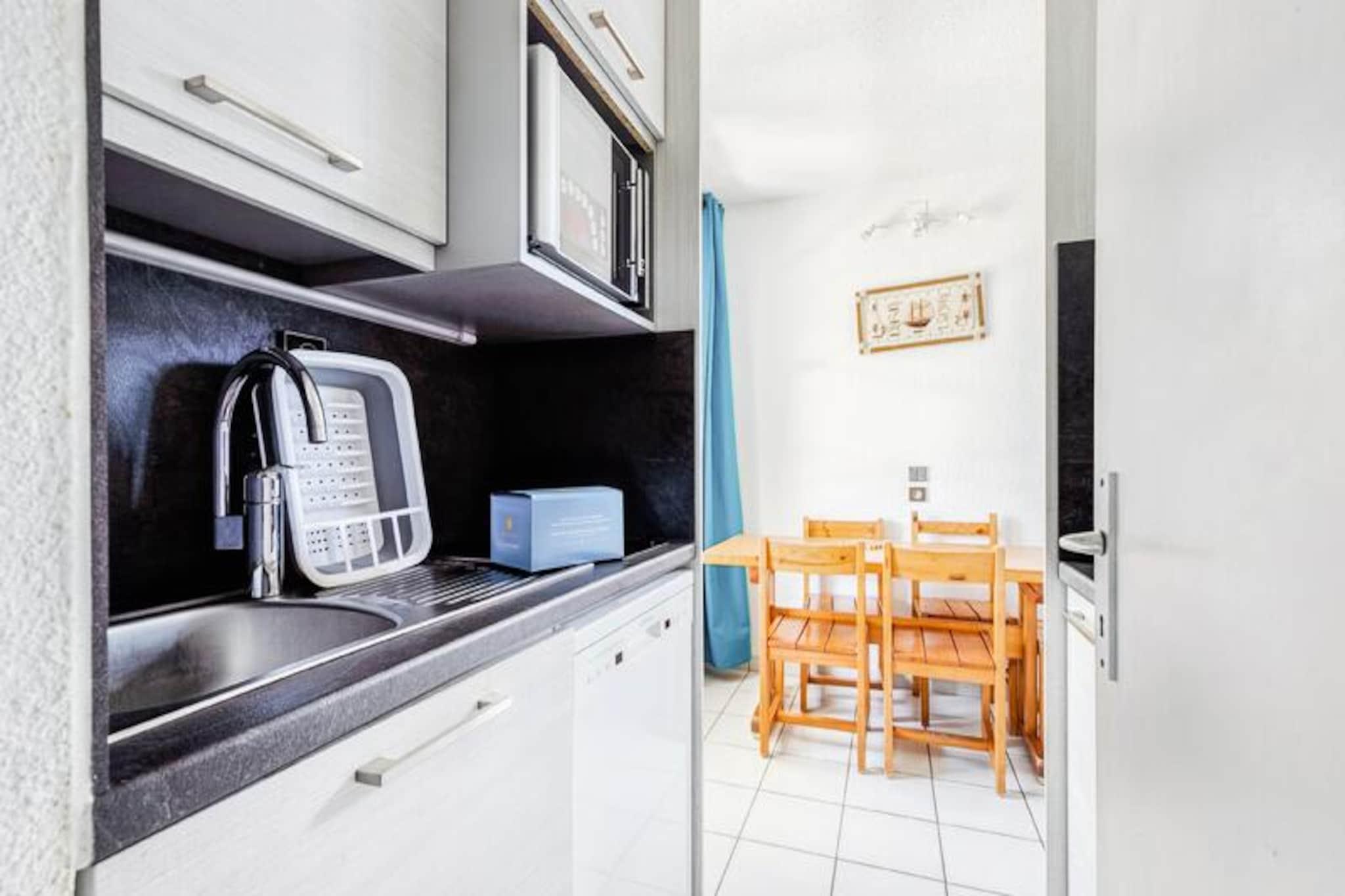 Denne hyggelige lejlighed i stueetagen kan rumme op til 5 gæster, med en komfortabel stue med en sovesofa, spiseplads til 5 og et soveværelse med en enkeltseng og køjesenge. Den private sydvendte terrasse er perfekt til udendørs afslapning. Kæledyr er velkomne (ekstra gebyrer), og lejligheden tilbyder gratis udækket parkering. Et babysæt er tilgængeligt efter anmodning, og WiFi tilbydes mod et tillægsgebyr. Beliggende i Vendée-regionen tilbyder boligen nem adgang til havet, enten til fods eller på cykel gennem en fyrreskov eller med transport til Veillon-stranden. Gæsterne kan nyde nærliggende attraktioner såsom to 18-hullers golfbaner, tennis og minigolf. Faciliteterne på stedet inkluderer et pizzeria, bageri og isbar, og lokale butikker er tæt på til daglige behov. Lejligheden har et halvåbent køkken til hjemmelavet mad, et badeværelse med badekar og separat toilet samt masser af opbevaringsplads. Med sit velholdte, funktionelle design sikrer den et behageligt ophold. Yderligere tjenester såsom sengelinned, håndklæder og slutrengøring er tilgængelige mod et gebyr.