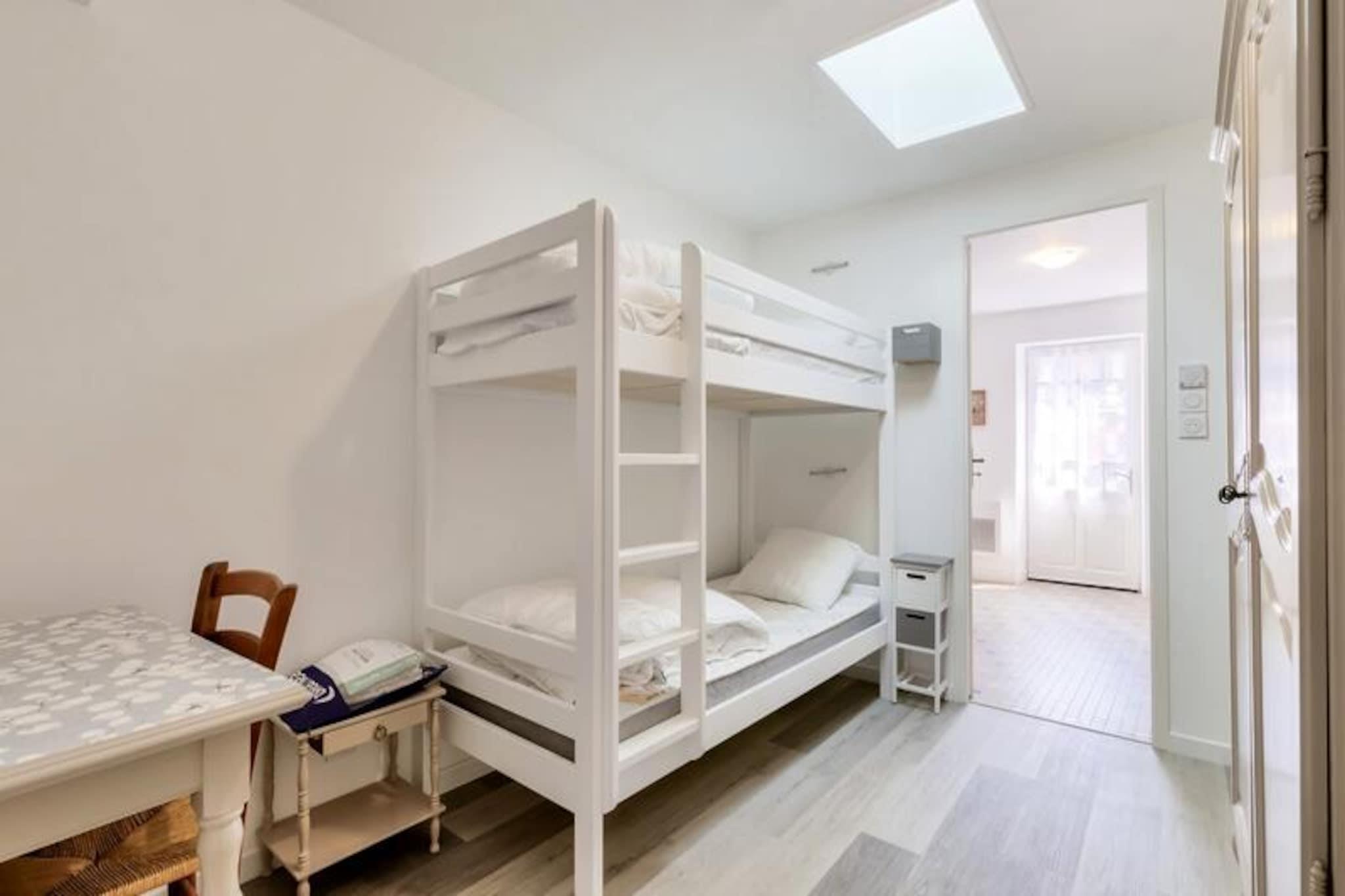 Para sus vacaciones en Talmont-Saint-Hilaire, elija nuestros alquileres de vacaciones situados a dos pasos del puerto deportivo de Port-Bourgenay. Su alquiler vacacional incluye: 1 salón luminoso, 1 cocina, 2 dormitorios, 2 baños, 2 aseos, 1 pequeño jardín y 1 plaza de aparcamiento. Las ventajas de tu alojamiento Super Home: Preciosa casa amplia y luminosa con jardín, para 4 personas, situada en el centro del pueblo a sólo 200m de los comercios y a 1km de la playa más cercana. Para mayor comodidad, este alojamiento dispone de lavavajillas, lavadora y plaza de aparcamiento. Superficie: 70 m². Ubicación: Planta de alojamiento: Planta baja Centro de la ciudad o pueblo: Centro de la ciudad Distancia a la playa: >1km Distancia comercial: >200m Número de niveles de vivienda: Una sola planta Composición del espectáculo: Sofá convertible: Sí (para 2 personas) Plazas para sentarse en el sofá: 2 Mesa de centro: Sí Lado de la comida: Tipo de cocina: americana Mesa en la cocina: Sí Número de sillas en la cocina: 2 Composición de las habitaciones: Dormitorio 1: Cama doble: 1 Dormitorio 2: Literas: 1 Composición del baño: Número de baños: 2 Baño N°1: Tipo de baño: Ducha Una toma de corriente libre cerca del espejo: Sí Gancho(s) sin calefacción o secador de toallas: Sí Secador de toallas eléctrico: Sí Espacio(s) de almacenamiento (sin incluir el estante debajo del espejo y el tocador): Sí Secador de pelo eléctrico: Sí WC: Sí Cuarto de baño núm. 2: Tipo de baño: Ducha Estado del baño: Buen estado Una toma de corriente libre cerca del espejo: Sí Gancho(s) sin calefacción o secador de toallas: Sí Secador de toallas eléctrico: Sí Espacio(s) de almacenamiento (sin incluir el estante debajo del espejo y el tocador): Sí Secador de pelo eléctrico: Sí WC: Sí Exteriores: Ver: Otro Orientación: Sur Aparcamiento dedicado al alojamiento: Sí Tipo de Aparcamiento: Exterior Vive la experiencia maeva.com en este alojamiento certificado por nuestro Sello de Prestigio: date un capricho. Elija apartamentos que hayan sido renovados recientemente y con buen gusto y que le ofrezcan una gama de servicios de calidad. El plus de la experiencia maeva super Home: Una acogida personalizada y servicios de calidad incluidos directamente en el precio de su alquiler: ropa de cama, ropa de baño, camas hechas a la llegada, limpieza final, acceso wifi y kit de mantenimiento. ¡Todo está pensado para que tengas una excelente estadía! Acceso Wifi - Cargo adicional. Paquete de limpieza final - Cargo adicional. Servicio de limpieza obligatorio a abonar cuando € registro o € llegada. Ropa de cama - Con coste adicional - El contenido puede variar según la residencia: sábana bajera, sábana o funda nórdica y funda de almohada. Toallas - Cargo extra. Posibilidad de cambio de ropa de diario disponible, consultar precios en recepción. Depósito (en euros) - 1200