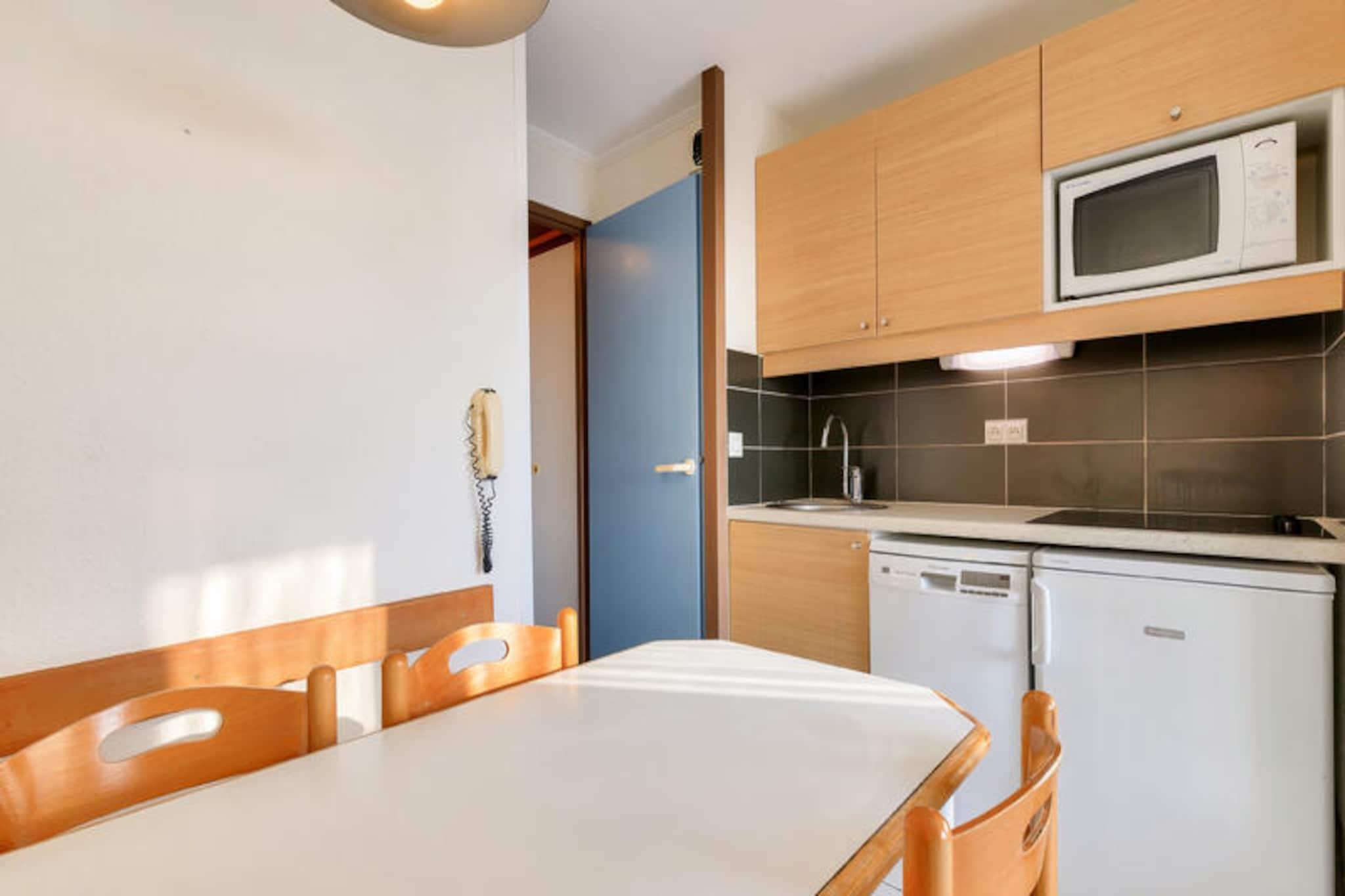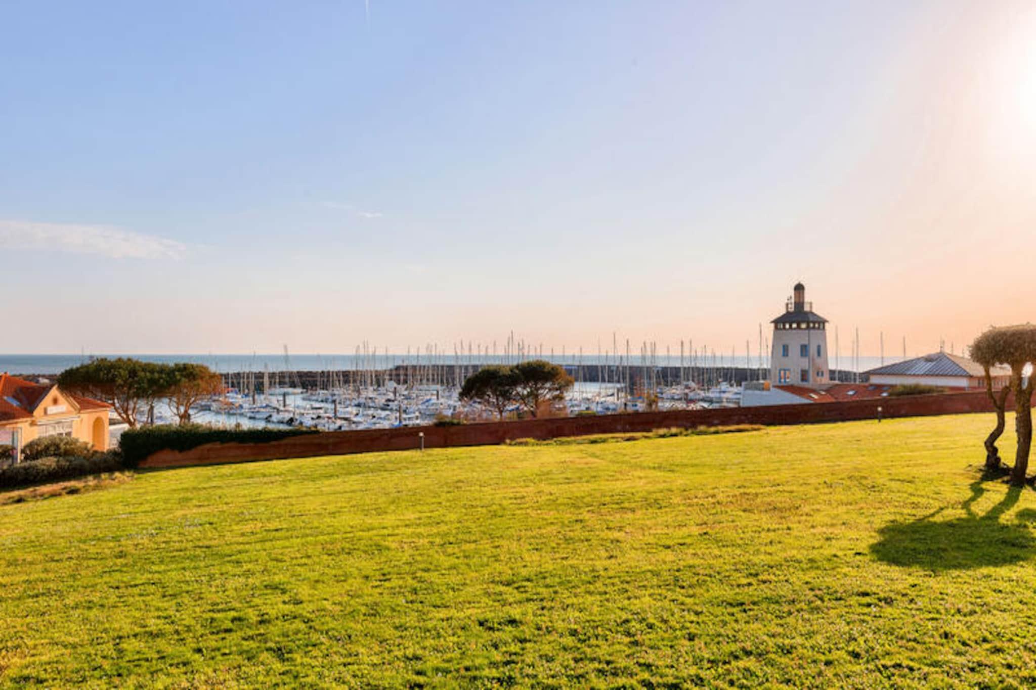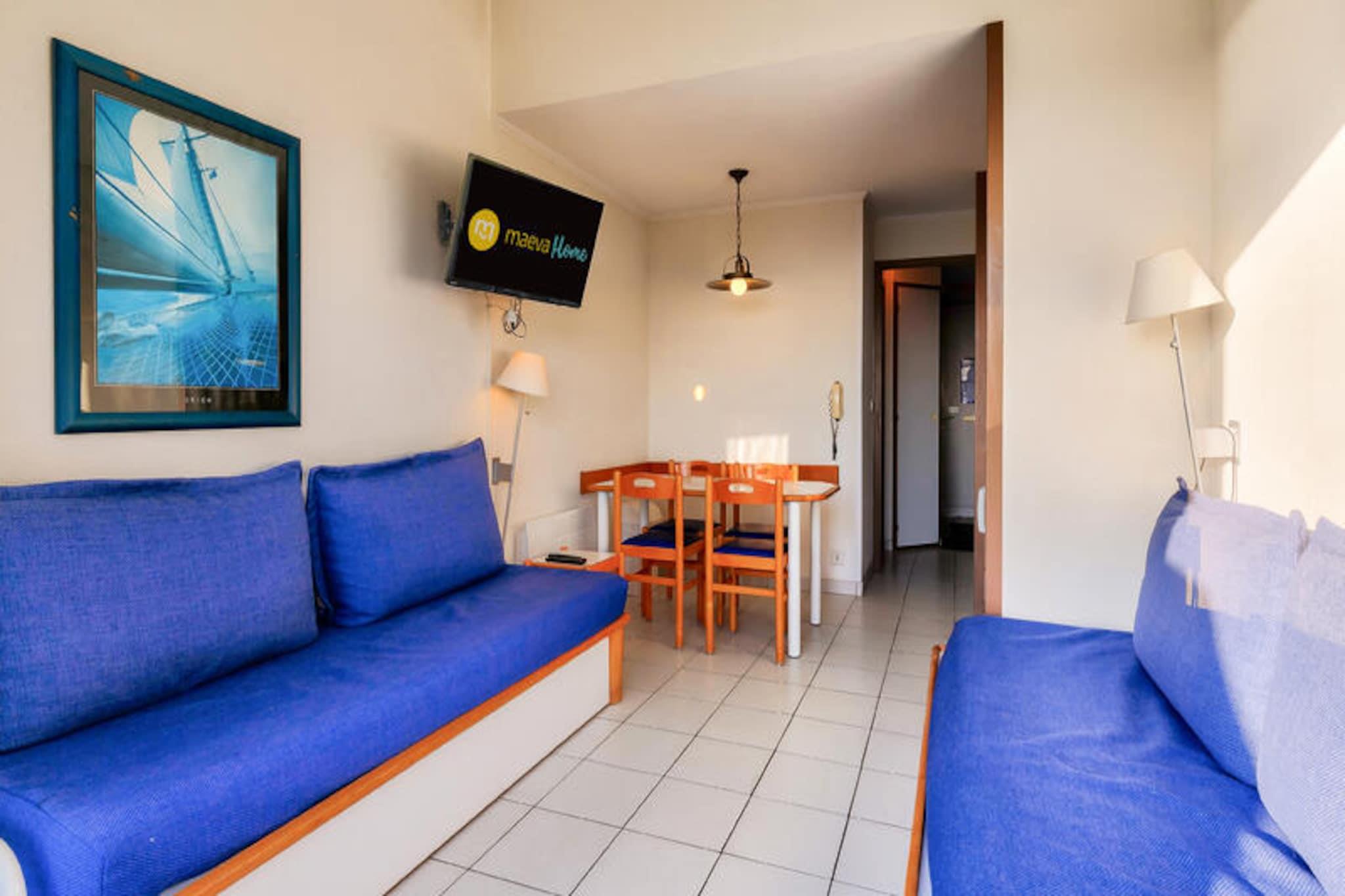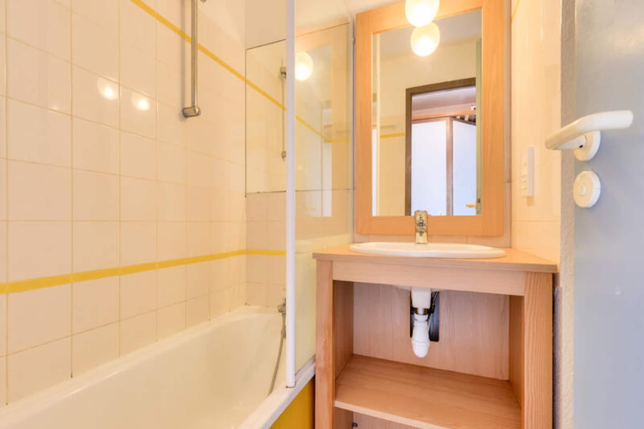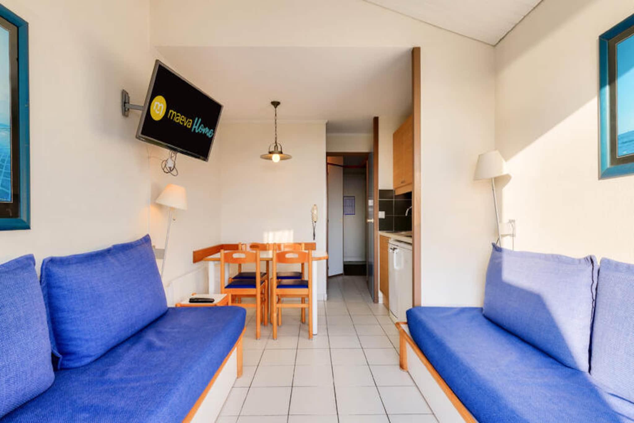 Dette lejlighedskompleks tilbyder en række faciliteter og aktiviteter på stedet til en afslappende ferie i Talmont-Saint-Hilaire, Vendée. Ejendommen er beliggende på en 90 hektar stor ejendom omgivet af en fyrreskov og med udsigt over en sø. Det har en fodgængerbolig med butikker, et pizzeria, bageri og bar/isbar (uafhængige virksomheder). Komplekset kan også prale af tre swimmingpools (åbne på bestemte datoer) med rutsjebaner og et soppebassin. Gæsterne kan nyde yderligere underholdningsmuligheder (mod et ekstra gebyr) såsom tennis og minigolf, eller udforske to nærliggende 18-hullers golfbaner. Selve lejligheden er et studie på 25 m², der komfortabelt kan sove fem gæster. Det har en sydvendt balkon med havudsigt, en stue med en sovesofa til to og en udtræksseng, et køkken i amerikansk stil, et kabineområde med køjesenge og et badeværelse med badekar. Lejligheden er kæledyrsvenlig (med forudgående godkendelse og ekstra gebyrer). Yderligere faciliteter og tjenester, der er tilgængelige mod et gebyr, omfatter Wi-Fi-adgang, leje af babysæt (krybbe og klapvogn), leje af sengelinned og håndklæder, daglig skift af håndklæder, slutrengøring og udækket parkering i boligen. Centerpoolen er tilgængelig for alle gæster fra 29. april til 15. september. Livreddere er kun til stede for rutsjebanen og poolen fra 1. juli til 31. august. Turistskat varierer afhængigt af sted og er gratis for gæster under 18. Der kræves et depositum ved indtjekning.