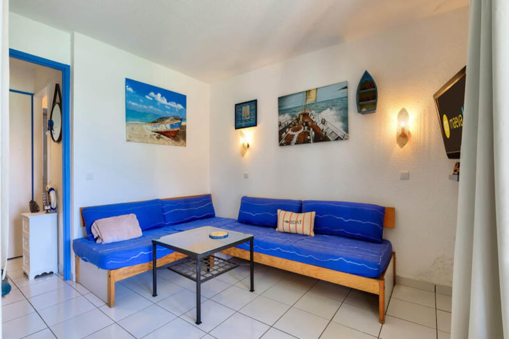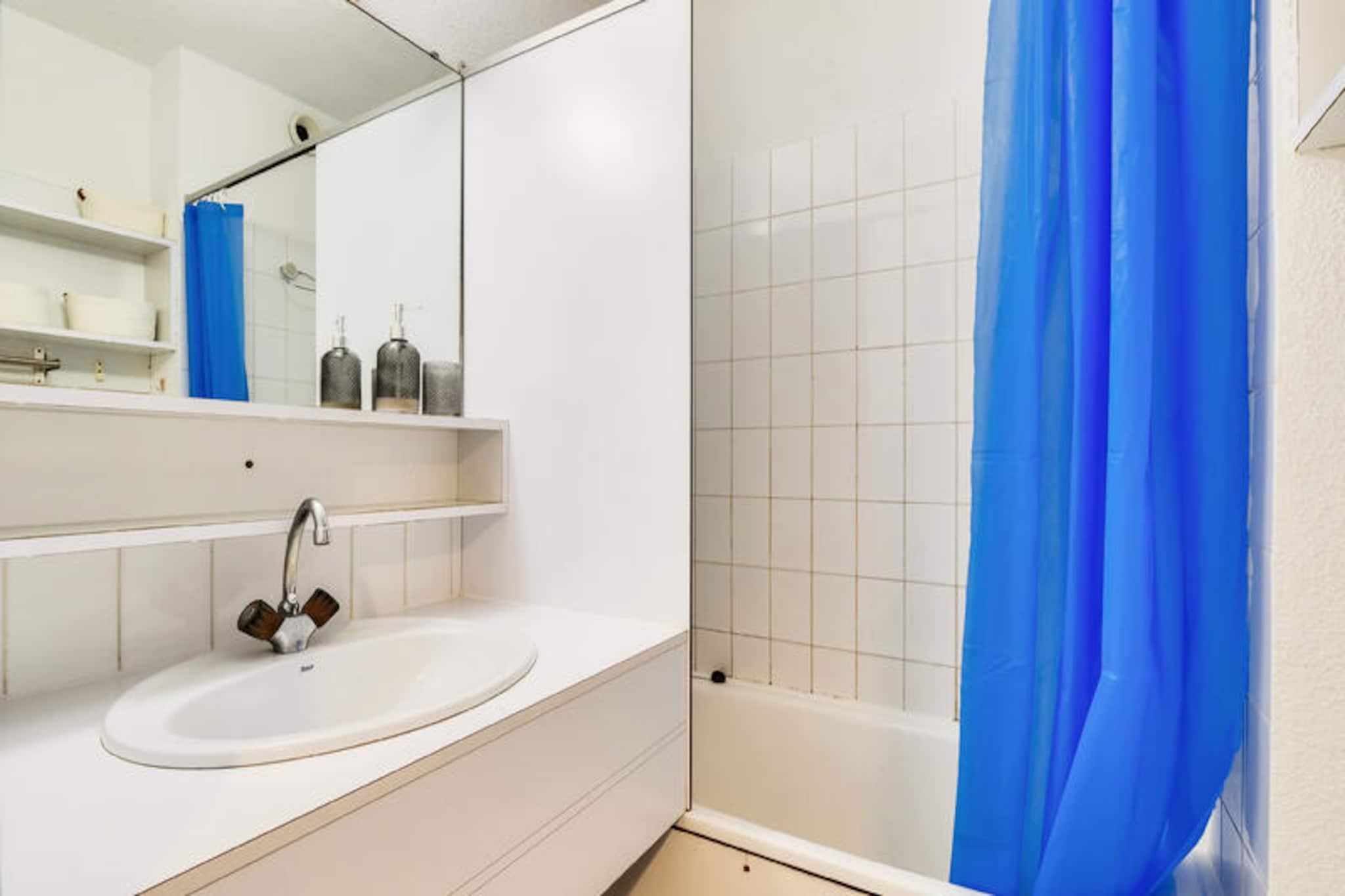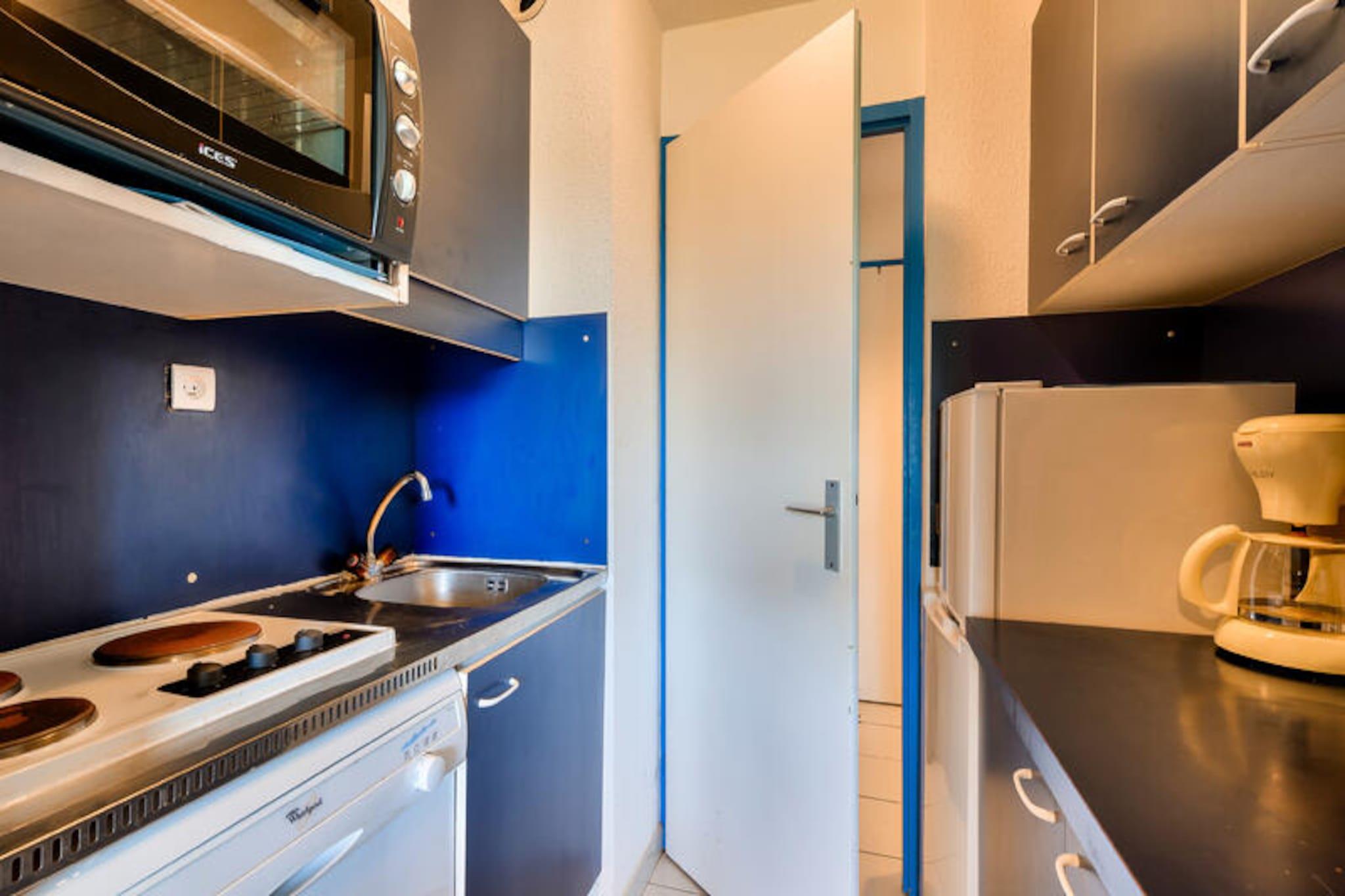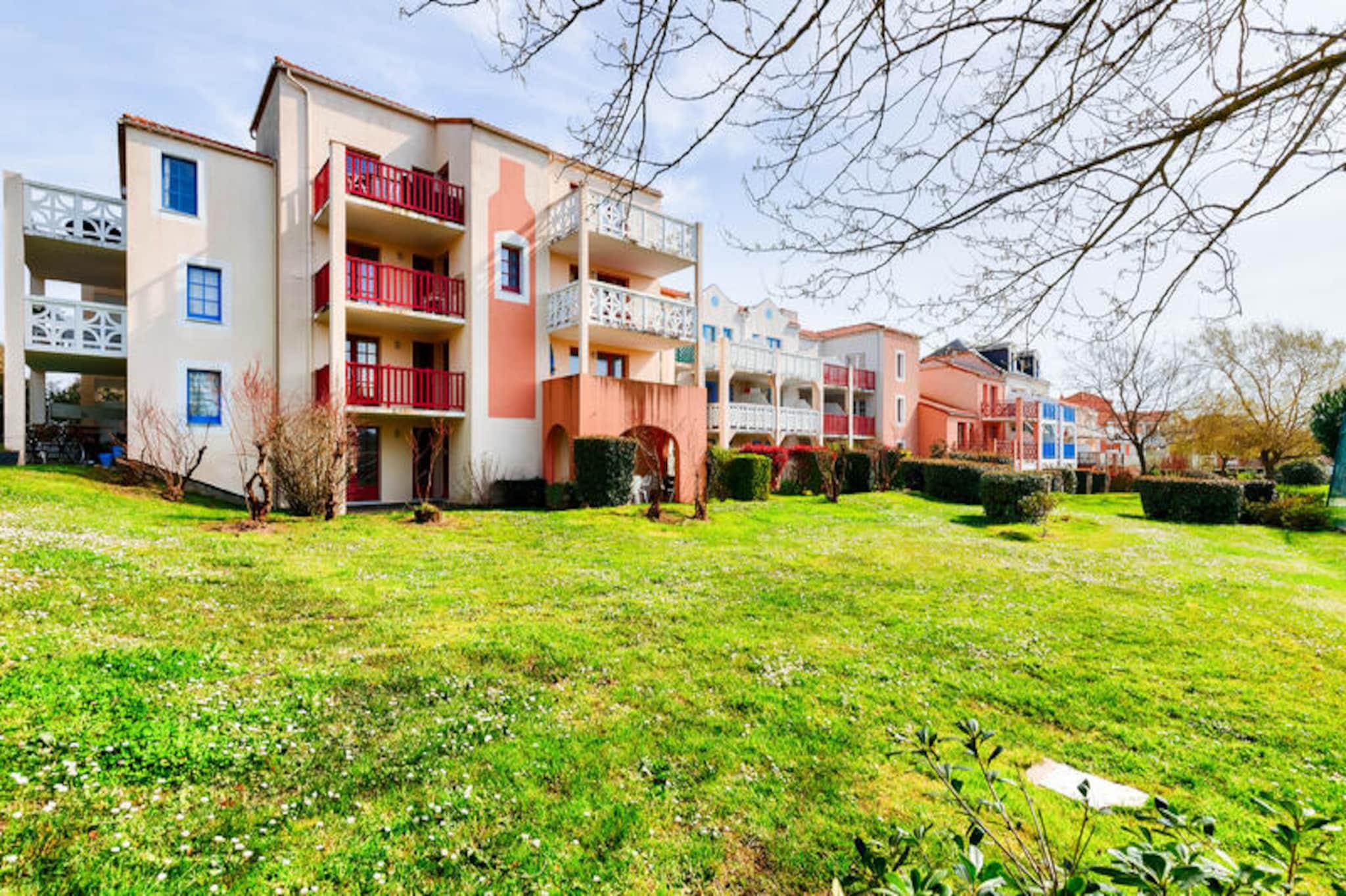 Denne charmerende ferielejlighed er ideel til op til 5 gæster og tilbyder et komfortabelt ophold med et soveværelse med dobbeltseng, et kabineområde med køjesenge, en stue med en sovesofa og et badeværelse med badekar. Lejligheden er kæledyrsvenlig (der kan forekomme ekstra gebyrer), og sengetøj og håndklæder er tilgængelige mod et tillægsgebyr. For ekstra bekvemmelighed opkræves et slutrengøringsgebyr, og parkering er tilgængelig på stedet. Lejligheden har en overdækket terrasse med udsigt over landsbyen, perfekt til at slappe af efter en dag med udforskning. Ejendommen ligger på en 90 hektar stor ejendom omgivet af fyrreskove og tilbyder direkte adgang til havet og kun 2,5 km fra Veillon-stranden, som kan nås til fods, på cykel eller med shuttle. Gæsterne kan nyde en række fritidsaktiviteter, herunder to 18-hullers golfbaner, tennis og minigolf. Boligen har også butikker på stedet, herunder et pizzeria, bageri og isbar, hvilket tilføjer bekvemmelighed og charme til dit ophold. Den nærliggende bymidte byder på yderligere caféer og markeder for en lokal oplevelse. Lejligheden har et semi-åbent køkken udstyret med væsentlige apparater, herunder en mikrobølgeovn og ovn, hvilket gør det nemt at tilberede måltider. Badeværelset har badekar med søjle, og der er god opbevaringsplads til dine ejendele. På stedet finder du opvarmede pools, rutsjebaner og et soppebassin til familiesjov. Med sin førsteklasses beliggenhed og mange faciliteter er denne lejlighed perfekt til en afslappende ferie.