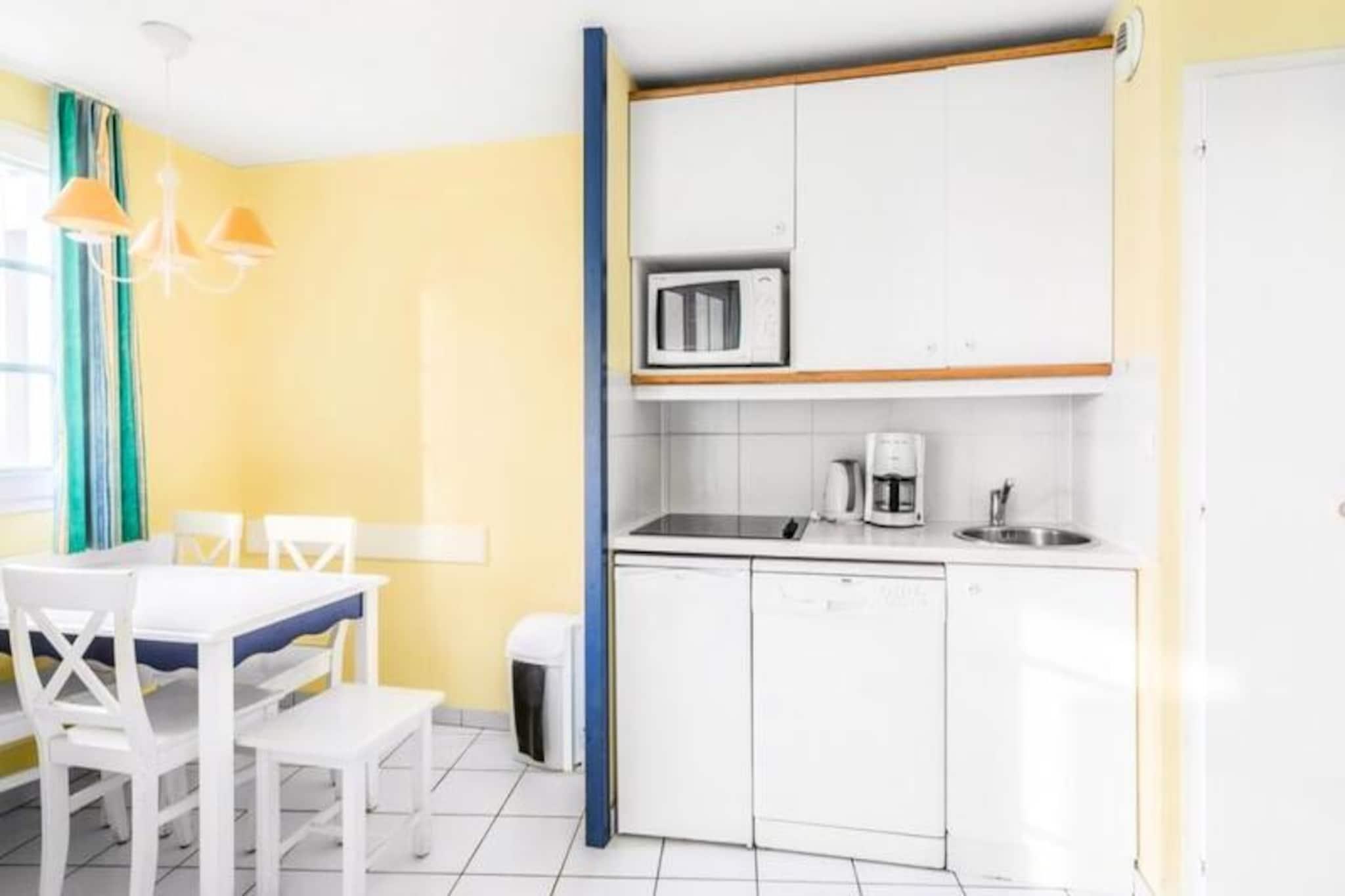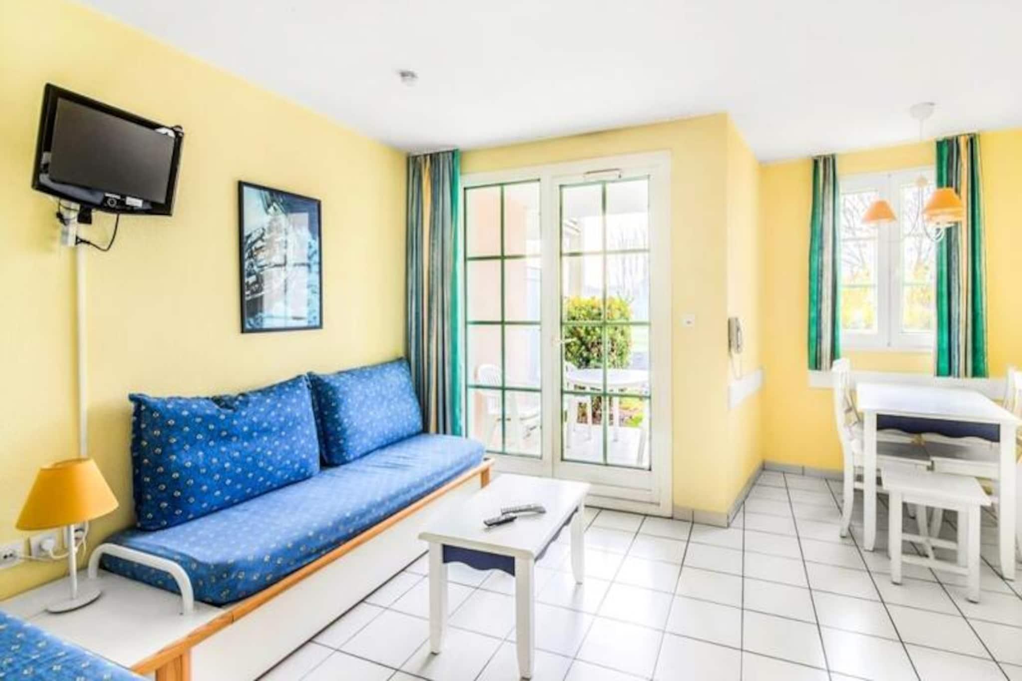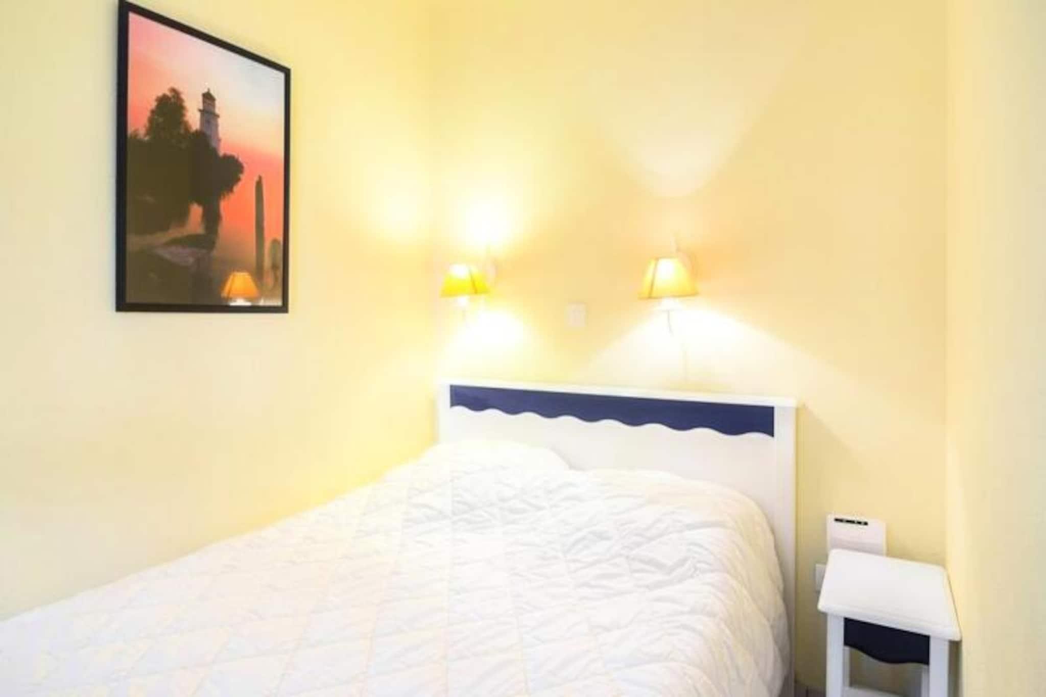 Denne lejlighed i stueetagen tilbyder en afslappende ferie på en 90 hektar stor ejendom i Talmont-Saint-Hilaire, med udsigt over en sø og omgivet af en fyrreskov. Fodgængerboligen omfatter butikker og spisemuligheder. Tre swimmingpools med rutsjebaner er tilgængelige (sæsonbestemt åbning). Stranden er tilgængelig til fods, på cykel eller med shuttle (2,5 km). Golf, tennis og minigolf er tilgængelige mod betaling. Kæledyr er tilladt (mod betaling). Denne kæledyrsvenlige lejlighed har plads til op til seks personer med to sovesofaer (en med trille) i stuen og et soveværelse med dobbeltseng. Det har en møbleret sydvendt terrasse med udsigt over parken og søen, et åbent køkken, et badeværelse med badekar og et separat toilet. Wi-Fi, babysæt, sengetøj, håndklæder, rengøring og parkering er tilgængelige mod et gebyr. Den største pool er åben 29. april-15. september (livreddere 1. juli-31. august). Turistskat gælder (gratis for under 18 år). Der kræves et depositum.