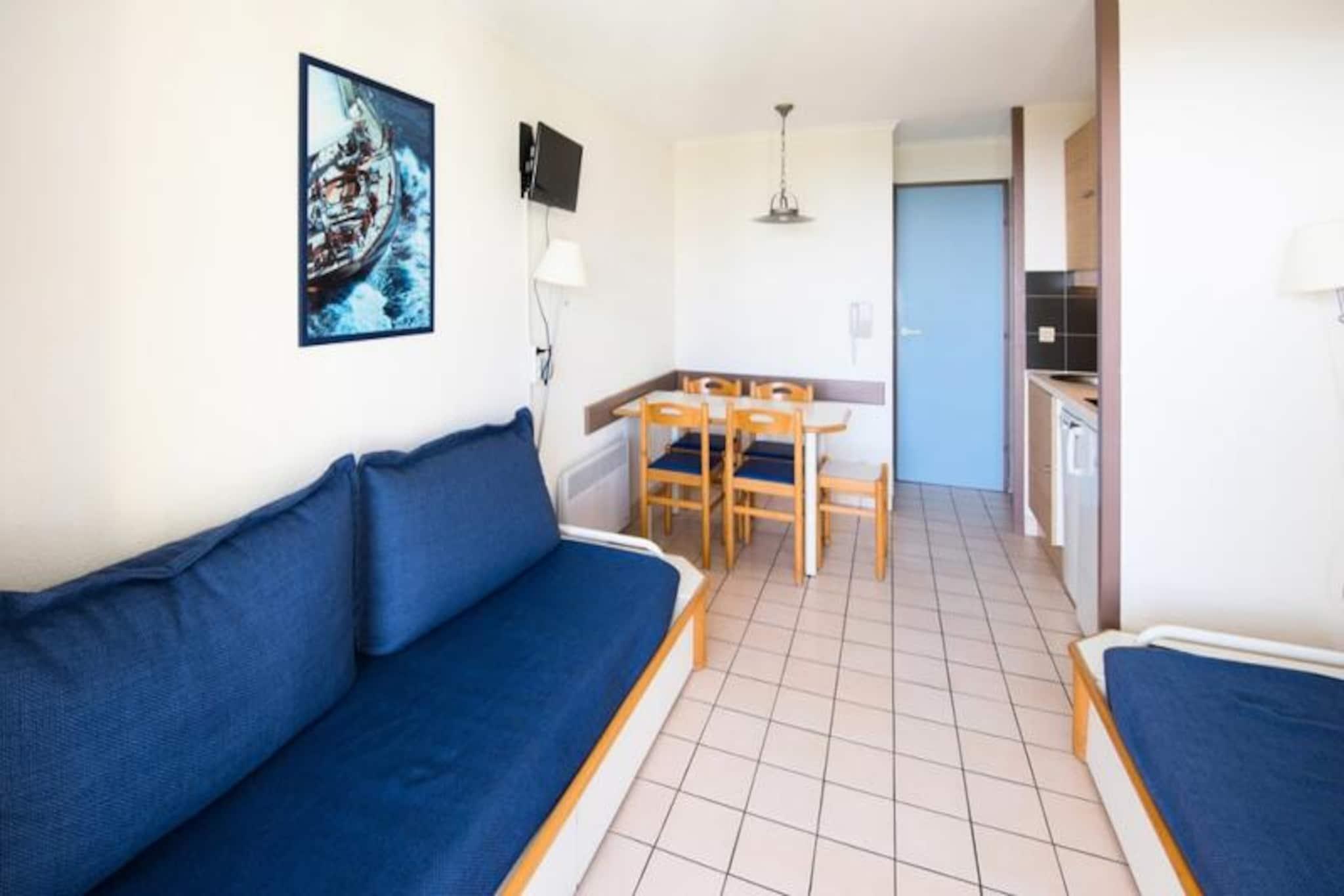 Denne hyggelige lejlighed i stueetagen tilbyder et behageligt ophold for op til 4 gæster, og byder på en stue med to sovesofaer (en med en udtræksseng) og et soveværelse med en dobbeltseng. Der er også badeværelse med badekar, separat toilet og møbleret terrasse. Kæledyr er tilladt i visse overnatningssteder mod et ekstra gebyr, og Wi-Fi er tilgængeligt mod et ekstra gebyr. Der tilbydes gratis parkering inden for boligen. Lejligheden ligger kun 9 km fra Les Sables-d'Olonne og kun 2,5 km fra Veillon-stranden, let tilgængelig til fods, på cykel eller via Talmondaise-bussen. Faciliteterne på stedet inkluderer et pizzeria, bageri og bar/isbar. Området byder også på to 18-hullers golfbaner, tennisbaner og minigolf sammen med flere andre fritidsaktiviteter. Det fuldt udstyrede køkken åbner til stuen, hvilket giver et praktisk sted til selvforplejning. Lejligheden tilbyder også adgang til tre swimmingpools, et vandområde med rutsjebaner og et soppebassin med vandspil. Yderligere tjenester som rengøring, sengelinned og håndklæder er tilgængelige mod et ekstra gebyr, hvilket sikrer et behageligt og behageligt ophold.