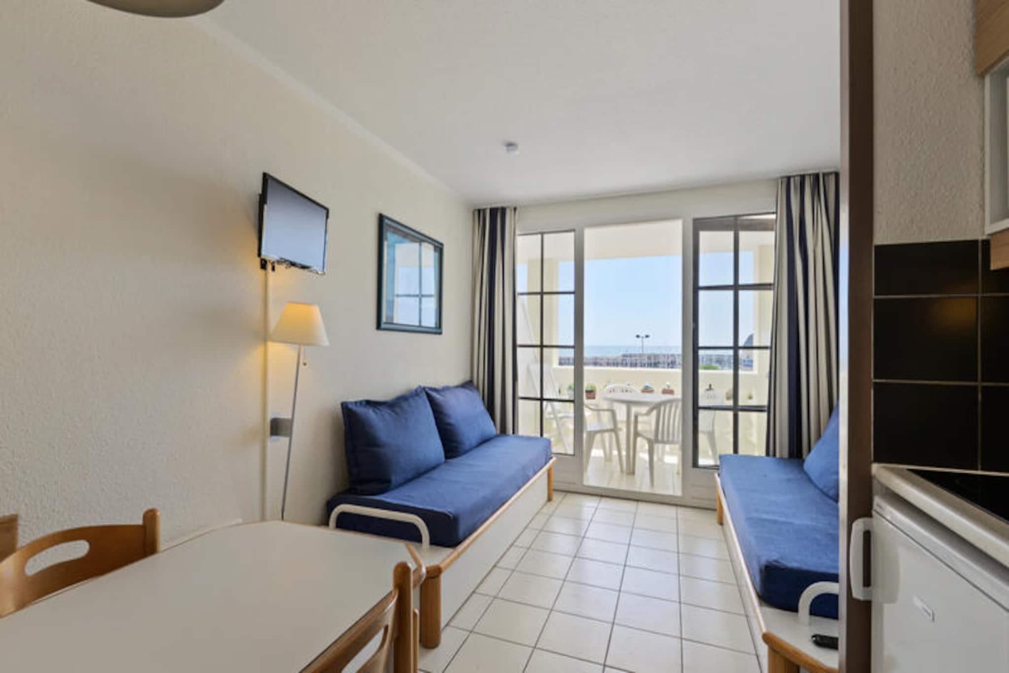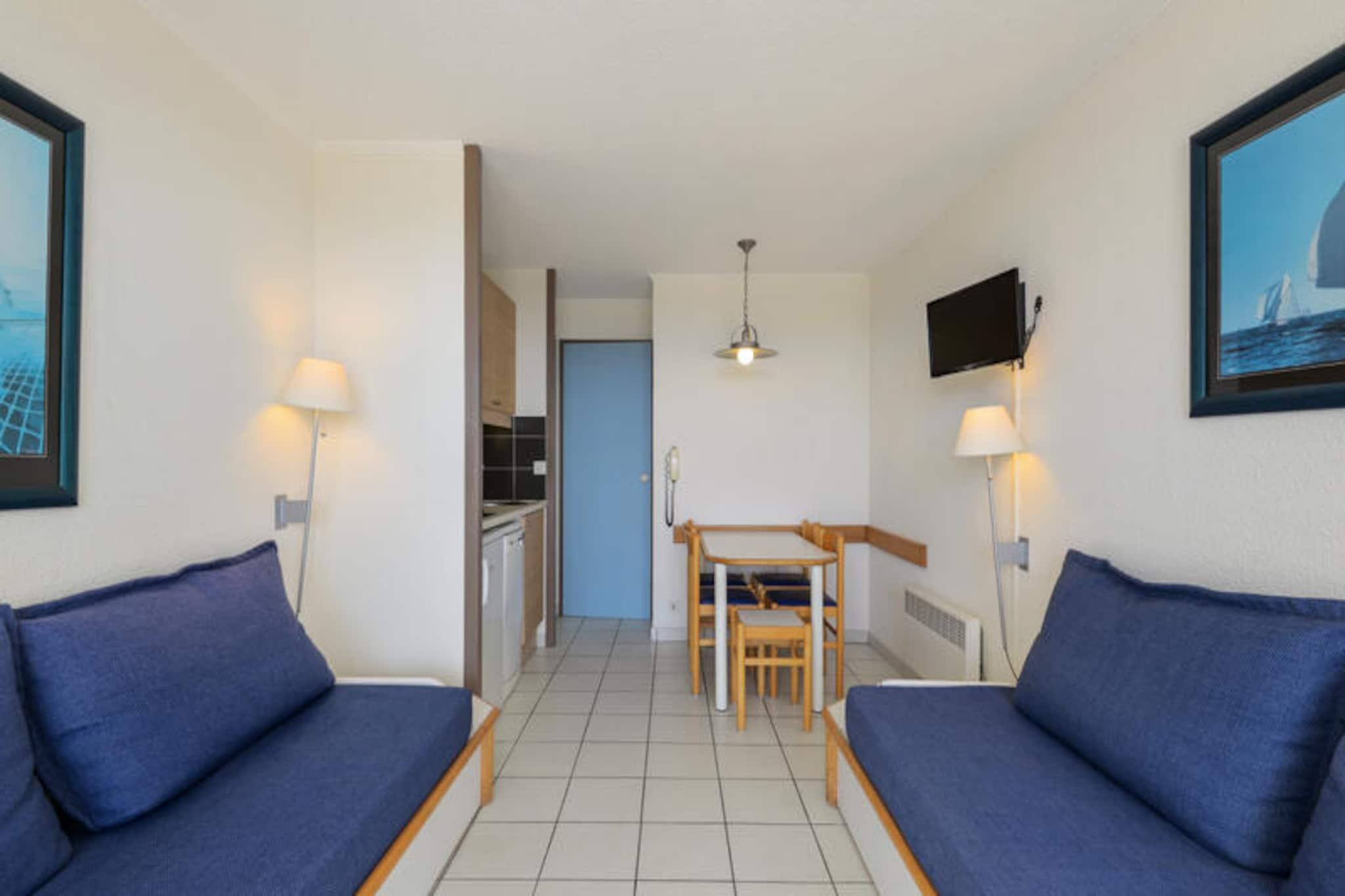 Dette charmerende feriehus ligger på en 90 hektar stor ejendom omgivet af en fyrreskov og tilbyder en afslappende flugt. Ejendommen omfatter et komfortabelt soveværelse med en dobbeltseng og en stue med to sovesofaer (en med en udtræksseng). Opholdsstuen har et spisebord med fire stole, et fladskærms-tv og en møbleret terrasse med direkte udsigt over havet og havet. Kæledyr er tilladt til visse boliger (ekstra gebyr), og babyudstyr er tilgængeligt efter anmodning. Ejendommen tilbyder også gratis udækket parkering i boligen. Beliggende kun 9 km fra Les Sables-d'Olonne, tilbyder denne beliggenhed masser af attraktioner i nærheden, herunder Veillon-stranden, som er tilgængelig med en shuttle eller en gåtur gennem fyrreskoven. Gæsterne kan nyde mange udendørs aktiviteter, herunder vandsport på stranden eller besøge nærliggende golfbaner, tennisbaner og minigolf. På stedet finder du butikker, et pizzeria, bageri og bar/isbar for bekvemmelighed og afslapning. Lejligheden har et fuldt udstyret køkkenområde åbent til stuen, perfekt til at tilberede måltider. Badeværelset har badekar og separat toilet. Der er tre swimmingpools på stedet samt et vandområde med en rutsjebane til familievenlig sjov. Yderligere faciliteter inkluderer Wi-Fi (mod tillæg), slutrengøring og leje af linned og håndklæder for et mere behageligt ophold.